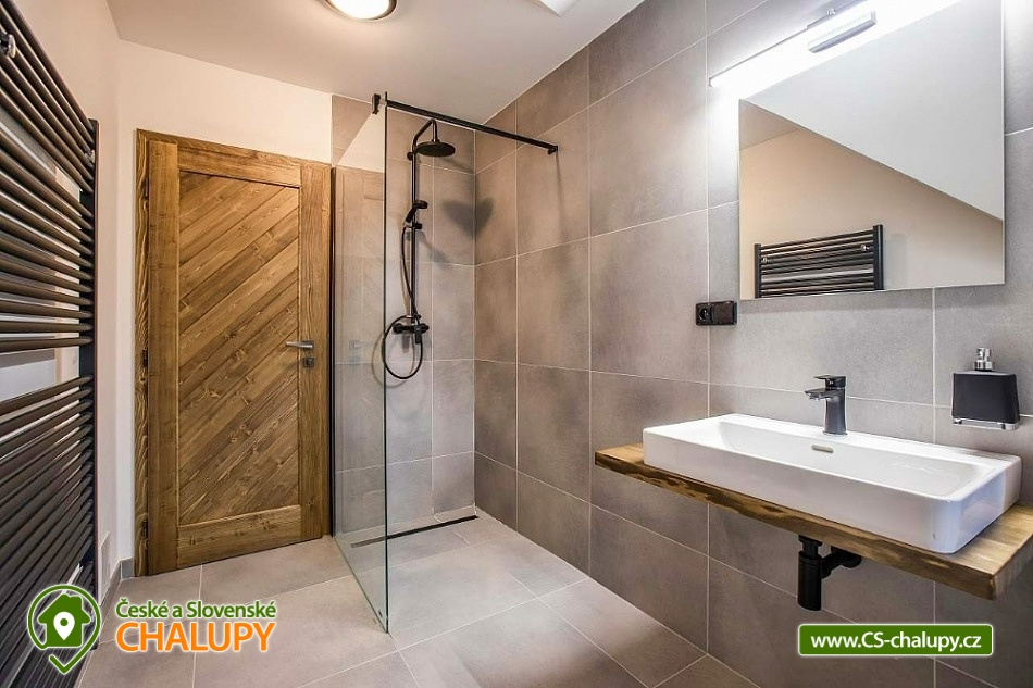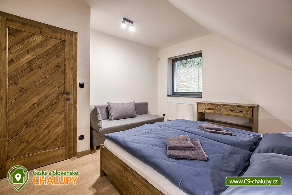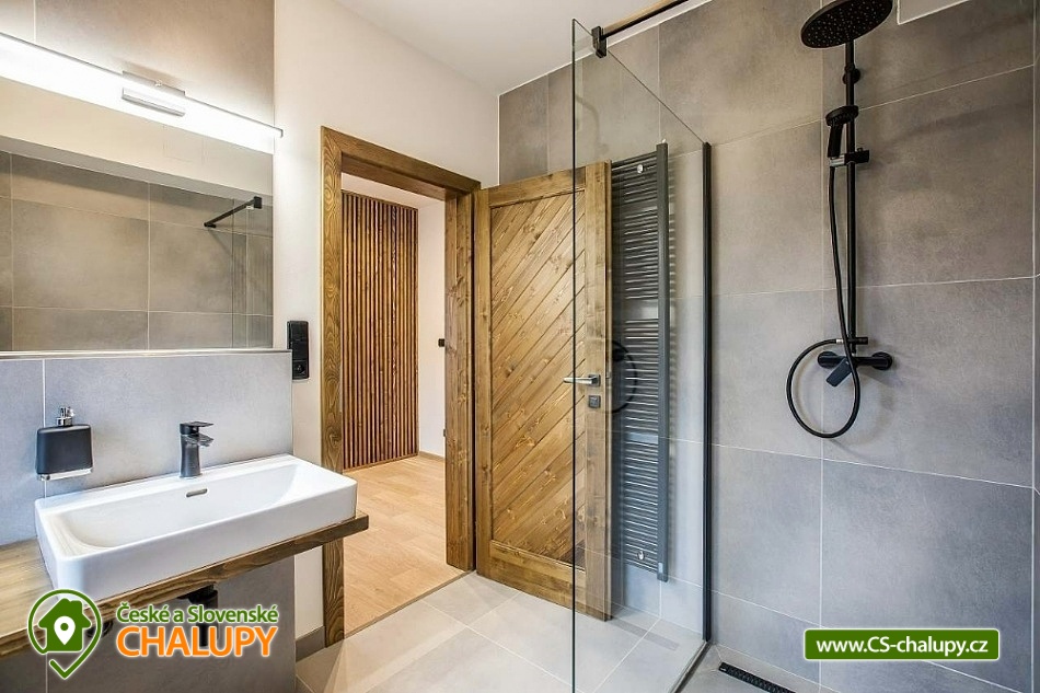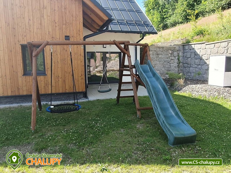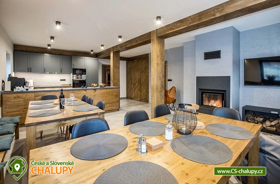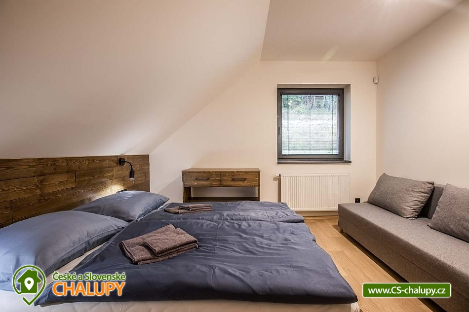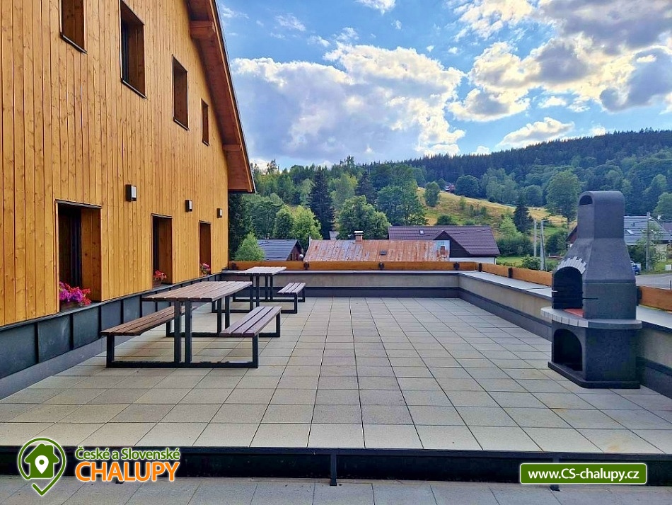 Horská chata se saunou se nachází v krásné krajině CHKO Jizerské hory u říčky Bílá Nisa nedaleko Janova nad Nisou a Bedřichova. V blízkém okolí naleznete cesty pro pěší turistiku, traily pro kola, kilometry běžkařských stop, tak i sjezdovky pro celou rodinu. Těšit se můžete na prostorný a vkusně vybavený interiér chaty s vyhřátými dubovými podlahami, na posezení u krbu, víno z místní vinotéky a relaxování v sauně. Chata poskytuje ubytování pro až 15 osob, celkem je k dispozici 6 dvoulůžkových pokojů s manželskou postelí a 3 přistýlky. Všechny postele je možné rozdělit na samostatné jednolůžka. Ubytování je tak ideální pro rodiny, skupinu přátel, „home office“ nebo také pro různá sportovní soustředění nebo menší firemní akce. Chata je plně přizpůsobena pro pobyty s dětmi, k dispozici jsou 2x dětská jídelní židlička, 2x dětská postýlka (bez povlečení), dětské příbory, dětské společenské hry, hračky, knížky a sáňky. POPIS: V přízemí se nachází hlavní vstup do objektu, kde je k dispozici velký botník a věšák na oblečení. Následuje vstup do haly odkud lze vstoupit do sauny se 2 sprchami a odpočinkovou místností a WC, nebo projít do kolárny, kde je možnost uskladnění kol/lyží s možností provádět jejich servis, zde lze také třídit odpad (papír/plast/sklo). V prvním patře je umístěný apartmán s dvoulůžkem a možností 1 přistýlky. Součástí apartmánu je koupelna se sprchovým koutem a samostatným WC. Na chodbě v patře je dále společná toaleta (WC + pisoár). V patře pro společné chvíle slouží velká společenská místnost s krbem, dvěma stoly a místem k sezení pro až 15 osob a 55“ TV. Součástí místnosti je plně vybavená kuchyň (indukční varná deska, elektrická trouba, mikrovlnná trouba, kávovar na zrnkovou kávu, 2x chladnička s mrazákem, myčka nádobí, toustovač, topinkovač a ponorný mixér). Dále je k dispozici menší společenská místnost s malou kuchyňkou s chladící vitrínou, myčkou a barovým pultem, 65“ TV a gaučem a s možností vstupu na dvě venkovní terasy. V druhém patře jsou k dispozici 3 apartmány. První apartmán se skládá ze dvou propojených dvoulůžkových pokojů. Součástí druhého apartmánu jsou 2 samostatné dvoulůžkové pokoje a možnost dalších dvou přistýlek. Ve třetím apartmánu se nachází jeden dvoulůžkový pokoj. Všechny apartmány jsou vybavené koupelnou se sprchovým koutem a WC. V celém objektu je k dispozici WIFI připojení na internet. Vytápění je řešeno tepelným čerpadlem a možností zatopit si v krbových kamnech. Venku lze trávit společné chvíle na prostorné terase s 2x venkovním posezením, grilem na dřevěné uhlí (nutno mít vlastní) nebo u ohniště. Dále po domluvě možnost za příplatek zapůjčení výčepního zařízení. Parkovat lze přímo u objektu, V okolí možnost turistiky, cykloturistiky, singltrek, koupání, houbaření, rybaření, běžkování a lyžování. V blízkosti je hřiště, jízdárna, tenisové kurty, lanový park, bobová dráha bowling a golfové hřiště. Mezi možnosti koupání patří např.: přehrada Mšeno, koupaliště Dolina, přehrada Bedřichov, koupaliště Lučany nad Nisou, Lesní koupaliště Liberec, přírodní koupaliště Josefův Důl, přehrada Harcov, plavecký bazén Liberec, aquapark Centrum Babylon - Liberec, atd. V zimním období blízká lyžařská střediska: Bedřichov - U Vodárny, Bedřichov, Severák, Bedřichov u Doliny, Lucifer - Josefův Důl, U PILY - Lučany nad Nisou, Bukovka - Josefův Důl, Selský dvůr - Albrechtice, Nová Ves nad Nisou a další. K výletům v okolí láká Liberec (ZOO, Botanická zahrada, Dinopark, IQlandia, a další), Muzeum skla a bižuterie Jablonec nad Nisou, lázně Libverda nebo rozhledny Královka, Černá studnice, Maják Járy Cimrmana či Slovanka. Těšíme se na Vás u nás.