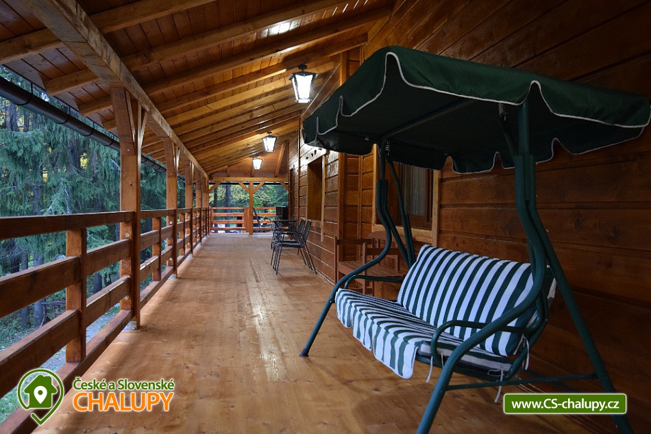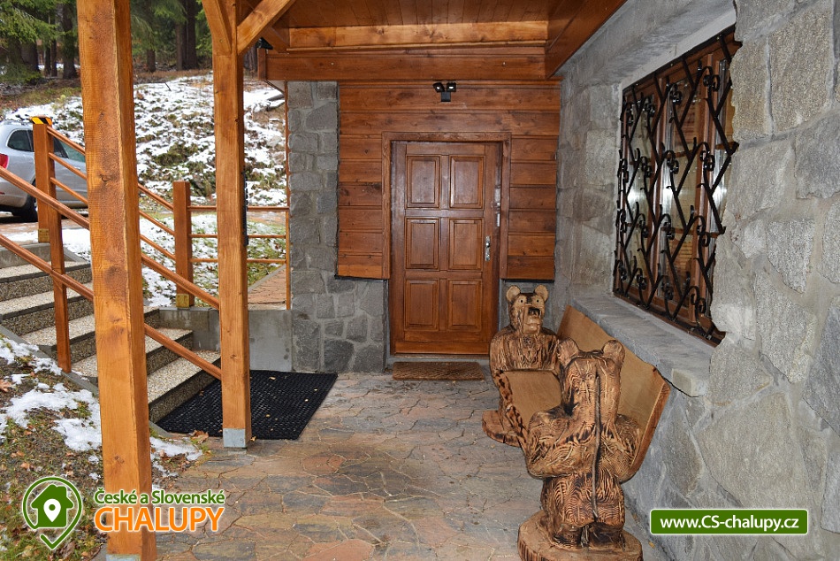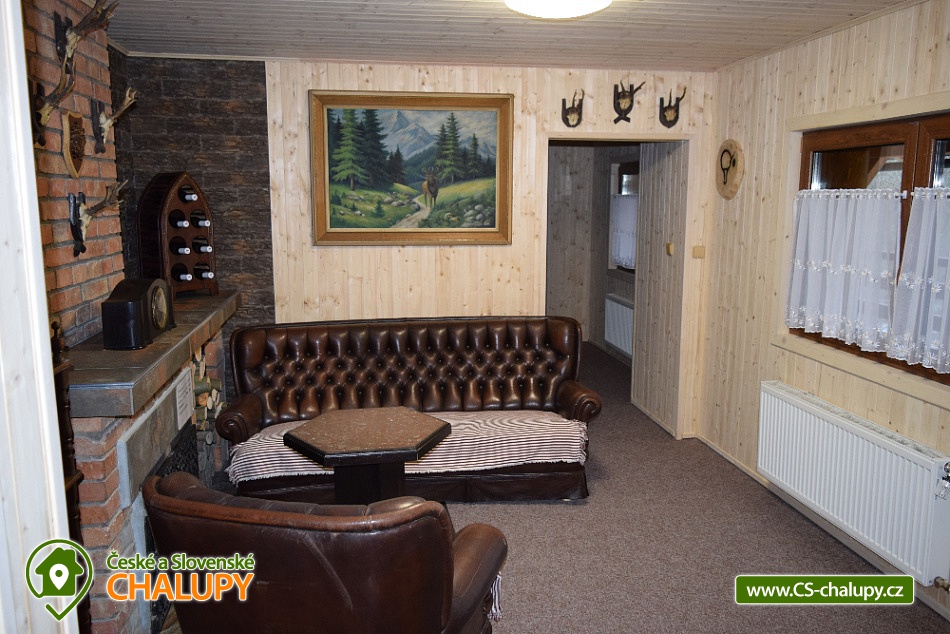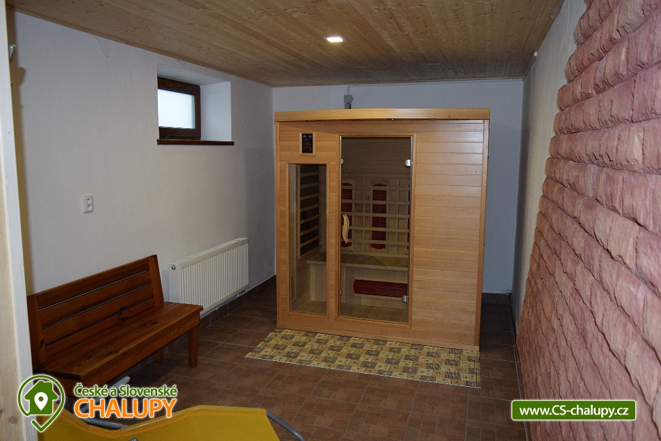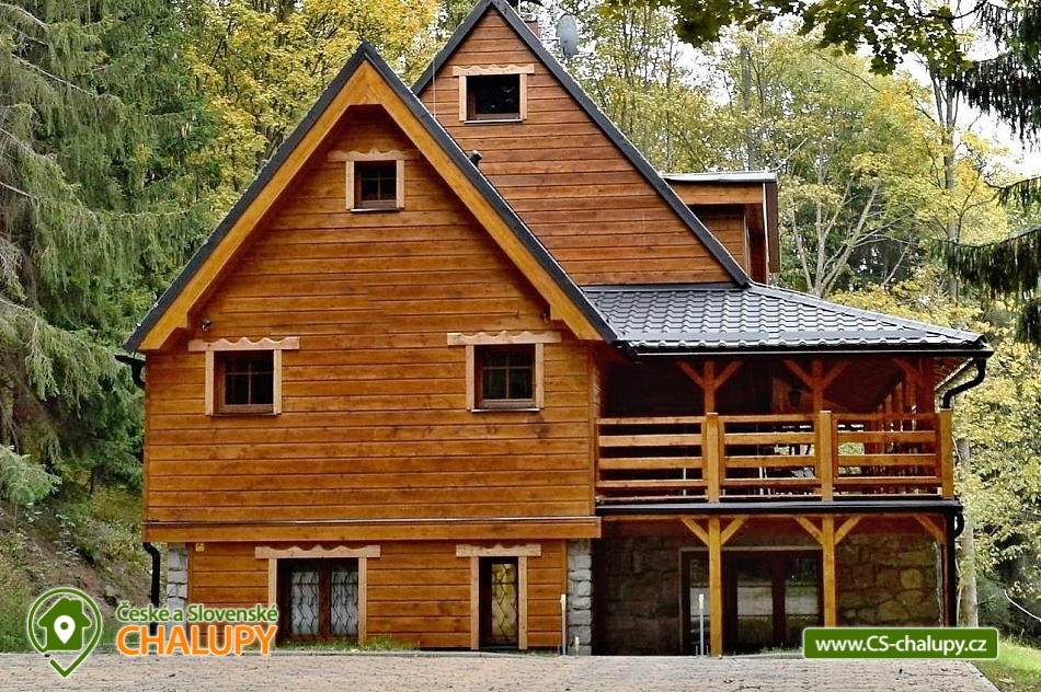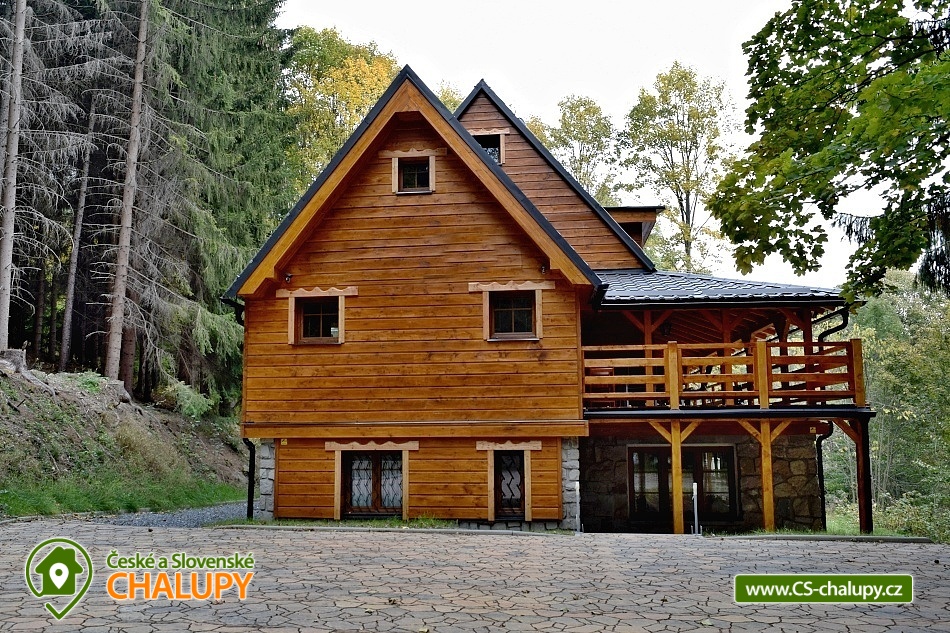 Jesenická chalupa se saunou a krytou terasou je umístěná v lese, 150 m pod hotelem Kamzík u obce Karlov pod Pradědem - Malá Morávka. Součástí objektu je 100 m2 velká venkovní terasa s výhledem na sjezdovky. Na kryté terase je k dispozici houpačka, gril s posezením a v chladných dnech slouží k zahřátí výhřevná lampa. Chalupa k pronajmutí poskytuje ubytování pro až 18 osob v 5 ložnicích (1x2, 1x3,2x4,1x5). V přízemí je společenská místnost s TV, prostorná jídelna a plně vybavená kuchyně se všemi možnými elektrospotřebiči - součástí je i myčka nádobí. Dále se v přízemí nachází relaxační místnost s infra saunou a sprchou pro příjemné ochlazení po saunování. Součástí přízemí je také sušárna lyžařské obuvi a oděvů, kolárna, lyžárna, technická místnost s pračkou a žehličkou. 1 patro: dětský koutek, prostorná herna se stolním tenisem a profi. stolním fotbálkem. Posezení u krbu. Venkovní terasa. Sociální zařízení: 3x koupelna (přízemí a patro) + 6x sprcha (přízemí a patro), 4x WC (přízemí a patro). Vytápění: Centrální ústřední, elektrický kotel, plynový kotel. Součástí každé ložnice je TV. Kuchyň komfortně vybavena - lednice, mrazák, myčka na nádobí, kombinovaný sporák, toustovač, kávovar. Malá Morávka – Karlov je nejnavštěvovanější lyžařská a rekreační obec v Jeseníkách. Všechny vleky a lanovky jsou dostupné pěšky, nebo zdarma skibusem. Možnost za poplatek navštívit wellness v sousedním Hotelu Kamzík, 5 km vzdálené lázně Karlova Studánka, 4 km vzdálený Praděd, 6 km Bílá Opava. V zimním období zde najdou zalíbení lyžaři i běžkaři, v létě turisté a kolaři. Malá Morávka - Karlov nabízí lyžování v areálech Ski Karlov, Kopřivná a Ovčárna. Celkem 5 sedačkových lanovek a sjezdové tratě všech obtížností. Do lyžařského střediska Ovčárna - Praděd lze dojet skibusem. Pro běžecké nadšence je připraveno kolem 80 km tras.