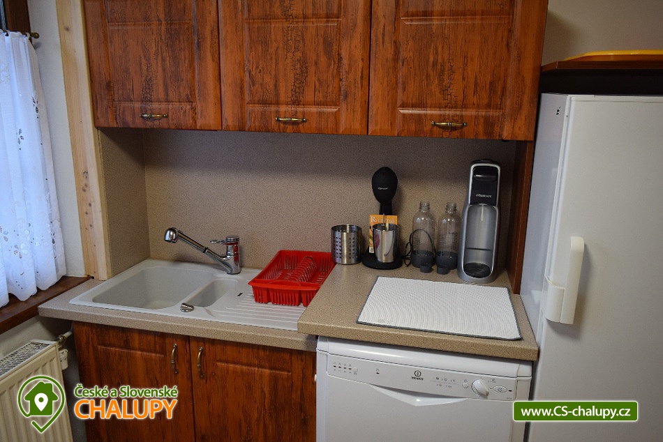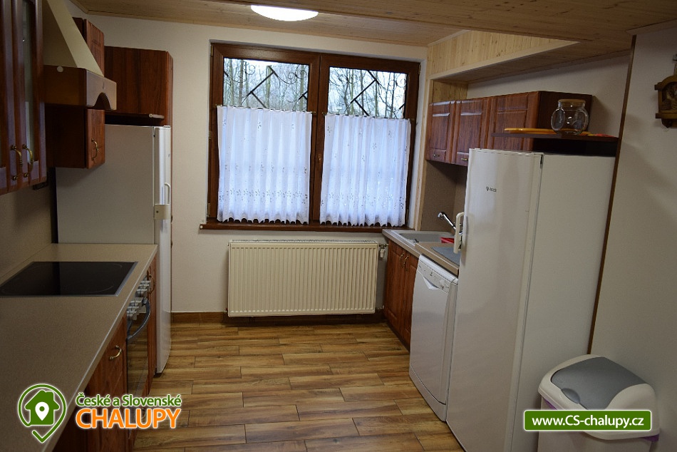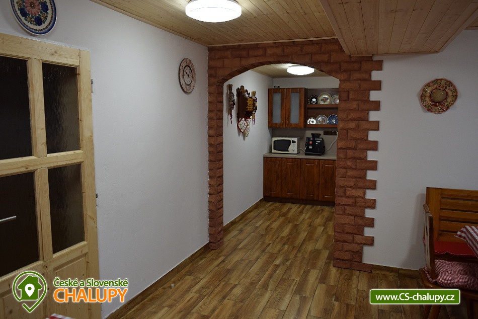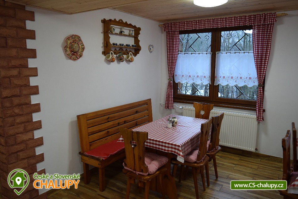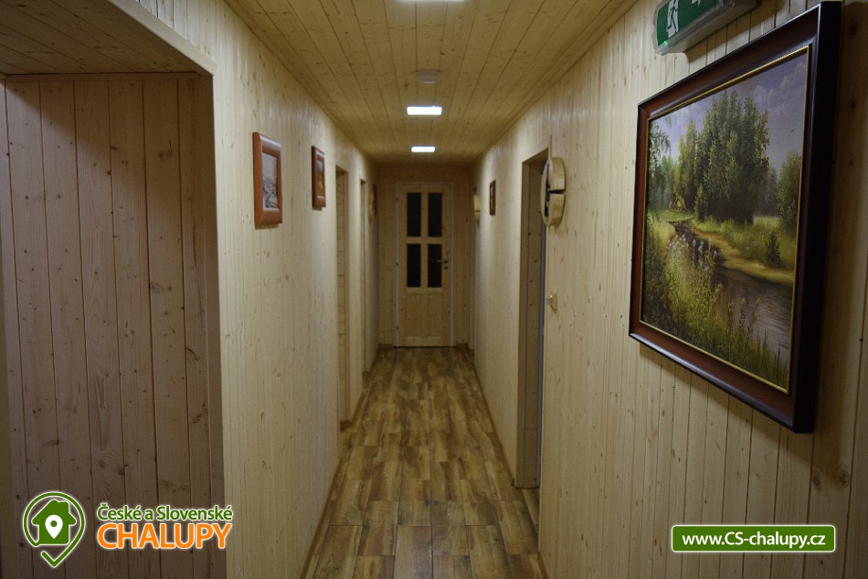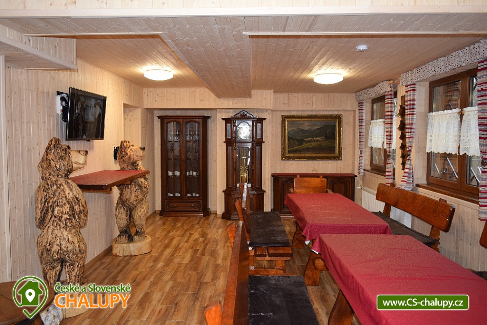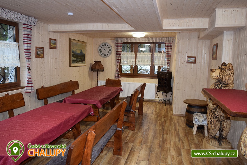 Jesenická chalupa se saunou a krytou terasou je umístěná v lese, 150 m pod hotelem Kamzík u obce Karlov pod Pradědem - Malá Morávka. Součástí objektu je 100 m2 velká venkovní terasa s výhledem na sjezdovky. Na kryté terase je k dispozici houpačka, gril s posezením a v chladných dnech slouží k zahřátí výhřevná lampa. Chalupa k pronajmutí poskytuje ubytování pro až 18 osob v 5 ložnicích (1x2, 1x3,2x4,1x5). V přízemí je společenská místnost s TV, prostorná jídelna a plně vybavená kuchyně se všemi možnými elektrospotřebiči - součástí je i myčka nádobí. Dále se v přízemí nachází relaxační místnost s infra saunou a sprchou pro příjemné ochlazení po saunování. Součástí přízemí je také sušárna lyžařské obuvi a oděvů, kolárna, lyžárna, technická místnost s pračkou a žehličkou. 1 patro: dětský koutek, prostorná herna se stolním tenisem a profi. stolním fotbálkem. Posezení u krbu. Venkovní terasa. Sociální zařízení: 3x koupelna (přízemí a patro) + 6x sprcha (přízemí a patro), 4x WC (přízemí a patro). Vytápění: Centrální ústřední, elektrický kotel, plynový kotel. Součástí každé ložnice je TV. Kuchyň komfortně vybavena - lednice, mrazák, myčka na nádobí, kombinovaný sporák, toustovač, kávovar. Malá Morávka – Karlov je nejnavštěvovanější lyžařská a rekreační obec v Jeseníkách. Všechny vleky a lanovky jsou dostupné pěšky, nebo zdarma skibusem. Možnost za poplatek navštívit wellness v sousedním Hotelu Kamzík, 5 km vzdálené lázně Karlova Studánka, 4 km vzdálený Praděd, 6 km Bílá Opava. V zimním období zde najdou zalíbení lyžaři i běžkaři, v létě turisté a kolaři. Malá Morávka - Karlov nabízí lyžování v areálech Ski Karlov, Kopřivná a Ovčárna. Celkem 5 sedačkových lanovek a sjezdové tratě všech obtížností. Do lyžařského střediska Ovčárna - Praděd lze dojet skibusem. Pro běžecké nadšence je připraveno kolem 80 km tras.