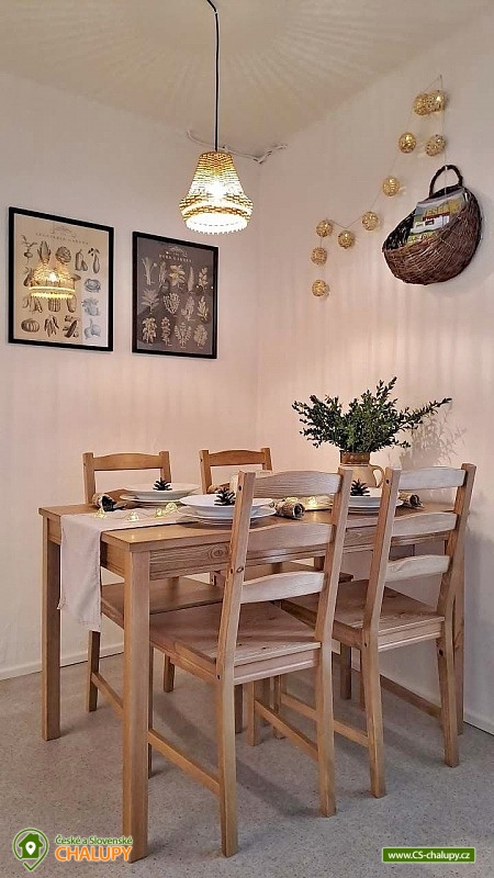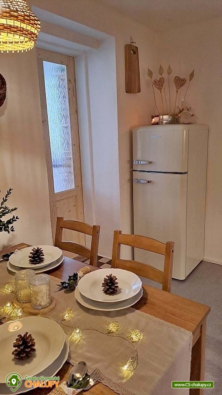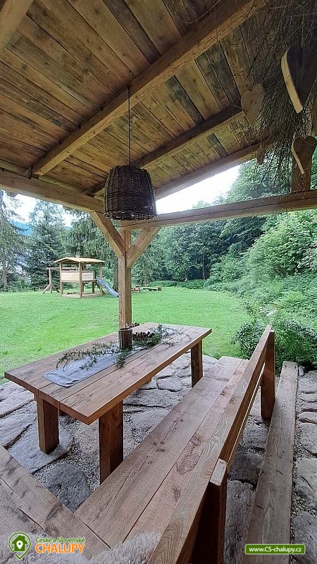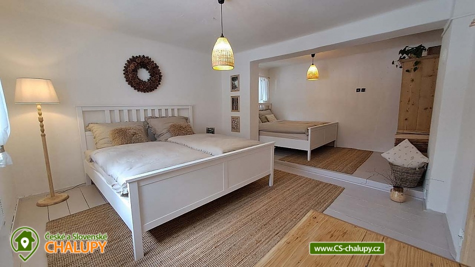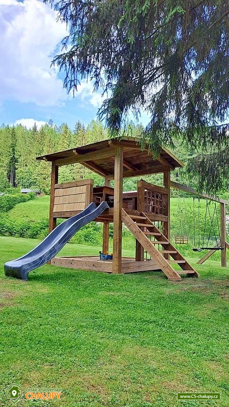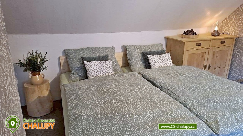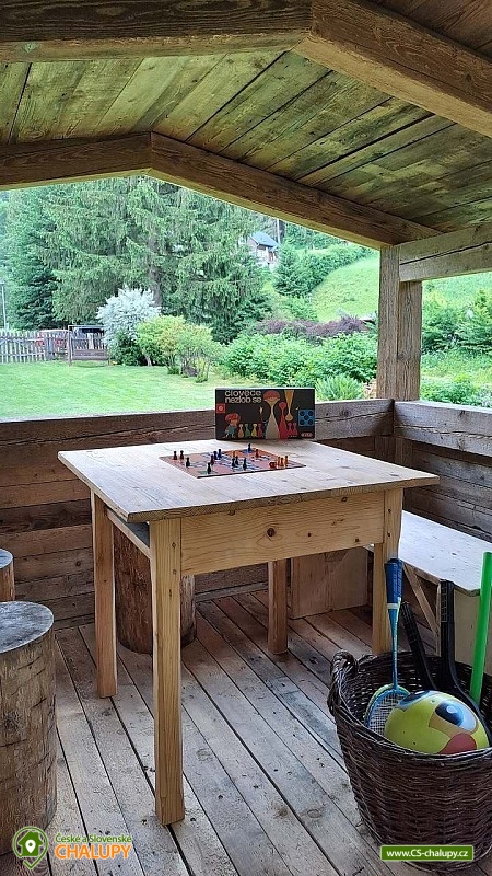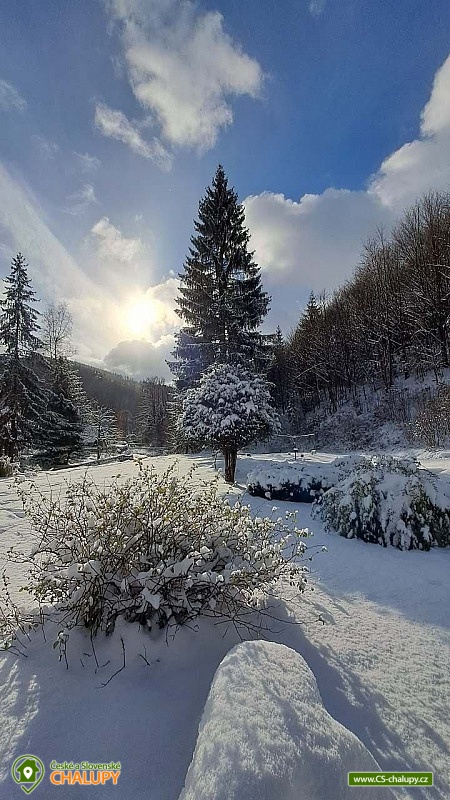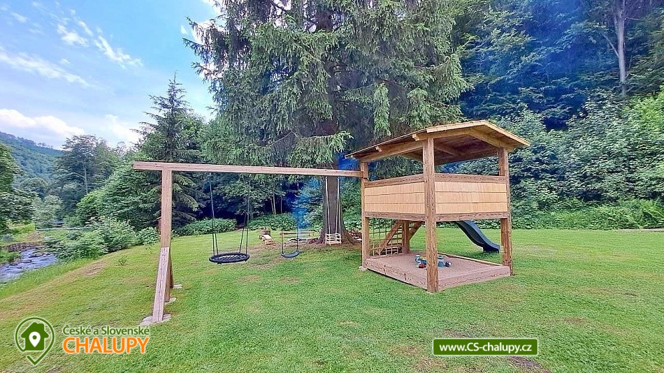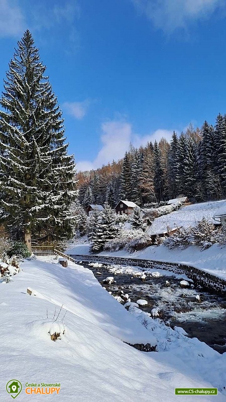 Jesenická chalupa s vířivkou a saunou se nachází se nachází v malebném údolí u lesa a u potoka pod přehradou Dlouhé Stráně. Chalupa nabízí ubytování pro až 12 osob ve 3 ložnicích. V přízemí je k dispozici čtyřlůžková ložnice s 2x manželskou postelí a v podkroví jsou umístěné dvě čtyřlůžkové ložnice s 1x manželskou postelí a 2x jednolůžkem. Součástí jedné z podkrovních ložnic je dětská postýlka a balkon. V podkroví se dále nachází dětská herna s možností přistýlky (110 cm) a balkonem. Po domluvě lze do herny přesunout dvě postele z jiných ložnic. Všechny ložnice jsou vybavené dřevěnými postelemi, novými ortopedickými matracemi, luxusními přikrývkami a stylovým nábytkem. V přízemí lze společné chvíle trávit v obývací pokoj s krbem (pro děti zabezpečen ohrádkou), sedací soupravou a Smart TV s O2 TV. Dále je k dispozici plně vybavená, stylová kuchyň (retro lednice s mrazákem, myčka nádobí, indukční varná deska, horkovzdušná trouba, mikrovlnná trouba, toustovač a veškeré potřebné nádobí) s jídelním koutem. Na kuchyň navazuje útulná veranda s posezením a výhledy do přírody. Pro chvíle zábavy slouží stolní fotbálek a kulečník, oblíbené deskové hry, karty, pexesa a zajímavé knihy. Pro inspiraci k výletům jsou k dispozici turistické mapy a mnoho informačního materiálu s aktivitami všeho druhu v okolí a 3D mapa Jeseníků. Součástí podkrovní herny pro děti je stoleček s židličkami, proutěné koše s čistými hračkami, pohovka, knihovnička s knihami o přírodě a horách, pohádky a zábavné deskové hry. Sociální zařízení zahrnuje jednu koupelnu se sprchovým koutem, velkým umyvadlem, WC, topným žebříkem, dostatkem odkládacího prostoru a dětskou stoličkou a jednu koupelnu se sprchovým koutem, umyvadlem a topným žebříkem. K dispozici je také samostatné WC. Koupelny i WC jsou umístěné v přízemí. Vytápění je řešeno krbovými kamny na dřevo a elektrickými přímotopy. V celém objektu je k dispozici WIFI připojení na internet. Venku na prostorné zahradě je připravené zastřešené posezení s vířivkou pro 6 osob. K dispozici je gril a ohniště. Vedle pozemku teče čistá horská řeka Hučivá Desná, která je splněným snem všech otužilců. Pro zpřístupnění řeky k celoročnímu koupání je součástí pozemku nová relaxační pláž. Děti ocení velký osvětlený dětský posed se zastřešeným vybaveným pískovištěm, skluzavkou, houpačkami, lanovou stěnou, velkým počítadlem, dětským posezením a dřevěnou kuchyňkou. Dále je k zapůjčení vybavení pro badminton a líný tenis, míče, sáně a boby. Součástí zahrady je domeček pro uschování sportovního vybavení s velkým vysoušečem obuvi, lesní tůňka a dřevník. Během odpočinku na zahradě si lze pochutnat na si pochutnat na borůvkách, malinách, ostružinách, jostě, rybízu, angreštu nebo jahodách. Bobulová zahrádka je doplněna velkým hmyzím domečkem. Umístění chalupy a pozemku je stranou veškerých rušných silnic a vlakových kolejí. Parkovat lze přímo u objektu. V okolí chalupy možnost turistiky, cykloturistiky, koupání, houbaření, rybaření, lyžování a běžkování. V blízkosti jsou tenisové kurty, jízdárna, bowling a discgolf. Mezi možnosti koupání patří např.: Velké Losiny - termály, bazén Domašov - Bělá pod Pradědem, termální koupaliště Velké Losiny, koupaliště Rapotín, Bazén Karlova Studánka, koupaliště Jeseník, Hynčice pod Sušinou - rybník Úžas, bazén Jeseník - Priessnitz, atd. K dispozici jsou blízká lyžařská střediska: Kouty nad Desnou, Kareš - Kouty nad Desnou, Přemyslov, Ski Centrum OAZA – Loučna nad Desnou, Kocián - Loučná nad Desnou, Červenohorské sedlo a další. K výletům v okolí láká přečerpávací vodní elektrárna Dlouhé Stráně, nejvyšší hora Jeseníků Praděd, naučná stezka Rysí skála, wellness Kolštejn Branná, sportovní areál Kociánov v Loučné nad Desnou s dětským hřištěm, rybolovem, minigolfem, skateparkem a paintballem, dále zámecký park Loučná nad Desnou, ruční papírna Velké Losiny či Zlatokopecký skanzen ve Zlatých Horách. Těšíme se na Vás u nás.