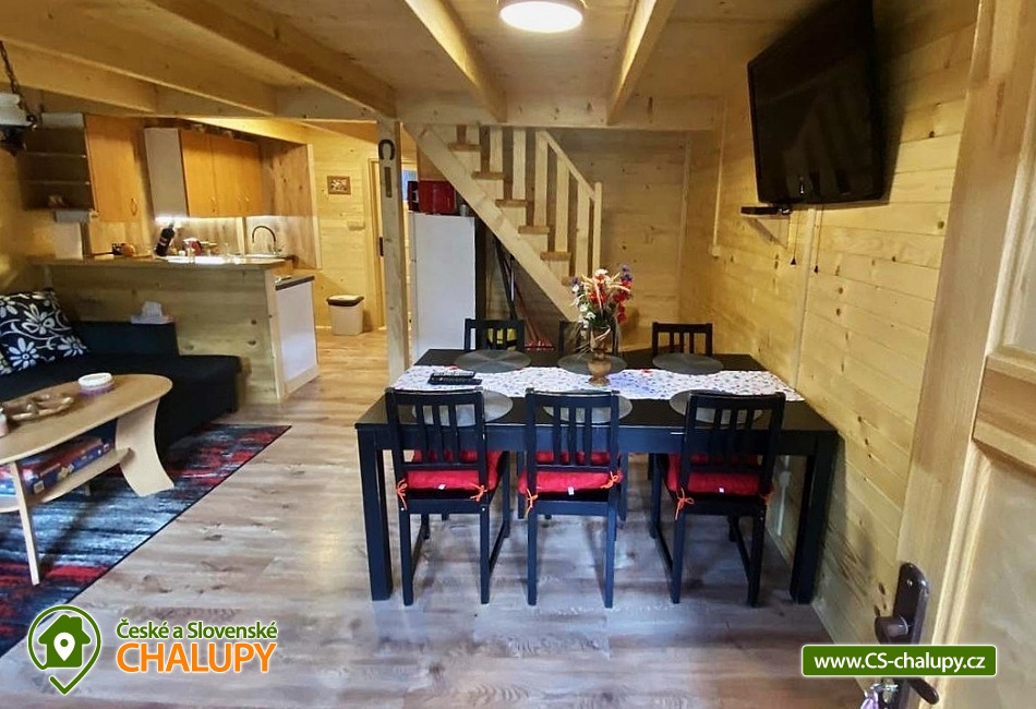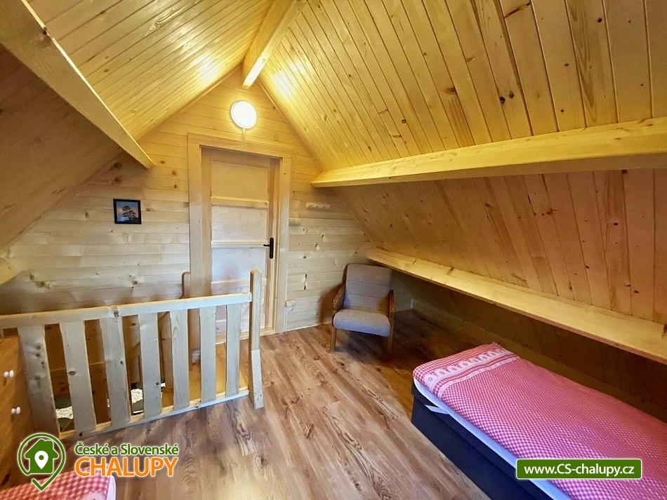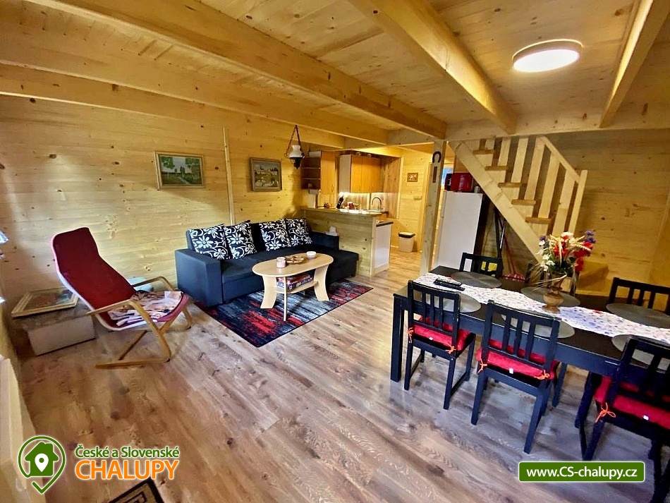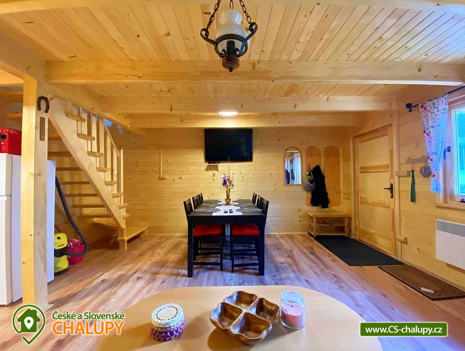 Jesenická chata s bazénem se nachází v malebném podhůří Hrubého Jeseníku, nedaleko termálních lázní a jezera Dlouhé stráně. Během pobytu se můžete těšit na terasu s posezením či na relax ve venkovním bazénu. Chata poskytuje ubytování pro až 9 osob ve 3 ložnicích. V podkroví se nachází 3-lůžková ložnice (3x samostatné jednolůžko) a 2-lůžková ložnice (2x samostatné jednolůžko). K dispozici je dětská postýlka. V přízemí najdete 2-lůžkovou ložnici (1x manželská postel) a 2 přistýlky (rozkládací pohovka) v obývacím pokoji. Dále je zde konferenční stolek, TV, krbová kamna a jídelní kout. Na obývací pokoj volně navazuje plně vybavená kuchyň (myčka, trouba, lednice s mrazákem, varná deska, rychlovarná konvice, mikrovlnná trouba, kávovar a nádobí). Sociální zařízení zahrnuje koupelnu se sprchovým koutem, umyvadlem a toaletou. Vytápění je řešeno elektrickými přímotopy (možnost přitápění krbovými kamny). V celém objektu je zdarma připojení na WiFi internet. Chatu obklopuje oplocená zahrada se zatravněnou plochou. Volné chvíle můžete trávit na terase s posezením nebo ve venkovním bazénu. Relaxovat můžete na zahradní houpačce. K dispozici je také dřevěné posezení s ohništěm a grilem. Ti nejmenší ocení dětské hřiště s pískovištěm, skluzavkou, houpačkami a trampolínou. Parkovat lze přímo u objektu. V okolí možnost turistiky, cykloturistiky, koupání, houbaření, rybaření, lyžování a běžkování. Mezi možnosti koupání patří např.: termální lázně Velké Losiny, koupaliště Rapotín, termální koupaliště Velké Losiny, koupaliště Šumperk - Bratrušák, přehrada Krásné, bazén Šumperk - Aquacentrum, koupaliště Ruda nad Moravou, koupaliště Bludov - Vlčí Důl nebo bazén Karlova Studánka. Rybaření možné v rybníce Kocián v Loučné nad Desnou. K dispozici jsou blízká lyžařská střediska např.: Kouty nad Desnou, Ski Centrum OAZA - Loučná nad Desnou, Kocián - Loučná nad Desnou, Sobotín, Vernířovice - Brněnka, Kareš - Kouty nad Desnou, Přemyslov či Klepáčov. K výletům v okolí láká: ruční papírna Velké Losiny, zámek Velké Losiny, Velkolosinské pralinky, lázně Velké Losiny, rozhledna Bukovka, zámek a zámecký park Loučná nad Desnou, vodní elektrárna Dlouhé stráně, zámecký resort Sobotín, Praděd, Šumperk (Muzeum čarodějnických procesů a Muzeum silnic) atd. Těšíme se na Vás u nás.