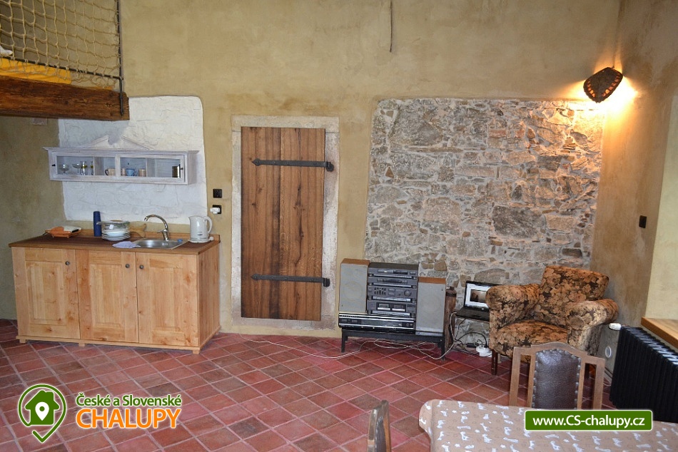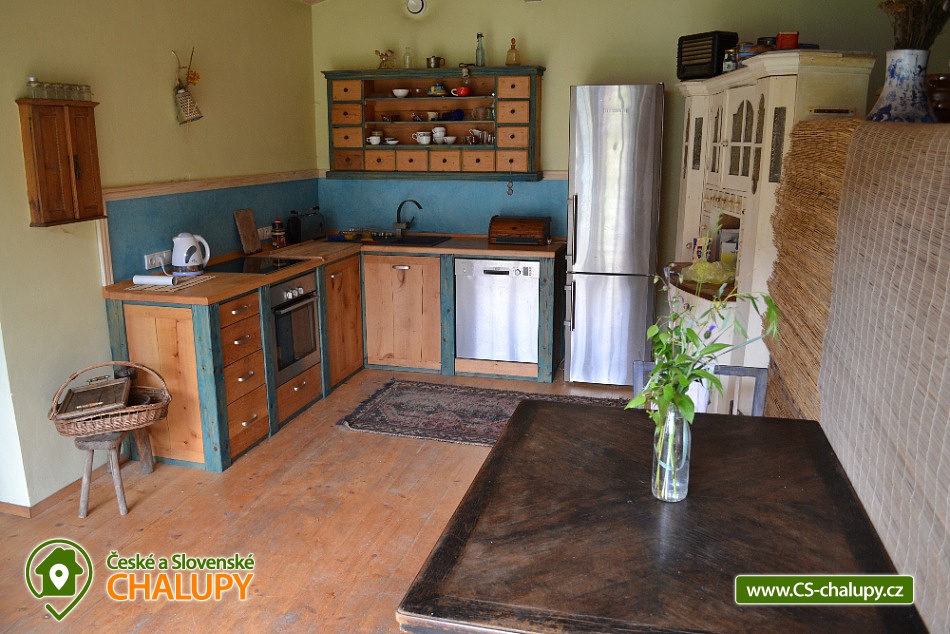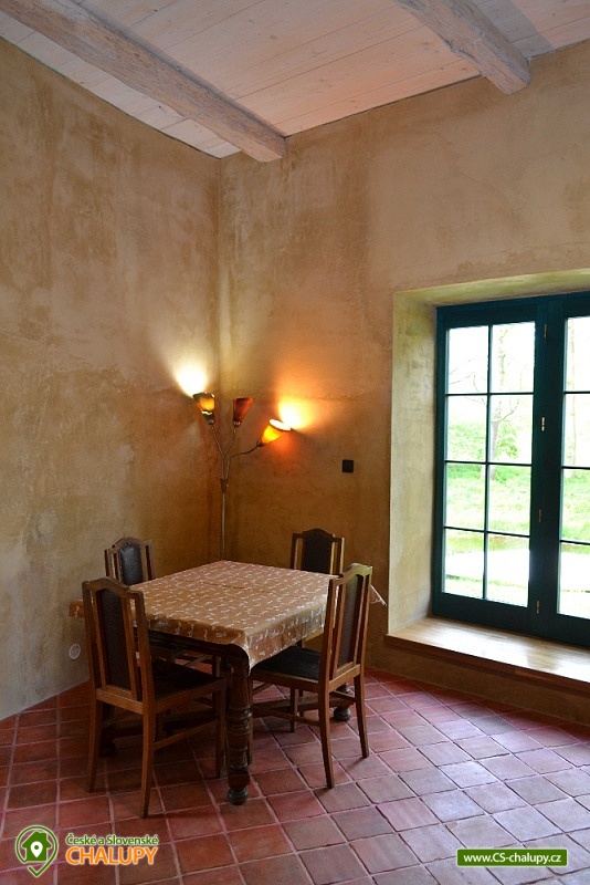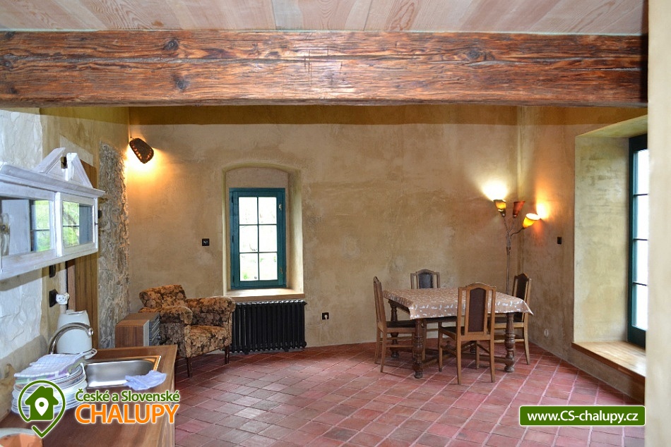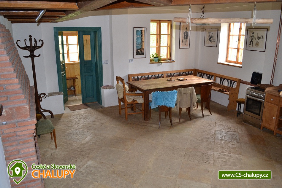 Jihočeská chalupa s uzavřeným dvorem na Slavonicku - Česká Kanada. Přijeďte si užít rodinnou dovolenou na zemské usedlosti v údolí Moravské Dyje v Jižních Čechách. Uzavřený dvůr s letní kuchyní je bezpečný pro děti a příjemný pro večerní posezení. Chalupa zahrnuje 4 části, které je možno pronajmout samostatně, popř. celý objekt lze pronajmout i jako celek. 1. část = Velký apartmán - Velký apartmán s galerií, prostornou kuchyní s velkým stolem a krbem. Samostatný vchod s verandou z venku i do dvora. Kapacita 9 lůžek. Pokoje v podkroví, každý pokoj s vlastní koupelnou. Společenská místnost s krbem, galerií, vřetenové schodiště s marockým štukem, toaletou a kuchyní s ledničkou, sporákem. První pokoj 5 lůžek (1 dvoulůžko, 3 jednolůžka), koupelna s toaletou, sprchový kout. Druhý pokoj 3 lůžka (1 dvoulůžko, 2 jednolůžka), koupelna s toaletou, sprchový kout, pračka. 2. část = Malý apartmán - Apartmán s kachlovou pecí. Kapacita 7 lůžek. Dva pokoje oddělené chodbou a koupelna s toaletou, pračkou a sprchový kout. První pokoj 4 lůžka (2 jednolůžka, 1 dvoulůžko), kachlová kamna, kuchyňka. Druhý pokoj 3 lůžka (palanda pro dva, 1 jednolůžko), kuchyňka. Samostatný vchod z venku i do dvora. 3. část = Ubytování ve dvoře. Tři pokoje se společenskou místností s krbem a klavírem (křídlem). Kapacita 9 lůžek. Průchozí pokoj 4 lůžka (2 jednolůžka,1 patrová postel). Navazující pokoj 3 lůžka (1 jednolůžko,1 patrová postel). Samostatný pokoj 2 lůžka (2 jednolůžka) s pecí a kachlovými kamny. Koupelna společná pro všechny pokoje s toaletou a vanou. Společenská místnost s kuchyní (lednička, sporák a jiné vybavení), krb s klavírem-křídlo. Společná chodba. 4. část = Apartmán U řeky Moravské Dyje. Apartmán má dvě místnosti. V menší místnosti jsou dvě lůžka a dá se propojit s apartmánem Ubytováním ve dvoře. Ve větší místnosti blíže k řece s francouzkým oknem s výhledem na Moravskou Dyji je palanda na spaní pro 2 osoby, kuchyňka, koupelna se sprchou a toaletou. Vchod z letní kuchyně nebo od řeky Moravský Dyje. Ve dvoře letní kuchyně s ohništěm, mega postelí, koutek pro děti, flipper, stolní fotbálek, houpací síť, koutek s bylinkami k používání. Zahrada s řekou Moravskou Dyjí a kamenným stolem, lavicí a dvěma ohništi, indiánský stan s ohništěm a posezením, pískoviště, houpačky, trampolína (na vlastní nebezpečí). 150m od chalupy je Dolní rybník s kamenným i dřevěným stolem, lavicí a udírnou. 220m od chalupy je Horní rybník v lese. Tyto soukromé rybníky jsou plné ryb, využití na koupání i rybolov. K chalupě patří zahrada s Moravskou Dyjí, se stylovým kamenným posezením, ohništěm, dětský koutek, pískoviště a houpačka. Parkování je přímo u chalupy. Ubytování u řeky Moravské Dyje v Jižních Čechách. Pomezí Jižní Čechy, Jížní Morava, Česká Kanada, Českomoravská vrchovina, Dolní Rakousko, Podyjí. V blízkosti Modletic se nachází renesanční město Slavonice a renesanční perla město mezi městy, město Telč.