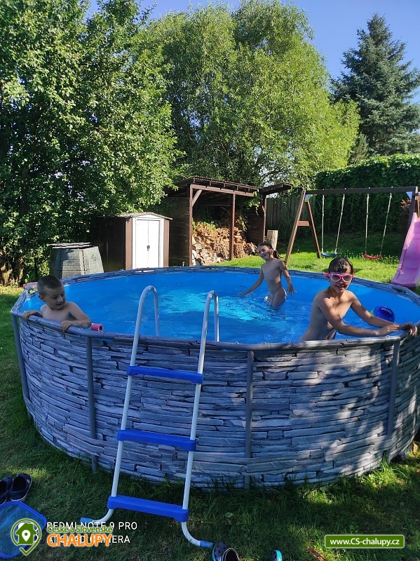 Jihočeská chalupa s bazénem je umístěna v malé jihočeské obci Val, části zvané Hamr, v okrese Tábor u Veselé nad Lužnicí. Objekt má 2 podlaží. V přízemí je plně vybavená kuchyně (el. sporák se sklokeramickou deskou a pečící troubou, myčka, lednička, mikrovlnná trouba, kontaktní gril, toustovač, varná konvice), jídelní stůl a krbová kamna. Dále je zde obývací pokoj se sedací soupravou, velkou TV a 2 jednolůžky. V podkroví chalupy najdete 2 oddělené ložnice. První z nich je 3-lůžková ložnice (oddělitelné dvoulůžko a jednolůžko), která je přístupná vnitřním schodištěm se zábradlím. Druhá 4-lůžková ložnice s televizí ( 2x jednolůžko, 2x spojená jednolůžka ve tvaru L ), která je přístupná buď vnitřním schodištěm, anebo venkovním schodištěm. K dispozici také dětská postýlka. Sociální zařízení sestává z 1 koupelny se sprchovými koutem a 1 WC, v objektu je k dispozici pračka. Vytápění zajišťují krbová kamna na dřevo, popř. el. přímotopy. U chalupy je zastřešená pergola s osvětlením, zahradní nábytek, ohniště s posezením, nadzemní kruhový bazén (průměr 3,5 m, hloubka 0,9 m), stolní tenis včetně pálek. Pro děti je připravena velká trampolína, 2 houpačky, pískoviště, skluzavka. Možno zapůjčit míče na fotbal, basketbal, volejbal, rakety na badminton. Parkovat lze přímo u objektu. Díky tomu, že se chalupa nachází mimo hlavní komunikaci, je ideální pro absolutní relax a odpočinek. Plocha pro dětské aktivity je v zadní části objektu, skryta před okolím, s dostatkem slunce i stínu. Nádherný je výhled do luk a lesů před chalupou, kde můžete na nové lavičce každodenně posedávat, usrkávat šálek kávy a přitom pozorovat srnky a zajíce. Prostorná pergola s posezením min. pro 8 lidí perfektně chrání před přímým sluncem. Pro opékání buřtů či jiných laskomin je připraveno velké ohniště s novými dřevěnými lavicemi. Hned u objektu můžete nasednout na jízdní kolo, nasadit kolečkové brusle nebo si jít jen tak zaběhat po okolí.