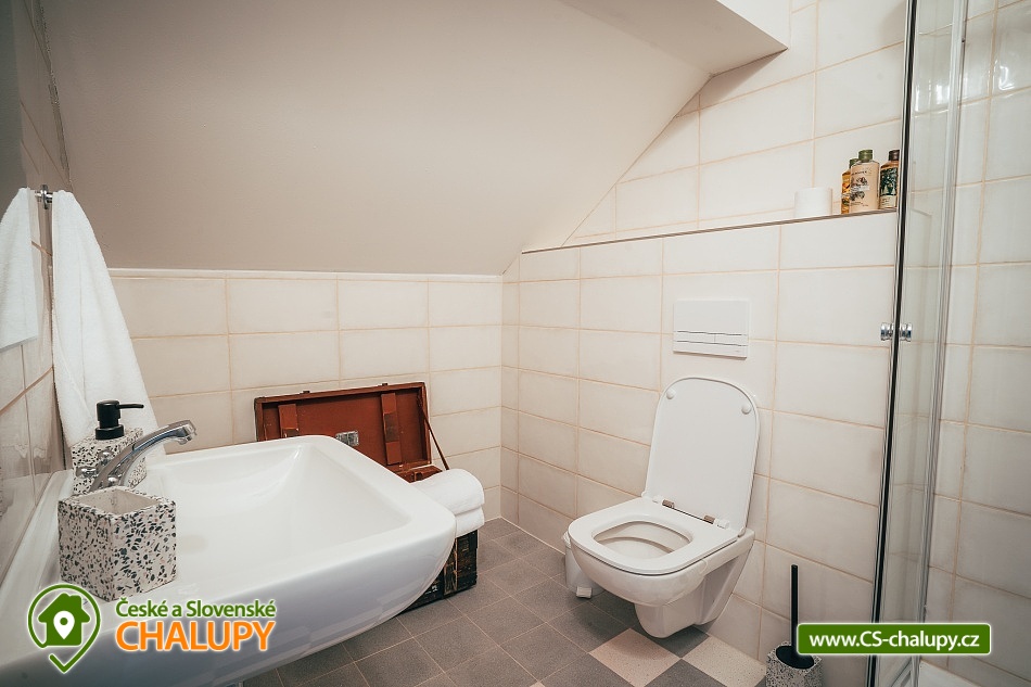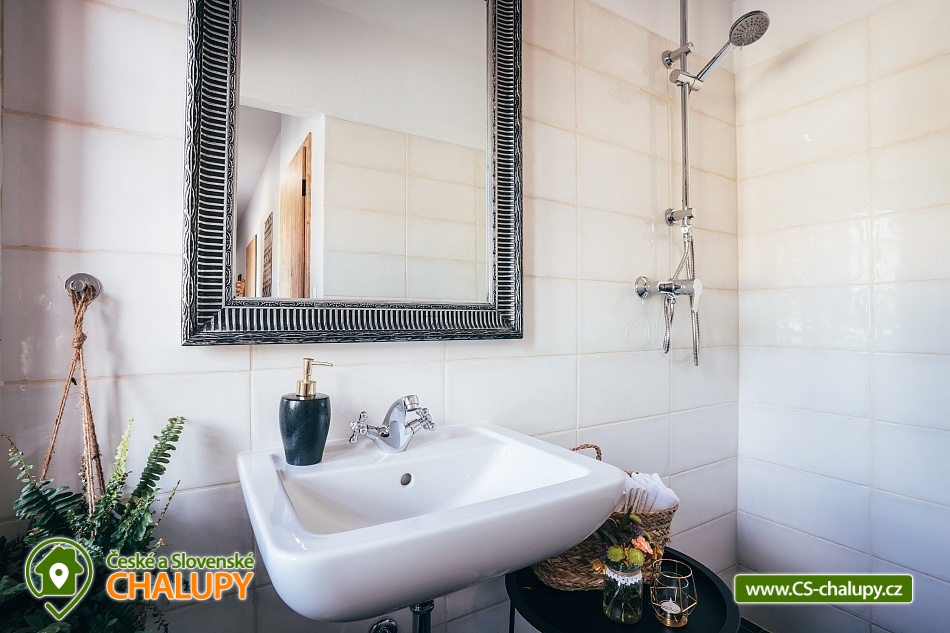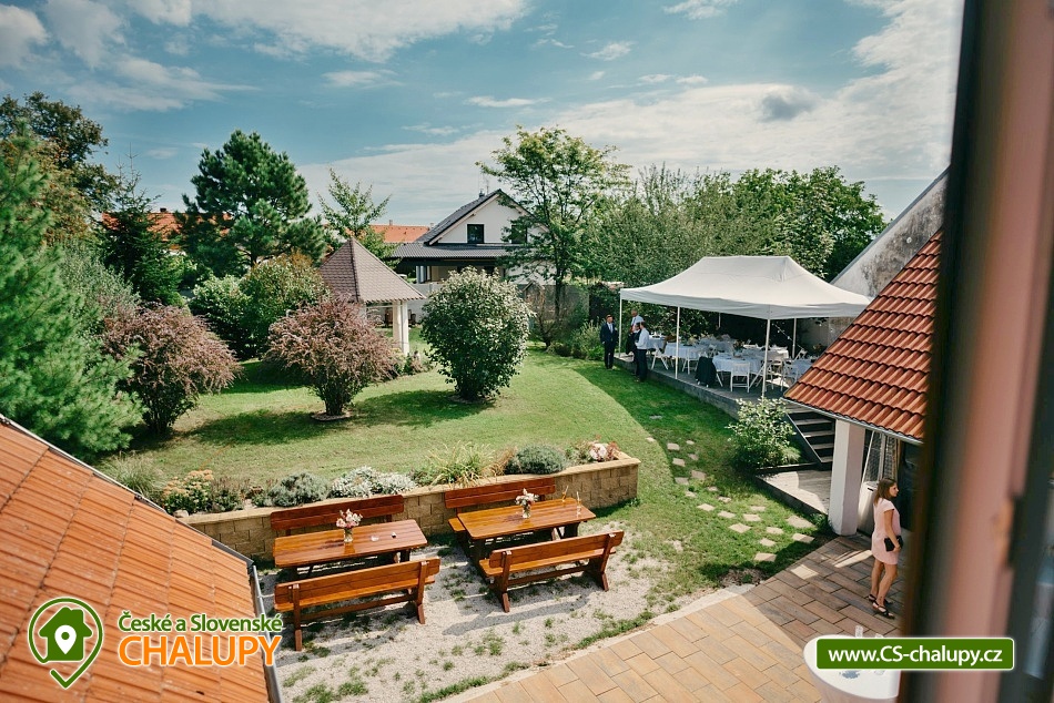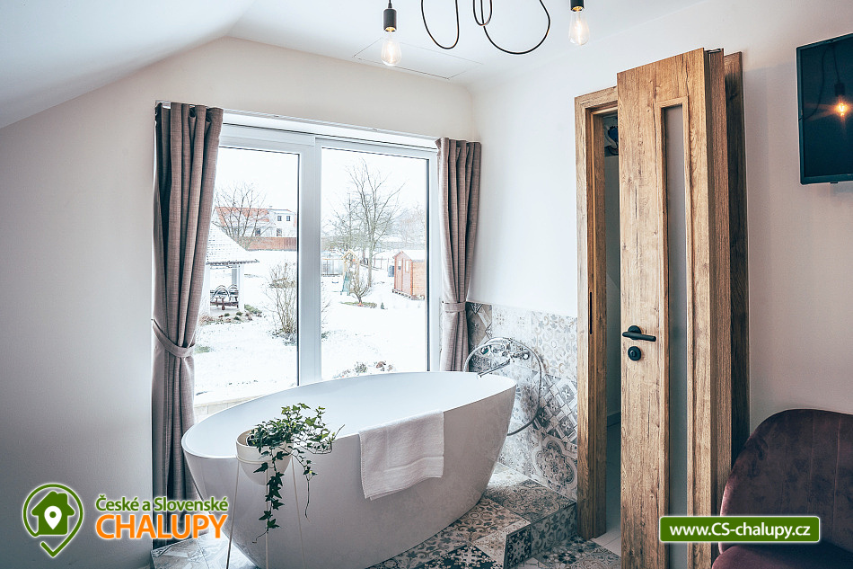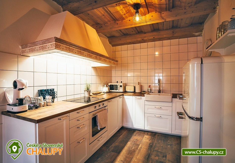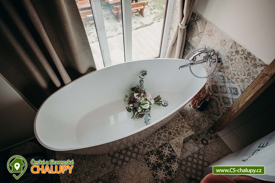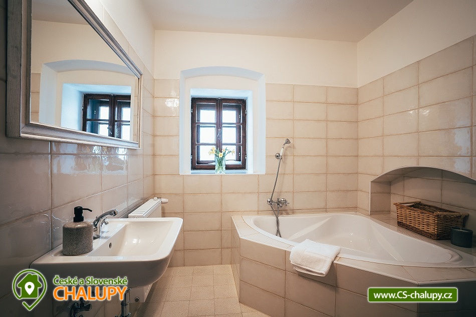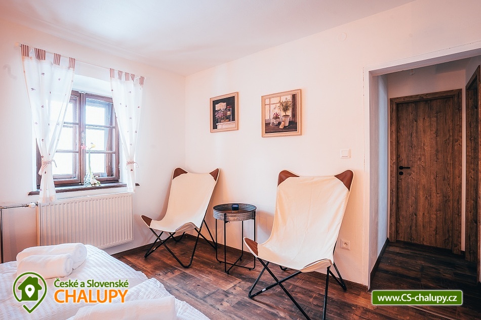 Jihočeská chalupa s wellness se nachází nedaleko turisticky oblíbeného města Český Krumlov (10 km) v malebné jihočeské obci Černice. Těšit se můžete na komfortní ubytování v sedmi pokojích s vlastní koupelnou a WC, dále na velkou společenskou místnost s krbovými kamny, kuchyní a jídelnou, knihovnu a wellness. Chalupa je ideální pro rodinnou pohodu, odpočinek s přáteli, setkání s kolegy nebo také po domluvě pro konání svateb. Chalupa nabízí ubytování pro až 20 osob v 7 pokojích, celkem je k dispozici 20 pevných lůžek. V přízemí se nachází jeden třílůžkový pokoj (manželská postel + jednolůžko) s velkou vanou a tmavým nábytkem a jeden čtyřlůžkový pokoj (2x manželská postel) - vejminek s vlastním vstupem ze dvora chalupy. V patře chalupy je umístěno dalších pět pokojů. První pokoj je třílůžkový (manželská postel a jednolůžko). Druhý pokoj je dvoulůžkový (2x jednolůžková postel) s dvěma přistýlkami řešenými rozkládací postelí. Další tři pokoje jsou dvoulůžkové (manželská postel). Nejhezčí je „svatební apartmán“ s volně stojící vanou, výhledem do zahrady a stylovým spaním na posteli z trámů. K zapůjčení je dětská postýlka a jídelní židlička. Společné chvíle lze trávit v přízemí ve společenské místnosti s krbovými kamny, sedací soupravou, TV, jídelním sezením a společenskými hrami. Dále je k dispozici plně vybavená kuchyň (elektrická trouba, keramická varná deska, mikrovlnná trouba, rychlovarná konvice, lednička, mraznička, kávovar, myčka nádobí, jídelní sezení a topinkovač). V přízemí se také nachází wellness se saunou a vířivkou a vlastním vchodem. V patře pro chvíle odpočinku slouží prostorná knihovna s gaučem. V celém objektu je k dispozici WIFI připojení na internet. Sociální zařízení zahrnuje v každém pokoji jednu koupelnu s WC, sprchovým koutem nebo vanou. Vytápění je řešeno elektrokotlem a krbovými kamny ve společenské místnosti. Venku lze volné chvíle trávit na uzavřeném dvoře a krásnou prostornou stodolou s barem, posezením a grilem. Děti se mohou na zahradě těšit na malou kouzelnou chaloupku a dětské hřiště s klouzačkou a pískovištěm. Zahrát si můžete šipky nebo stolní tenis. Parkovat lze přímo u objektu. V okolí chalupy možnost turistiky, cykloturistiky, koupání, rybaření, houbaření a lyžování. V blízkosti jsou tenisové kurty a golfové hřiště. Mezi možnosti koupání patří např.: rybník Štilec, požární nádrž koupaliště Třísov, bazén Český Krumlov, koupaliště Velešín, koupaliště Holubov, koupaliště Větřní, České Budějovice - plavecký stadion, koupaliště České Budějovice. K výletům v okolí láká Český Krumlov – zámek, Minoritský klášter, Hradní muzeum, Muzeum tortury, Muzeum marionet či Muzeum voskových figurín, dále zřícenina Dívčí Kámen, typická jihočeská vesnice Holašovice, Římovská přehrada nebo přehrada Lipno. V zimě oceníte blízké lyžařské středisko Ski areál Kramolín, Věžovaté pláně nebo rybník Olšina. Těšíme se na Vás u nás.