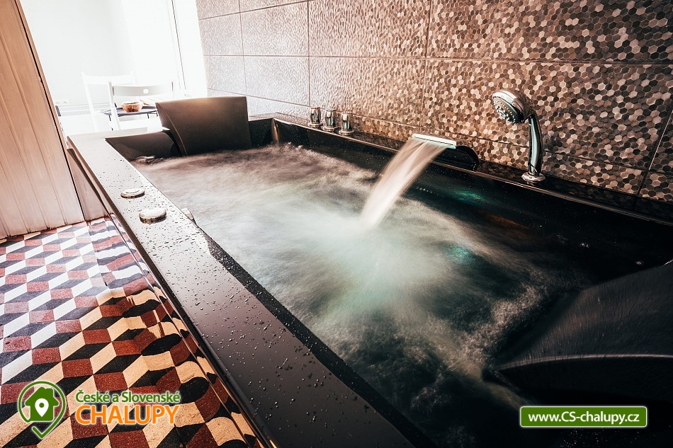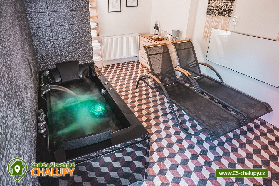 „Wellness chata s vnitřním bazénem - vířivou vanou a infrasaunou.“
