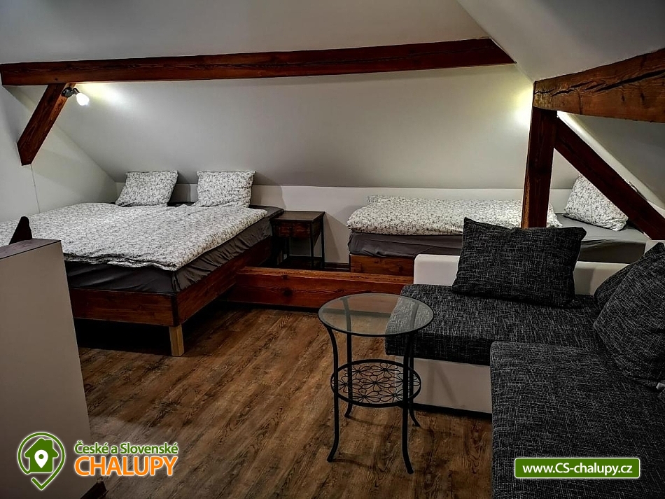 Pronájem chalupy - jihočeské stavení v obci Dráchov, kterou protéká řeka Lužnice. Chalupa sestává ze 2 samostatných ubytovacích jednotek (Vejminek + Apartmán). V létě pronajímáme chalupu jako celek 1 skupině klientů na celotýdenní pobyty. V mimosezóně je pak možné pronajmout i jednotlivé části chalupy samostatně a to i na kratší, obvykle víkendové pobyty. Vejminek i apartmán mají samostatný vchod, avšak společný dvůr s pergolou a venkovní vířivkou Whirlpool. POPIS: Vejminek poskytuje ubytování pro 4 osoby v 1 ložnici. Ložnice má 2 palandová dvoulůžka, popř. v obytné kuchyni s krbem je možné rozložit gauč a vytvořit tak pohodlné spaní na dvoulůžku. Vybavená kuchyň: TV, mikrovlnná trouba, el. trouba, sklokeramická 4 plotýnka, rychlovarná konvice, topinkovač. Koupelna se sprchovým koutem a wc. Vytápění: elektrickým přímotopem a kachlovými kamny. Apartmán poskytuje ubytování pro 4 osoby v 1 ložnici. Jedná se o mezonet, kdy v přízemí je obývací část, kuchyňský kout a soc. zařízení. V patře pak ložnice s manželskou postelí a jednolůžkem. Další samostatné větší lůžko (šíře 140cm) se nachází v patře nad koupelnou. Sociální zařízení: sprchový kout, wc a pračka. Vybavená kuchyně: myčka, lednice, mrazák, el. trouba, sporák, mikrovlnka, rychlovarná konvice a TV. Ústřední vytápění plynovým kotlem. Na dvoře u chalupy se nachází whirlpool, zastřešená pergola, gril, ohniště a houpačka. V obci se nachází kemp Karvánky, kde je možnost naučit se na vodních lyžích nebo vyzkoušet wakeboarding. Dále je nedaleko stylová restaurace Country salon Řípec, kde jsou atrakce pro děti a velký výběr jídel. V dojezdové vzdálenosti je možno navštívit zámek Červená Lhota, Třeboň, Hluboká nad Vltavou, Tábor a další nádherná místa v okolí. Možnosti koupání: Vlkovské pískovny, pískovna Karvánky a koupaliště Soběslav. Těšíme se na Vás u nás.