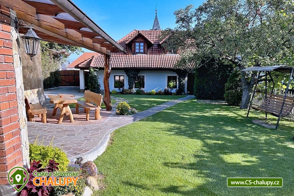 Jihočeská wellness chalupa s celoročně vyhřívaným bazénem a zahradou v Němčicích u Netolic v Jihočeském kraji nedaleko od Českých Budějovic (16 km). Možností dokoupení wellness (luxusní vířivka pro 5 osob, infrasauna pro 6 osob, hydromasáže v bazénu, perličkové masáže v bazénu, protiproud a vodopád v bazénu) za 5 000 Kč na týden, nebo 2 000 Kč na víkend. Objekt se nachází 200 m od návsi a kostela. V chalupě jsou dva apartmány. První v přízemí (7 osob) a druhý v podkroví (5 osob). Každý apartmán má samostatný vchod ze zahrady, a jsou propojeny vnitřním schodištěm s uzamykatelnými dveřmi. Možnost využít FKSP. Objekt je nabízen vzhledem ke čtyřem ložnicím pro maximálně 8 dospělých osob a 4 děti. V případě požadavku obsazenosti více dospělými osobami se každá žádost řeší individuálně a je třeba počítat se sníženým komfortem a vyšší cenou pobytu. Každá další dospělá osoba nad kapacitu 8 osob doplácí 1 000 Kč/den. Možnost parkování max. 3 auta v oplocené zahradě, další auta je možno parkovat v blízkosti chalupy. Zahrada je zarostlá živým plotem, zelení a vzrostlými stromy, což zaručuje klid a nerušený odpočinek. Na zahradě je k dispozici altán s celoročně vyhřívaným bazénem, vířivkou, infra saunou, krbem, udírnou a dřevěným stolováním. K bazénu je možno dokoupit relaxační program (hydro masáž, perličková masáž, protiproud, vodopád) 3000,- Kč na týden. Děti mohou využít dětský domeček s kuchyňkou a stolováním, kolotoč a dětské pískovitě. Na zahradě je také houpačka pro tři osoby. Velkou výhodou je uzavřený prostorný altán s vyhřívaným bazénem, který je možno bez omezení využívat celoročně i při velmi nepříznivém, chladném a deštivém počasí. Grilování, koupání, saunování, stolování pod jednou střechou ve stylovém provedení. V altánu je navíc možné při chladném počasí přitopit tepelným čerpadlem nebo kamny. V části altánu je i podlahové vytápění, které oceníte zvláště v zimních měsících. V ceně je ložní povlečení, ručníky a osušky. V apartmánech WiFi zdarma. Dětské hřiště je ve vzdálenosti 150 m od chalupy, multifunkční hřiště 300 m (zpoplatněno 100 Kč/hod), fotbalové hřiště 300 m. Další sportoviště v Českých Budějovicích 16 km. Objekt leží v dobrém výchozím bodě pro cykloturistiku (mnoho cyklotras v okolí) a poznávaní okolí. V okolí je možno podniknout tyto výlety: zámek Kratochvíle 8 km, Holašovice 6 km, Dehtář 4 km, poutní kostel Lomec s oltářem uprostřed 12 km, Kleť.