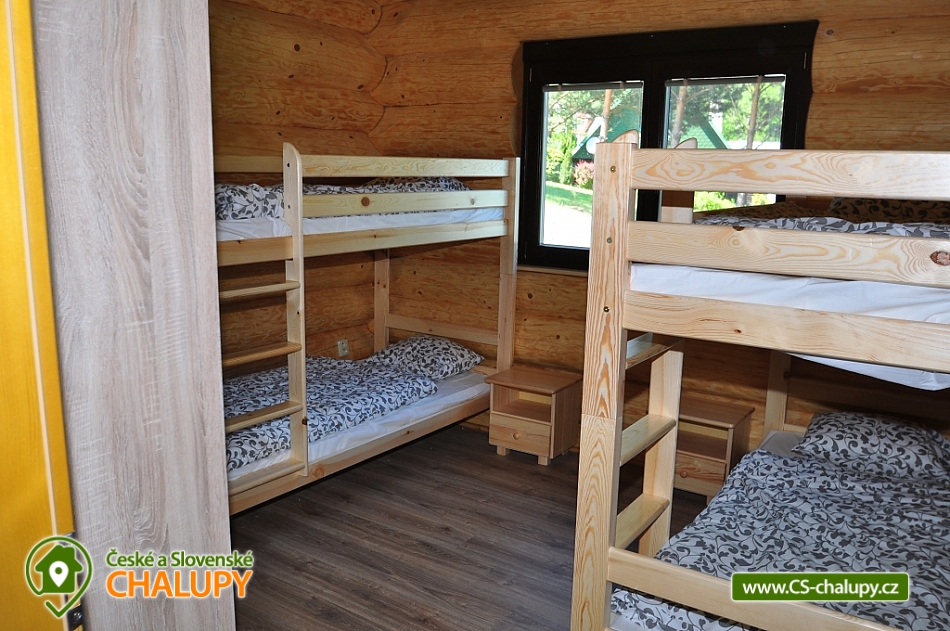 Kanadský srub Pastviny nedaleko hradu Buchlov - pronájem chaty Chřiby, jižní Morava. Ubytování v kanadském srubu, který se nachází v chatové oblasti zvané Pastvisko za obcí Čeložnice, okres Hodonín. Srub leží v oblasti vrchoviny Chřiby nedaleko Kyjovské pahorkatiny. Srub k pronájmu poskytuje ubytování pro až 6 osob ve 2 ložnicích. Srub je kompletně vybavený dvěma ložnicemi, venkovní terasou, krbem, pitnou vodou, ohřevem teplé vody a v létě venkovním bazénem. Ideální dovolená pro rodiny s dětmi, nebo menší skupinu přátel. V objektu je zdarma WiFi internetové připojení. Celý objekt je nekuřácký. Ke každému pobytu je DEGUSTACE VYBRANÝCH VÍN ZDARMA ve vinném sklepě v Čeložnicích. Pokoje: Ve srubu jsou dva pokoje. 1x dvoulůžkový pokoj a 1x pokoj se dvěma patrovými postelemi. Stravování při pobytu vlastní v kompletně zařízené kuchyni nebo v restaurace která se nachází 150 metrů od objektu, kde je možno domluvit i vaření na Váš celý pobyt. Sociální zařízení: Koupelna se sprchovým koutem, umyvadlem a zrcadlem a dále samostatné WC s umyvadlem. Vytápění: Krb na dřevo s teplovzdušnými rozvody do koupelny a do pokojů. Ve srubu je obývací místnost se sedací soupravou, krbovou vložkou a LCD TV, kompletně zařízená kuchyně, elektrický sporák, lednička, mikrovlnná trouba, rychlovarná konvice, příbory, talíře, skleničky a pod. Jídelní stůl se židlemi pro 6 osob. Venkovní posezení a gril. WiFi internetové připojení. Parkování přímo u srubu 2 místa. V zimním období při sněhové pokrývce je parkování 50m od srubu. V okolí doporučujeme - Chřiby jsou vyhlášené místo pro turisty, cyklisty a běžkaře. Výlety: hrad Buchlov, zámek Buchlovice, zámek Milotice. Koupání: koupaliště Kyjov, koupaliště Koryčany, přehrada Osvětimany. Lyžování: Ski park Osvětimany.