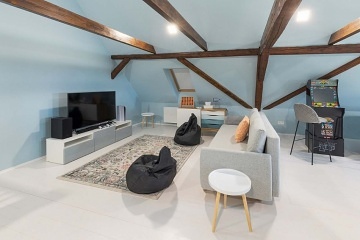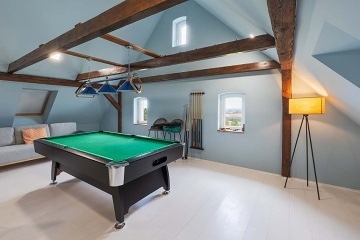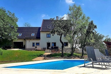 Chalupa s vyhřívaným venkovním bazénem a wellness (vířivka, posilovna a sauna) v CHKO České středohoří, obec Horní Chobolice. Objekt je ze severní části chráněn lesíkem a v jižní části pozemku je studánka obklopená keři. Pozemek díky tomu skýtá naprosté soukromí. Chalupa poskytuje ubytování pro až 14 osob v celkem 4 ložnicích. V přízemí vás uvítá prostorné zádveří se vstupem do krásné, plně vybavené kuchyně s výhledem do zahrady a na bazén. Na kuchyň navazuje veliká jídelna s krbovými kamny. V přízemí se také nachází 1.ložnice s manželskou postelí a rozkládací pohovkou pro 2 osoby. Jsou zde 2 elegantní koupelny, každá s WC a sprchovým koutem. První patro nabízí TV prostor s rozkládacím gaučem a 2 ložnice. První ložnice: 1 manželská postel s možností přistýlky v podobě rozkládací pohovky pro 2 osoby - po domluvě. Druhá ložnice: 1 manželská postel rovněž s možností přistýlky v podobě rozkládací pohovky pro 2 osoby - po domluvě, koupelna s WC a sprchovým koutem. Podkroví má velkorysý prostor a nabízí nejen nádherný výhled do okolí (hora Říp, Hazmburk), ale i kulečník, Arcade console, TV, PlayStation 5, a hračky. Prostě dokonalá herna pro děti i dospělé. V případě, že děti nebudou chtít toto úžasné místo opustit, mohou zde přespat na 2 rozkládacích gaučích (celkem 4 lůžka). V každé ložnici najdete vybavenou knihovnu. Vytápění zajišťuje tepelné čerpadlo a krbová kamna, ve wellness a v koupelnách podlahové vytápění. Parkování je možné přímo na oploceném objektu pro 4 auta, venku u objektu pro další 2 auta. Největší důraz jsme kladli na to, aby interiéry oplývaly moderním, ale zároveň útulným designem. Chalupa je ideální pro rodiny a skupiny přátel, kteří si přejí zažít luxusní odpočinek. Hostům jsou k dispozici vyhřívaný venkovní bazén, vířivka, posilovna, sauna i herna s kulečníkem. Na zahradě se nachází vyhřívaný bazén 8x4m, altánek, ohniště a zahradní nábytek. Nad zahradou je pak soukromý lesík. Celý areál je oplocen. Možnost domluvit snídaně a večerní degustace v dalším objektu (cca 200m od chalupy). Restaurace je v nedalekém Úštěku. Nejblíže chalupy je hora Sedlo, která je právem považována za chrám přírody. Pěšky jste pod jejím úpatím za 10 minut a na její vrcholek, který se tyčí v nadmořské výšce 726m, se podíváte za celkem akceptovatelnou hodinku. Po cestě nahoru potkáte tmavě šedou čedičovou horninu trachybazalt, která utváří místní skály. Sedlo je čtvrtou nejvyšší horou Českého středohoří a celý jeho vrchol o rozloze 42,2 ha je chráněn jako národní přírodní rezervace Sedlo v CHKO České středohoří. Ten výhled je k nezaplacení, to vám zaručujeme.