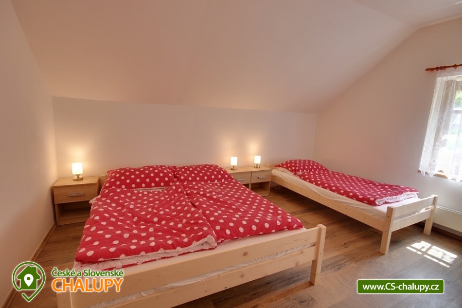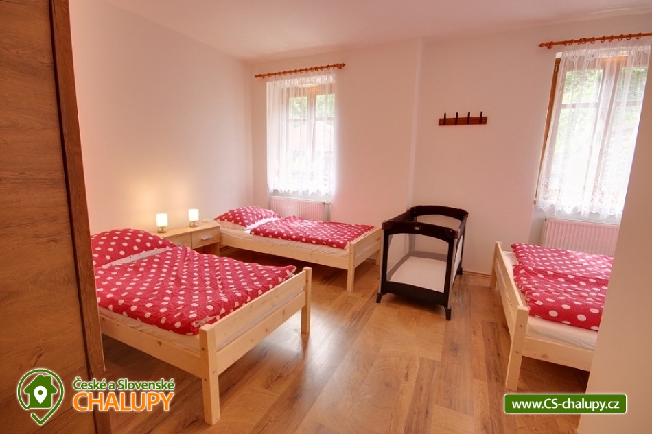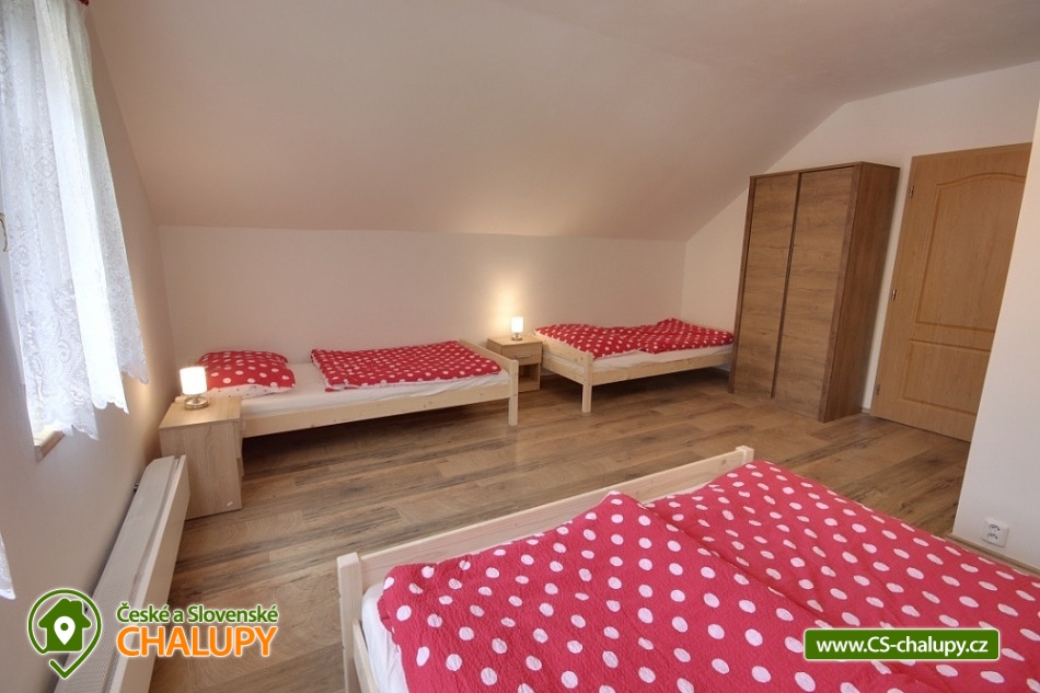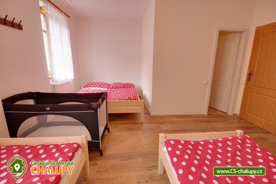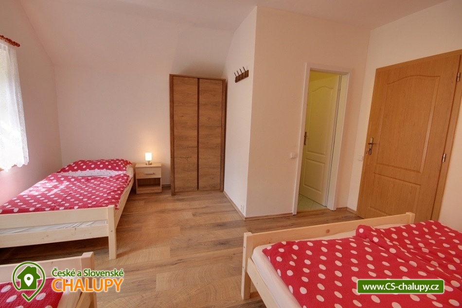Krkonošská chalupa - Luisino údolí, poloha nedaleko města Vrchlabí a střediska Strážné v Krkonoších. Klidné prostředí, místo je obklopené lesy. Chalupa k pronájmu poskytuje ubytování pro až 20 osob v 5 ložnicích. Výhodou je, že každá ložnice má vlastní sociální zařízení (sprcha/vana, umyvadlo, WC). V přízemí domu se nachází společenská místnost s příjemným posezením u krbu, odkud se nese teplo do celého domu, TV, WiFi připojení, jídelní stůl. Naproti společenské místnosti je k dispozici samostatná a plně vybavená kuchyně s výhledem na venkovní zahradní posezení. Příslušenstvím kuchyně jsou dvě lednice s mrazákem, myčka, elektrický sporák, kávovar, mikrovlnka, varná konvice, mixer, toustovač a velký jídelní stůl s židlemi. Velmi příjemné je podlahové topení ve společenské místnosti a chodbě. V přízemí je jedno společné WC. K dispozici je 5 ložnic s tím, že 1 ložnice je v přízemí a 4 ložnice jsou v patře chalupy. Každá ložnice má 4 lůžka - 1x manželská postel, 2x jednolůžko. Sociální zařízení: Každá ložnice má své sociální zařízení plus v přízemí je společná toaleta. Vytápění chalupy el. kotlem, krbem a podlahové vytápění. K chalupě vede místní silnice, která je v zimě udržovaná. U chalupy může zaparkovat až 10 aut. V okolí doporučujeme: Letní sezona - turistika, cykloturistika. V sousedním Lánově je možná jízda na koních. Z vrchlabského letiště létají vyhlídkové lety nad Krkonošemi. Nádherné je místní Krkonošské muzeum. Dolní Dvůr je dobrým výchozím místem - Zajímavé cíle v okolí - Sněžka, Chata Výrovka, Luční bouda, Pec pod Sněžkou, Tetřeví Boudy. Pěkný výlet je také na Černou Horu vzdálenou, nahoru jede lanovka a dolů můžete sjet třeba na koloběžkách. Kousek jsou také Janské Lázně kam láká Stezka korunami stromů. V nedaleké Jilemnici je krytý plavecký bazén a také Aquapark ve Špindlerově Mlýně. Zimní sezona - nejbližší sjezdovka cca 300m od chalupy - ski areál Luisino údolí, necelé 2km se nachází Ski areál Family s půjčovnou a lyžařskou školou. V sousední obci Strážné jsou kvalitní sjezdovky a běžecké tratě, dále Ski areál Herlíkovice uspokojí i zdatné lyžaře. Za necelou půlhodinku můžete sjíždět sjezdovky také ve Špindlerově Mlýně. Těšíme se na Vás u nás.