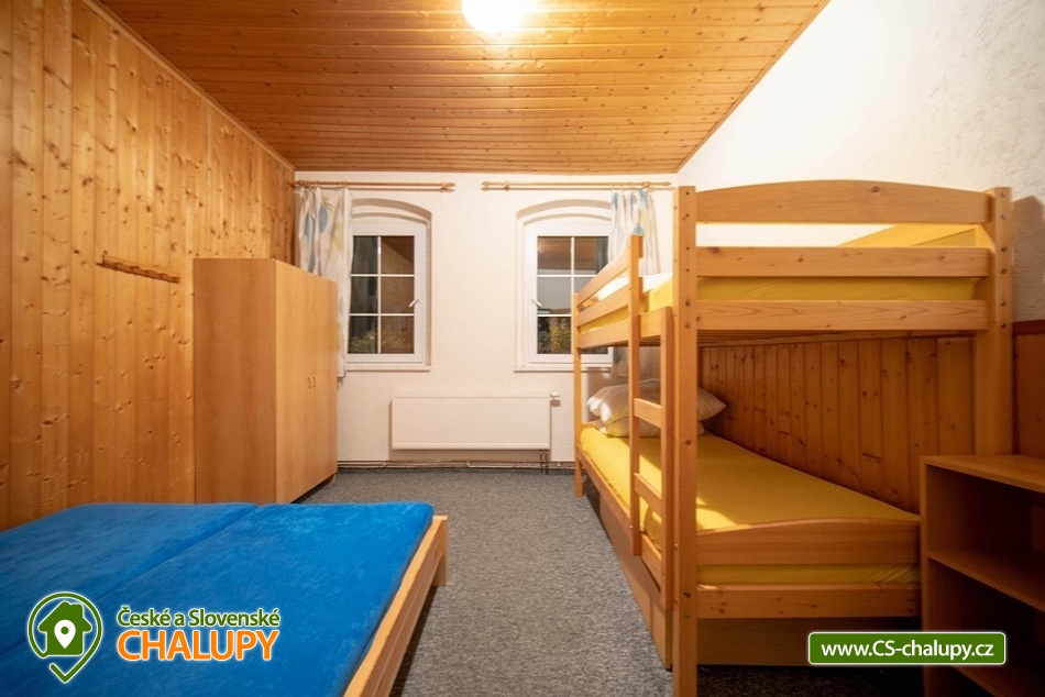 Krušnohorská chalupa se zahradou nedaleko Horní Blatné. Zahrada se zastřešenou pergolou, grilem, dětským hřištěm a ohništěm. Chalupa nabízí ubytování až 24 hostům v malebném prostředí Krušných hor. Ubytování nabízíme v 6 pokojích, z nichž 2 mají vlastní sociální zařízení. Pro ostatní pokoje se sprchy s WC nachází ve druhém patře a další WC vždy v mezipatře. V chalupě je dále k dispozici prostorná společenská místnost s TV/SAT, krbovými kamny a velká společná kuchyň se všemi potřebnými spotřebiči (trouba, plynový sporák, myčka, mikrovlnka) a nádobím. Při vstupu do chalupy je dále velká místnost sloužící pro uschování Vašich lyží, kol, kočárků a pod. K dispozici jsou tyto pokoje: 1 x 5 lůžkový s vlastním soc. zařízením, 3 x 4 lůžkový z toho 1 s vlastním soc. zařízením, 1 x 5 lůžkový bez soc. zařízení a 1 x 2 lůžkový pokoj. Na pokojích se nachází letiště i palandy (nové postele i matrace), noční stolky a úložné prostory. Vytápění plynovým kotlem. SAUNA JE K DISPOZICI V OBJEKTU přes ulici. Parkování pro 7 aut u objektu. Dostupnost autobusem / vlakem z Karlových Varů nebo Ostrova. U objektu je velká (dobře) oplocená zahrada s ohništěm a lavicemi, venkovní pergola s posezením a grilem a venkovní dětské hřiště - houpačka, pískoviště a klouzačka. Jste větší skupinou rodin s dětmi a hledáte objekt, kde byste si mohli užít společné chvíle? V zimě, chcete být kousek od sjezdovky a v létě mít k dispozici terény pro kola i pěší turistiku od nenáročných až po ty náročnější? Pak Vás rádi uvítáme na Javorce kousek od skiareálů Vleflink a Plešivec, uprostřed krušnohorských luk a lesů, kde se společné rodinné zážitky snoubí s rozjímáním a relaxem. V zimě je vlek od chalupy vzdálený jen 300 metrů stejně tak jako osvětlené běžkařské kolečko. Nástup na Krušnohorskou lyžařkou magistrálu je 700 metrů vzdálený. V létě se kolem chaty nachází nespočet turistických a cykloturistických tras vedoucích k cílům jako vrch Plešivec, Blatenská rozhledna, Vlčí a Červené jámy, Tisovský vrch, důl Mauritius apod.