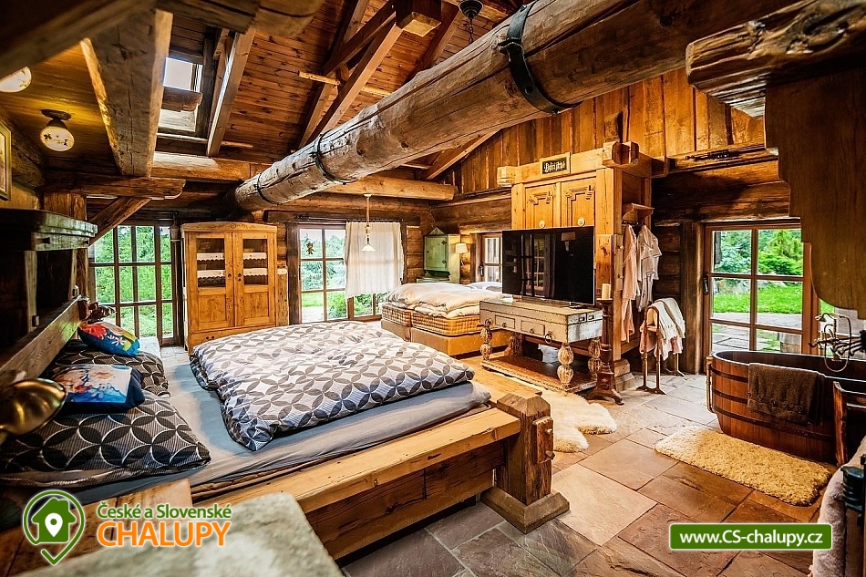 Mysleli jsme, že už takové místo ani nenajdeme, ale naštěstí jsme se spletli... Luxusní srub s bazénem a wellness na okraji obce Líny je zkrátka nádherný. Po překročení vstupní brány si budete připadat jak v jiném světe. Ve světě, kde se můžete schovat a odpočívat v naprostém soukromí. Snoubí se zde luxus spojený s domácí atmosférou, kterou ještě prohlubuje všudypřítomné masivní dřevo. Srub Líny se vám nebude chtít jen tak opouštět. Dominantou všeho je velká otevřená místnost (říkáme ji společenská) a masivní krbová kamna. Místnost obsahuje všechnu moderní techniku pro váš filmový maraton (k dispozici je vám obří promítací plátno) či taneční mejdan. Uprostřed místnosti na vás čeká kulečníkový stůl. Naleznete zde také plně vybavenou kuchyň včetně zrnkového kávovaru - kávu od Coffeespot od nás přijměte jako malou pozornost. Spát budete v jedné ložnici s oddělenými manželskými lůžky. Ráno vás nastartuje výhled na probouzející se zahradu, přímo u vchodu do ložnice máte navíc k dispozici nonstop vyhřátou vířivku. Další čtyři osoby se vyspí v čtyřlůžkovém pokoji s palandou v druhém samostatně stojícím domku na pozemku. Zde mají k dispozici vše potřebné včetně vlastní kuchyně, drobného posezení s TV, vlastní WC a sprchu. V ubytování můžete volně využívat vyhřívaný bazén, infra saunu, solárium nebo chcete-li se v rámci pobytu trochu hýbat, můžete si zaběhat na běžícím pásu, zajezdit na spinningovém kole nebo vyzkoušet další posilovací stroje. Děti jistě ocení domek se skluzavkou a houpačkou. Dospělí si můžou zahrát stolní tenis nebo kulečník. V okolí si můžete zajet do Mladé Boleslavi, například do muzea Škoda nebo se vydejte opačným směrem na zříceninu hradu Bezděz.