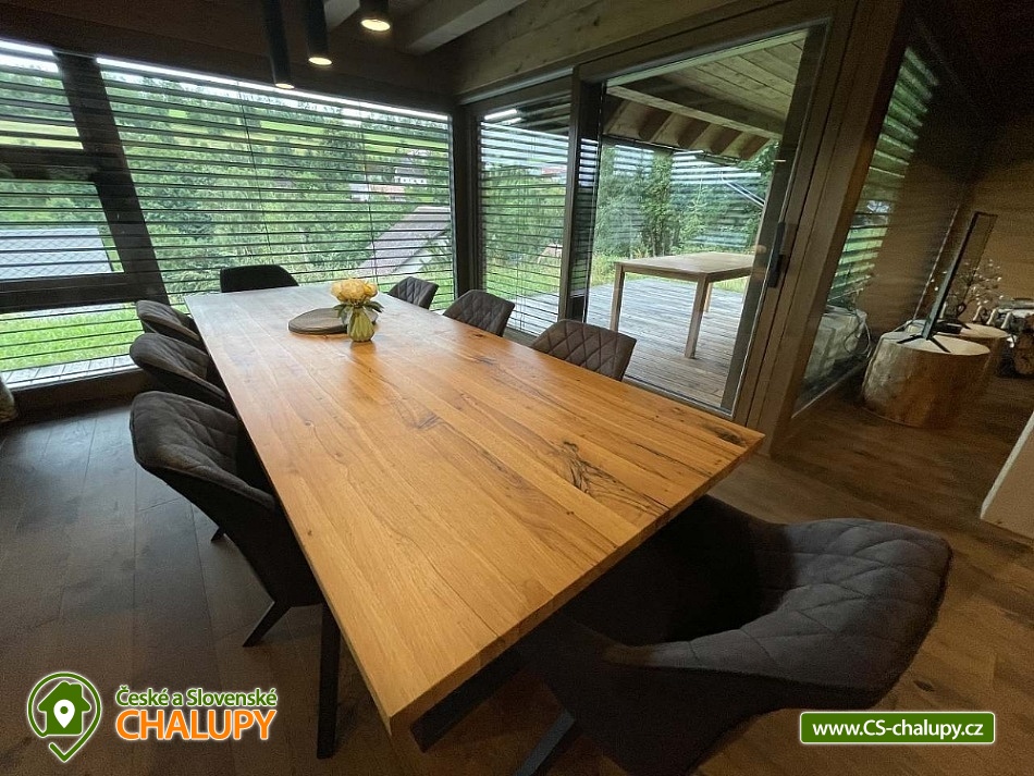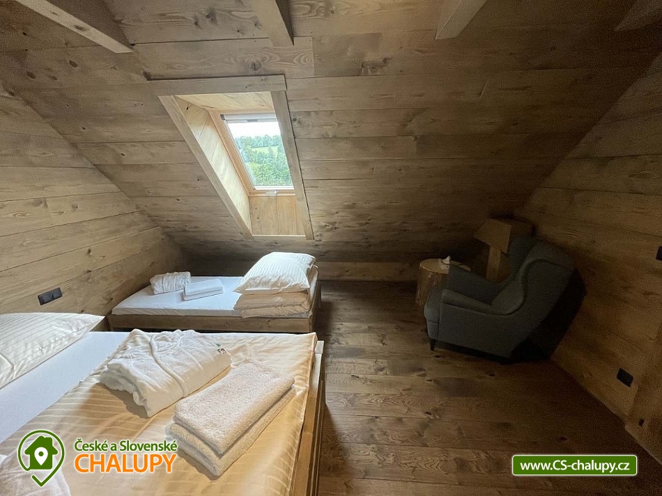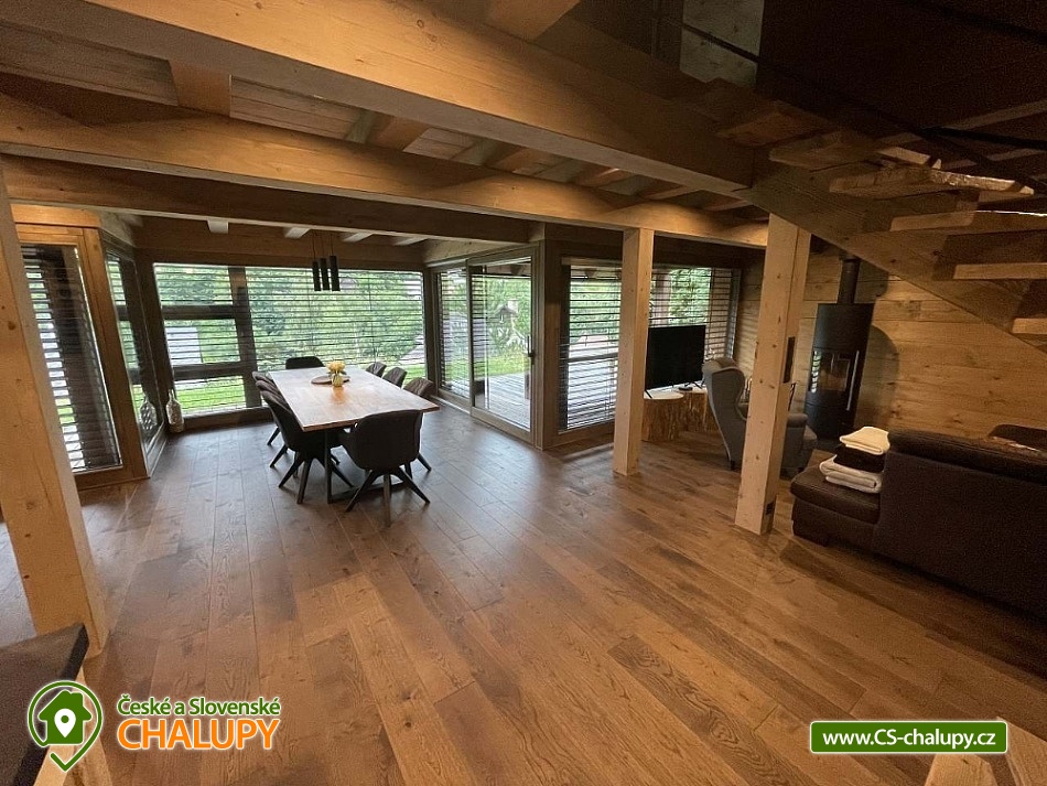 Luxusní wellness srub pod vrchem Na Kamenci v Krkonoších. Chalupa s wellness (sauna a koupací sud) a krásným výhledem do údolí na pomezí hor Krkonoše a Jizerské hory. V chalupě pro až 10 osob jsou 2 ložnice se 3 lůžky a 1 ložnice se 4 lůžky. V chalupě je k dispozici myčka, lednička, trouba, indukční deska, vinotéka, TV, internet a pro děti herní konzole. V objektu jsou 2 koupelny: v přízemí WC, umyvadlo a sprchový kout. V patře je WC, bidet, umyvadlo a vana. Vytápění zajišťují v obývacím pokoji krbová kamna, podlahové vytápění je v každé místnosti řízeno samostatným termostatem. U chalupy je v samostatném přístavku sauna s odpočívárnou, dále terasa, krb, zahradní nábytek, gril a ohniště. Parkování je možné přímo u objektu. Oblast Krkonošských hor nabízí klid a odpočinek a zároveň dostatek vyžití a zábavy. Dokonalá relaxace pro všechny v určitém luxusu. Prosklené části chalupy nechávají proniknout atmosféru malebné přírody a hor až k Vám. V okolí doporučujeme navštívit skiareál Vysoké nad Jizerou, Paseky nad Jizerou, Dvoračky, Mumlavské vodopády a velké množství turistických tras a cyklostezek. Možnost běžkování, letní výlety do okolí, v různých oblastech možnost zapůjčení elektrokol a koloběžek. Nedaleko je možnost navštívit Bozkovské jeskyně, farmářské trhy, ve Vysokém nad Jizerou je místní divadlo a muzeum. Možnosti koupání v okolí: koupaliště Jablonec nad Jizerou, koupaliště V Mlejnkách, koupaliště Poniklá - Homole v Dolích, koupaliště Bumbálka Jesenný, koupaliště Zákoutí Harrachov, lom Jílové u Držkova, koupaliště Mříčná nebo např. bazén Jilemnice. Těšíme se na Vás u nás.