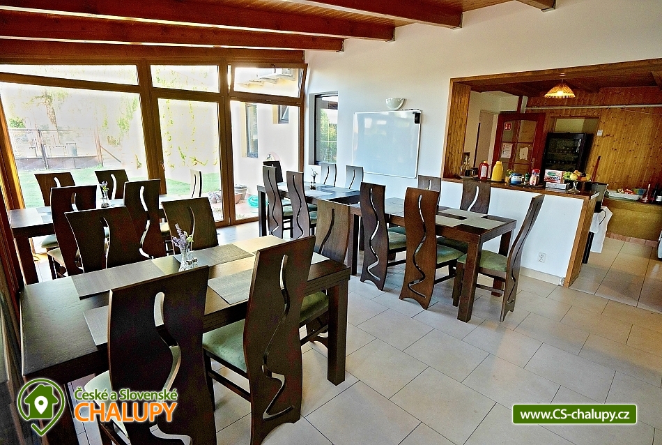 Penzion s bazénem a vinným sklepem je vhodný pro rodinné pobyty i pobyty skupiny přátel, možno také využít na svatby, rodinné oslavy, teambuilding. Penzion nabízí 8 pokojů až 26 lůžek, snídaně formou švédského stolu, parkování na pozemku, možnost pronájmu celého objektu pro rodinné a firemní akce, vinný sklep s degustací a občerstvením, půjčovna kol, bazén na zahradě (v létě), venkovní a vnitřní terasa, gril, krb, kuchyně, rybaření v okolí, cykloturistika po Lednicko - valtickém areálu. Možnost zajištění dopravy po okolí bus až 8 osob. POPIS: 8 pokojů až 22 lůžek - každý pokoj má vlastní sociální zařízení, ledničku a TV. POKOJE: Pokoj č.1 (2+1), koupelna na pokoji. Pokoj č.2 (2+0), koupelna na pokoji. Pokoj č.3 (2+2), koupelna na pokoji. Pokoj č.4 (2+1), koupelna přes chodbu. Pokoj č.5 (2+1), koupelna na pokoji. Pokoj č.6 (3+2+1), koupelna na pokoji. Pokoj č.7 (2+0), koupelna na pokoji. Pokoj č.8 (2+1), koupelna na pokoji. Vytápění objektu: Teplovodní topení a klimatizace. Dále k dispozici: Zařízená kuchyňka, terasa s posezením, krbem, grilem a vinným sklípkem. Prostorná zahrada s houpačkou a pískovištěm, v létě nadzemní bazén (průměr 3,66 m, hloubka 1 m) a lehátka. Pokud máte vlastní kolo, odložíte si ho v uzamykatelném zahradním domku. Parkoviště u penzionu je určeno pro 7 aut a je hlídané kamerovým systémem. Okolí: Nenechte si ujít návštěvu zámků Lednice a Valtice, jakož i jejich zahrad. Rovněž do svých plánů zahrňte Maurskou vodárnu, minaret, Apollonův chrám, Dianin chrám, Janův hrad a Chrám Tří grácií. Z přírodních zajímavostí v okolí zmíníme Lednické rybníky, Pastviny u Lednice nebo rezervaci Dolní Morava. Na koupaliště si zajděte do Břeclavi, tam si užijete i zábavu v lanovém parku. Ve Valticích můžete navštívit Národní vinařské centrum, jehož návštěvu spojíte i s degustací. Těšíme se na Vás u nás.