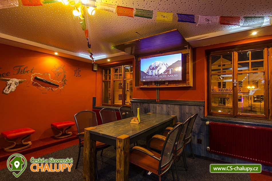 Penzion Horní Rokytnice - Rokytnice nad Jizerou - Krkonoše. Penzion se nachází přímo na Dolním náměstí v centru Rokytnice nad Jizerou. Z centra jsou na dosah lyžařské vleky Studenov (300m), obchody se sportovním zbožím, půjčovny lyží, potraviny a mnoho dalších služeb. Penzion nabízí celkem 7 apartmánů. Přímo v penzionu se nachází restaurace v keltském stylu. Vybavenost apartmánů: vybavená kuchyňka (mikrovlnná trouba, vařič, rychlovarná konvice, lednice, nádobí), televize, koupelna, toaleta, wi-fi. Penzion je nekuřácký. Členění apartmánů: 1x 3 lůžkový apartmán, 2x 2 lůžkový apartmán + rozkládací 1,5 lůžko, 1x 4 lůžkový apartmán + rozkládací 1,5 lůžko. 2x 3 lůžkový apartmán + rozkládací 1,5 lůžko a 1x 3 lůžkový apartmán + rozkládací 2 lůžko. Pro vaše ratolesti je k dispozici dětský koutek, pro surfaře připojení k internetu u každého stolu. Nabízíme jedinečný interiér v keltském stylu, výborná keltská, krkonošská i mezinárodní kuchyně a pizzy vlastní výroby, velký výběr z našich specialit, nealko i alko nápojů. Dle dohody zajistíme jakékoliv akce, jednání a oslavy včetně ubytování v Penzionu (tento objekt 5C-041) nebo v našem dalším Penzionu (objekt C5-040). Penzion je vhodný také pro motorkáře a cyklisty. Skvělé výchozí místo pro výlety do Krkonoš jak z polské, tak z české strany. Pro větší skupiny (srazy) po dohodě zajistíme večírky např. s hudbou, různé varianty pohoštění (jídlo dle dohody – třeba formou rautu) např. pečené kachny, krkovice, kýty apod. S různými výlety rádi poradíme. Zdejší krásná příroda v Rokytnici nad Jizerou láká k pěším horským túrám i kratším procházkám po okolí a cykloturistice. Na hřebeny okolních kopců vede několik desítek lyžařských vleků a čtyřsedačková lanovka na Lysou horu, která je dlouhá 2.197 metrů. Zdejší sjezdové tratě patří mezi nejlepší a nejdelší v republice a jsou uměle zasněžovány. Pro snowboardisty je připraven snowpark s vlastním vlekem. Vášniví lyžaři mají možnost večerního lyžování. Také vyznavači běhu na lyžích tu najdou to své. Upravované běžecké tratě se nacházejí jak v blízkosti centra města (u kapličky, okolo Strážníku), tak ve vyšších polohách okolo Studenova nebo Dvoraček.
