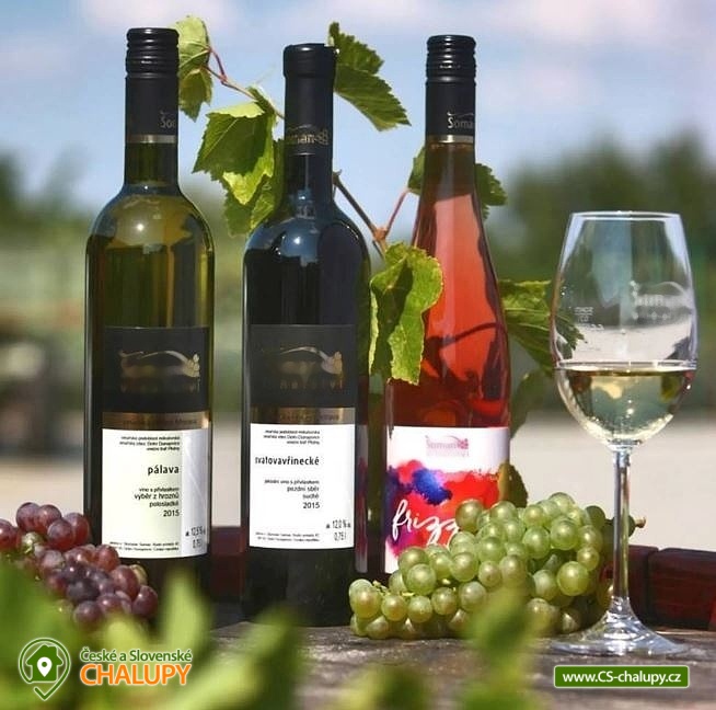 Penzion s možností řízené degustace vína se nachází v turisticky oblíbené lokalitě CHKO Pálava nedaleko města Mikulov, přehrady Nové Mlýny a Aqualand Moravia. Kapacita objektu je až 16 osob ve 4x samostatně pronajímaných čtyřlůžkových pokojích. Po domluvě lze objekt pronajmout také jako celek. Všechny pokoje jsou zařízené stejně. V každém je dispozici 2x jednolůžková postel (možnost spojit do dvoulůžka), 1x patrová postel, TV, úložné prostory a koupelna se sprchovým koutem a WC. K zapůjčení je dětská postýlka. Všichni ubytovaní mohou příjemné chvíle trávit v prostorné společenské místnosti s jídelními stoly a nabídkou vín z vinařství majitelů objektu. Dále lze v penzionu využívat společnou a plně vybavenou kuchyň (elektrický vařič, mikrovlnná trouba, rychlovarná konvice, lednice s mrazákem a sezení). V celém objektu je k dispozici WIFI připojení na internet. Součástí společných prostor je také jedno samostatné WC. Nechybí úschovna pro kola. Parkovat lze přímo u objektu. K dispozici jsou 4 parkovací místa. Po domluvě lze zajistit degustaci přímo v rodinném vinařství majitelů nebo prohlídku vinařství s vinicemi. V okolí penzionu možnost turistiky, cykloturistiky, koupání, rybaření a houbaření. V blízkosti jsou tenisové kurty, fotbalové hřiště, golfové hřiště, jízdárna a bowling. Mezi možnosti koupání patří: Novomlýnská nádrž, koupaliště Mikulov, koupaliště Březí a Aqualand Moravia. K výletům v okolí lákají Pálavské vrchy, pozůstatky hradu Neuhaus i Sirotčí hrádek, Zámek Mikulov, Zřícenina hradu Děvičky, Hustopeče nebo Lednicko - Valtický areál (UNESCO). Těšíme se na Vás u nás.