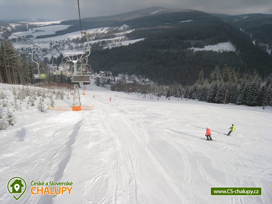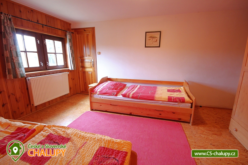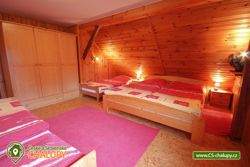 Poloroubená chalupa s bazénem (bazén vyhřívaný tepelným čerpadlem) a vlastním rybníkem v CHKO Orlické hory. Poloha chalupy cca 4 km od střediska Deštné v Orlických horách na konci horské obce Sedloňov. Chalupa k pronájmu poskytuje ubytování pro až 16 osob v 5 ložnicích. POPIS: V přízemí chalupy je zastřešená veranda s posezením, vstupní chodba, prostorná jídelna se zařízenou kuchyní, masivním selským jídelním stolem a lavicemi, první koupelna s vanou (další dvě koupelny se sprchovým koutem jsou v patře), společenská místnost s posezením a TV. Dále je v přízemí hospodářská část, kde je k dispozici stůl na stolní tenis, v přízemí 1 dvoulůžkový pokoj. V podkroví jsou další čtyři pokoje a dvě koupelny, vše po celkové rekonstrukci. Dominantou podkroví je čtyřlůžkový pokoj s možností přistýlky (vysunovací lůžko s matrací) se samostatnou koupelnou a wc. V podkroví se nachází další čtyřlůžkový, jeden třílůžkový a jeden dvoulůžkový pokoj. K dispozici dětská postýlka. Přímo na pozemku parkování až pro 5 aut. V objektu ústřední topení - elektrokotel v kombinaci s přímotopy. Na zahradě je nadzemní bazén 5,5m vyhřívaný tepelným čerpadlem, hřiště na volejbal/nohejbal, venkovní posezení, trampolína s ochrannou sítí - průměr 5 m, houpačky, skluzavka, houpací síť, zahradní nábytek, ohniště, zahradní gril, pískoviště. Kolem zahrady je vysázen 2,5 m vysoký živý plot, čímž je zajištěno dokonalé soukromí. Na pozemku vlastní rybník (možnost koupání) s okrasnou zahradou. Okolí má ideální podmínky pro rekreaci - malebnou lesnatou krajinu vhodnou pro turistiku, v zimě v okolí s mnoha lyžařskými areály. Lesy jsou protkány cestami s turistickým značením. V krajině se vyjímají horské roubené chaloupky, dnes převážně využívané k rekreaci. Jen 800 m od chalupy je lyžařský vlek v Sedloňově s umělým zasněžováním a nočním lyžováním s půjčovnou i školičkou, 5 km - lyžařské středisko Deštné v O. h. - v létě lanové centrum, půjčovna čtyřkolek, 4 km SKI Areál Olešnice, 5km SKI Areál Hartmann. Udržované běžkařské stopy přímo za chalupou. 4 km pevnost Skutina - bungrové opevnění z 2.sv. války, 20 km - zámek Opočno a 25 km je vzdálená přehrada Rozkoš.