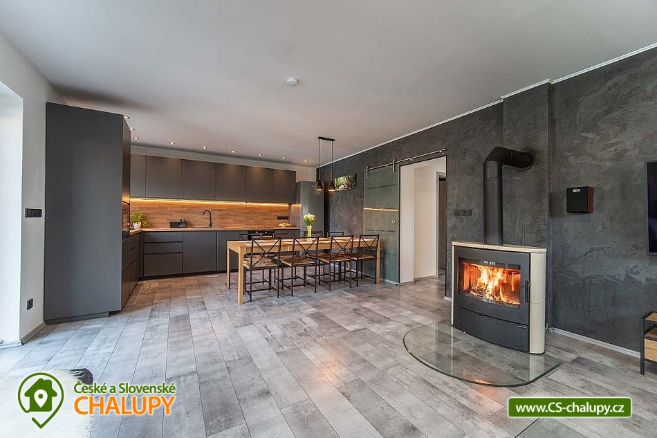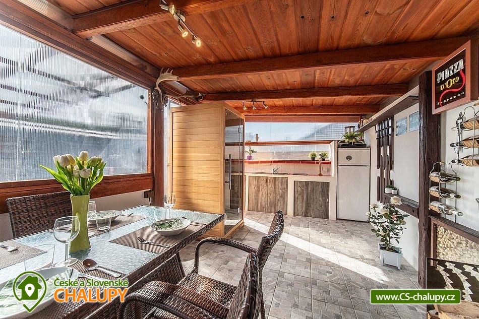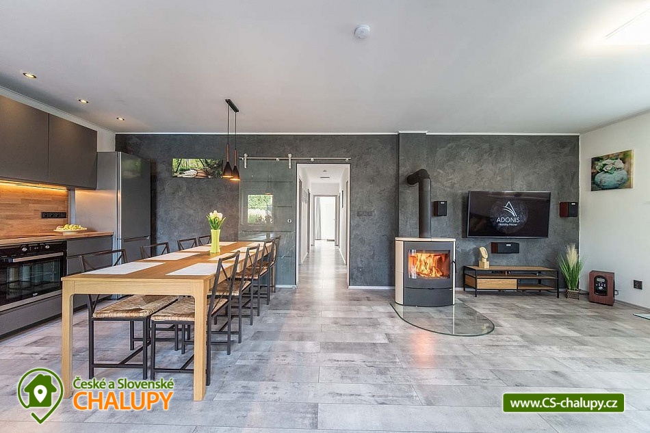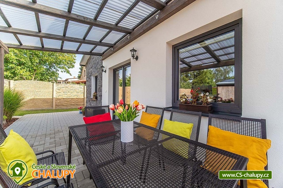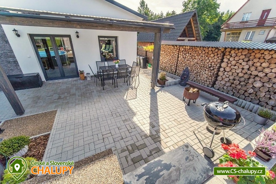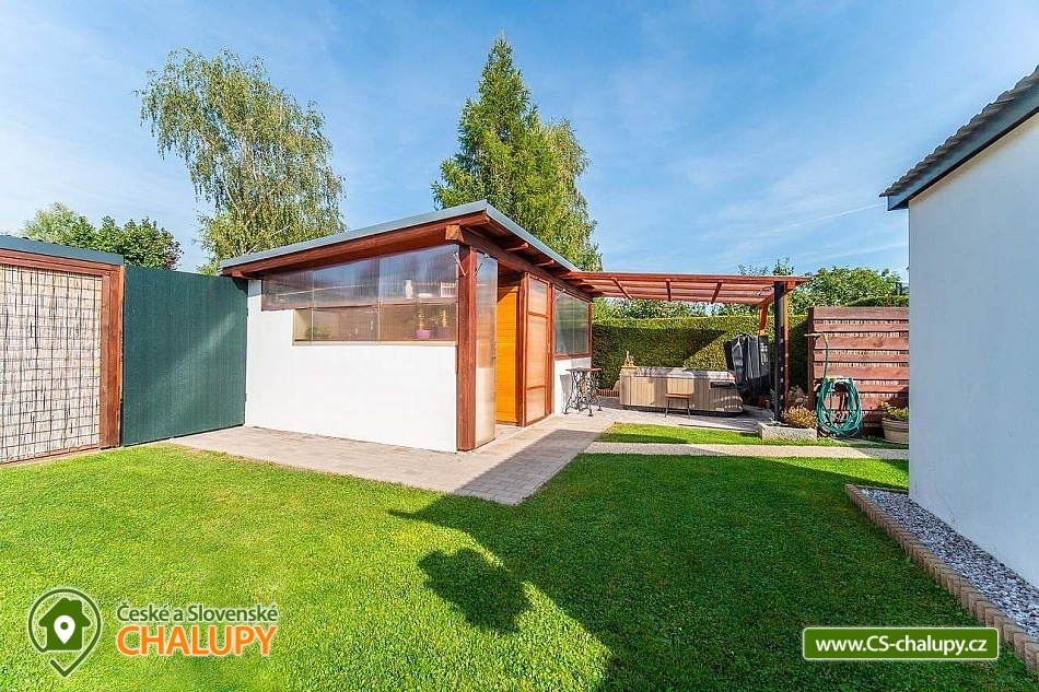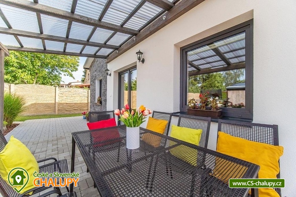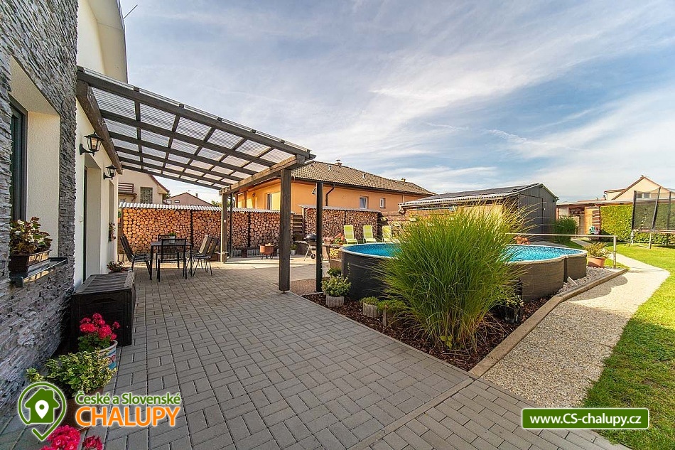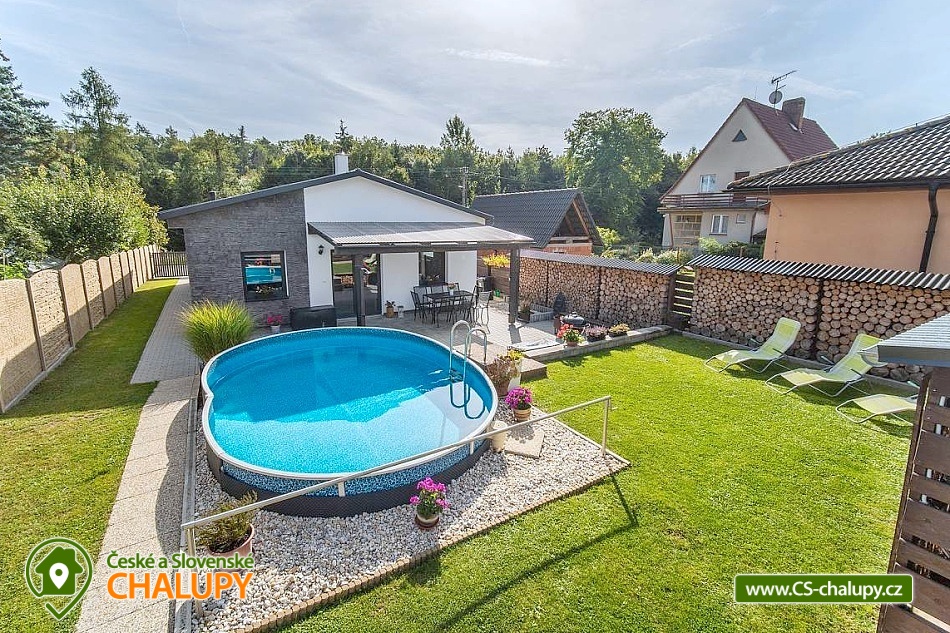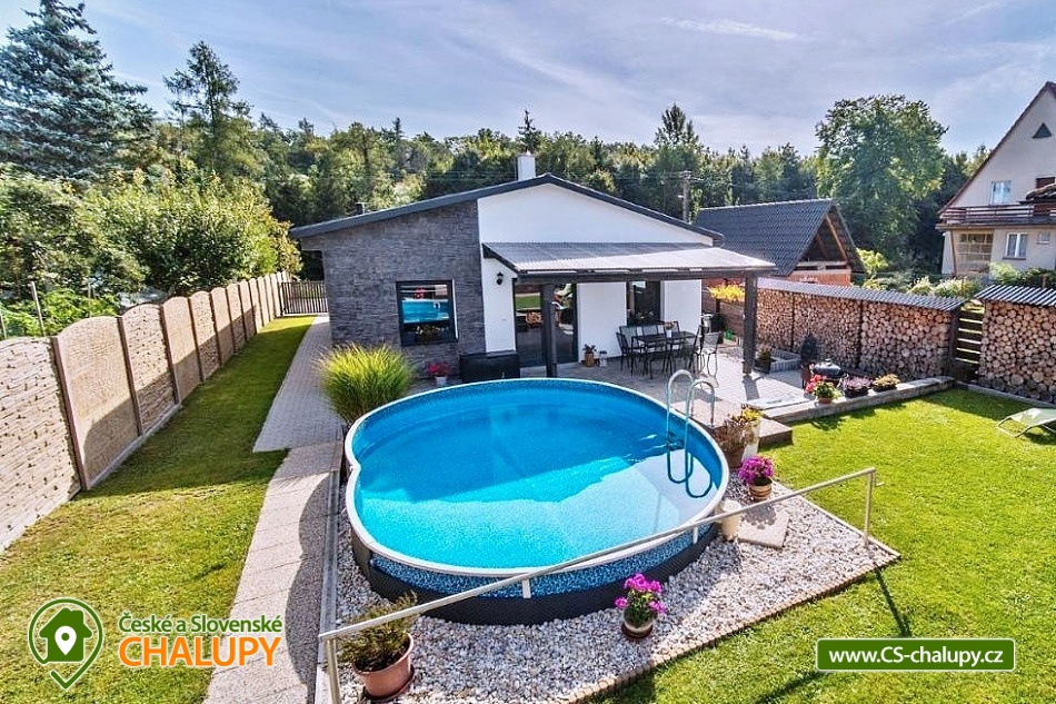 Moderně zařízený Prázdninový dům s wellness a bazénem se nachází na okraji obce Bystřice, 5 km jižně od Benešova a zámku Konopiště. Rekreační dům - rekreační chata je ideálním místem pro rekreaci v každé roční době díky turisticky bohaté lokalitě s dostatkem přírodních a historických zajímavostí. Těšit se můžete na odpočinek ve vířivce, infrasauně či v bazénu nebo na posezení v zastřešené pergole s možností grilování na žulovém kamenu a na uzení masa v udírně. Prázdninový dům nabízí ubytování pro až 8 osob ve třech ložnicích. Všechny ložnice mají manželskou postel a v jedné z nich je navíc palanda. Ke společným chvílím slouží obývací pokoj s krbovými kamny, jídelním stolem, sedací soupravou, LCD televizí s O2 TV a domácím kinem. Součástí pokoje je plně vybavená kuchyň - trouba, indukční varná deska, mikrovlnná trouba, myčka, rychlovarná konvice, toustovač a nádobí. V celém objektu je k dispozici WIFI připojení na internet. Sociální zařízení zahrnuje 1x koupelnu s velkou walk - in sprchou, vanou, WC, umyvadlem a pračkou, 1x WC s umyvadlem, dále 1x venkovní WC s pisoárem a 2x venkovní sprchu. K dispozici je pračka, žehlička, stojan na sušení a fén na vlasy. Vytápění je řešeno přímotopy a krbovými kamny. Venku lze posedět na zastřešené terase u domu nebo v samostatné, zastřešené pergole, jejíž součástí je letní kuchyň s ledničkou, elektrickou varnou deskou a dřezem. Také je v ní umístěná infrasauna a odpočinková zóna s televizí a kamny. A vedle se nachází vířivka, kterou lze využívat v jarních a letních měsících. Dále je k dispozici otevřené ohniště, grill Weber nebo udírna se žulovým kamenem. Na prostorné zahradě je možné se vykoupat v bazénu, hrát pétangue či odpočívat na lehátku. Parkovat lze přímo u objektu. V okolí objektu možnost turistiky, cykloturistiky, koupání, rybaření a houbaření. V blízkosti jsou tenisové kurty a golfové hřiště. Mezi možnosti koupání patří např.: Jarkovický rybník, bazén Benešov, Libohošťský rybník, koupaliště Benešov, rybník Papírník, biotop Přírodní koupaliště Votice, rybník Smikov, atd. K výletům v okolí láká Zámek Konopiště, Zámek Líšno, Zámek Jemniště, letiště v Nesvačilech s vyhlídkovými lety, Golf Resort Konopiště, Rozhledna Špulka, Zoo Labyrint, zábavní park Kvantario, Lanový park Slapy, Automuzeum Svět Škodovek nebo pivovar Ferdinand v Benešově. Těšíme se na Vás u nás.