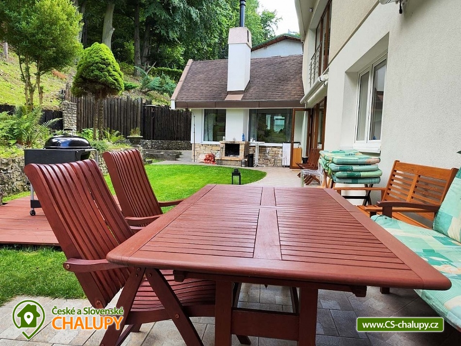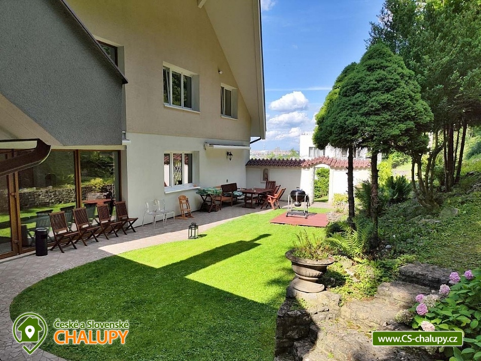 Rekreační dům s vnitřním bazénem a vířivkou - Barrandov.. Nabízíme pronájem komfortní vily na klidném místě pro až 32 osob v celkem 11 ložnicích. Vilu najdete v hlavním městě Praha v městské části Hlubočepy, jen 3,8 km od Vyšehradu a 600 m od Filmových ateliérů Barrandov. V objektu je prostorný obývací pokoj s TV a výhledem do zahrady. Plně vybavená kuchyně je včetně myčky na nádobí. V objektu je 6x 2-lůžková ložnice a 5x ložnice se 4 lůžky. Ve vile se nachází celkem 3 koupelny s WC. Parkoviště u objektu je soukromé a neplacené. Vila se nachází na konci slepé ulice Pod Habrovou ve velmi klidné části Barrandova. K dispozici je soukromý bazén se slanou vodou, vířivka a zahrada s grilem. Velmi pěkná je sluneční terasa k posezení. Vila je obklopena lesem, který poskytuje naprostý klid a soukromí. Přitom do centra na Národní třídu se autem dostanete do deseti minut a městskou hromadnou dopravou do 20 minut. V létě je možnost v naprostém soukromí posedět v atriu u venkovního krbu a kochat se pohledem na velkou zahradu lesoparkového stylu o rozměrech 3 000 m2. Vila je vhodná pro ubytování manažerů, pořádání eventů, ale stejně tak i pro ubytování skupin zahraničních turistů, nebo pro rodinnou dovolenou. Vyžití, atrakce a výlety nabízí hlavní město Praha. Pro milovníky golfu je Golf & Country Club Hodkovičky vzdálen pouhé 3 kilometry. V tomto areálu naleznete také tenisové kurty a další sportovní vyžití. Nejvýznamnější pražské památky, jako je například Karlův most nebo Národní muzeum se nachází jen 6 km od naší vily.