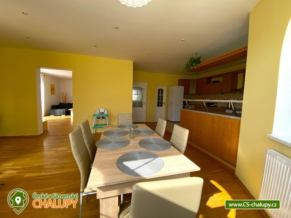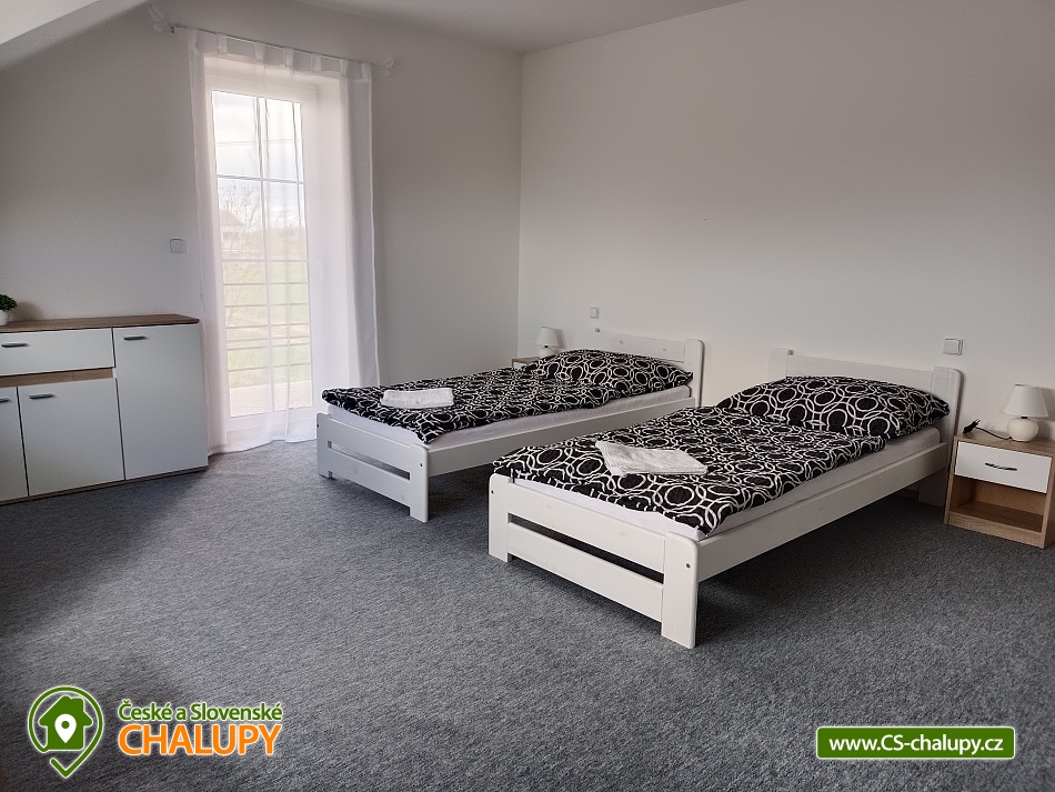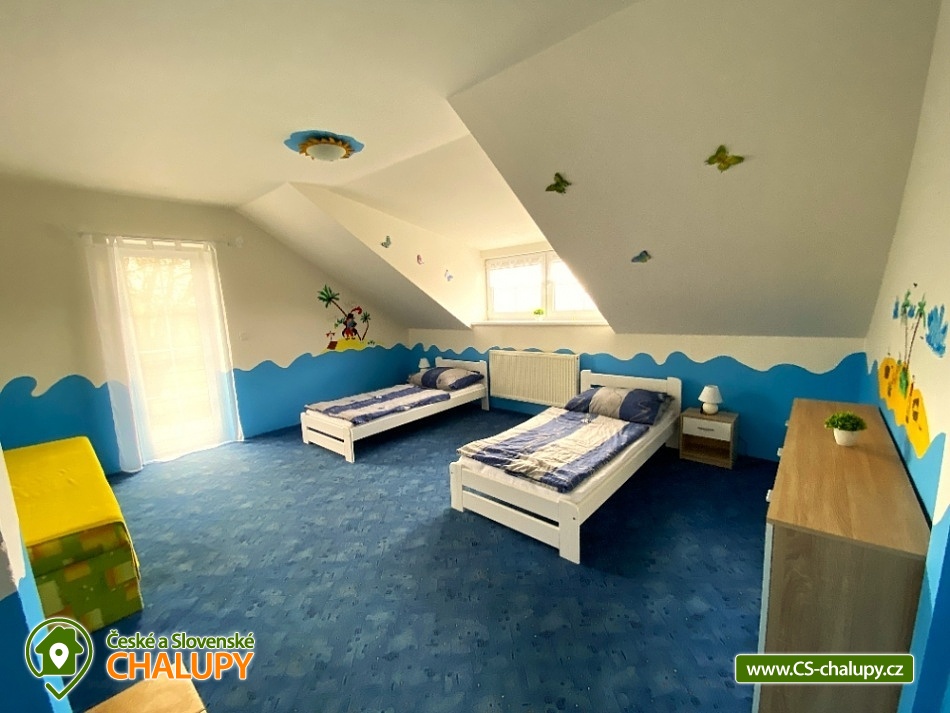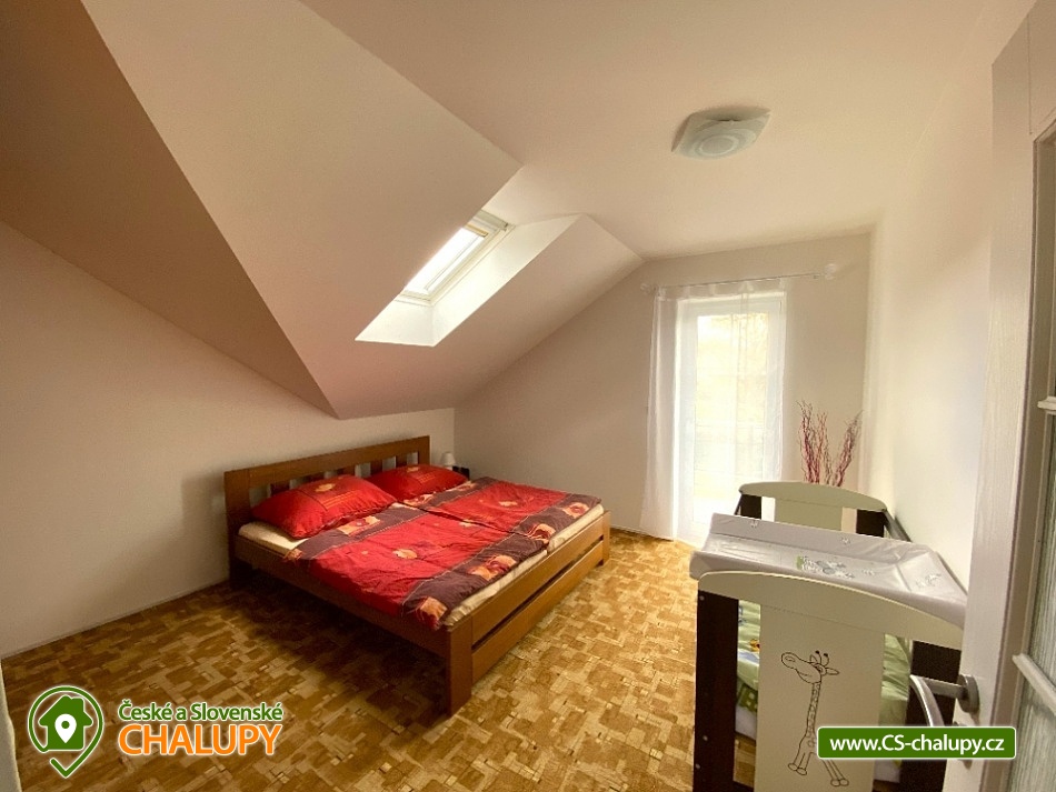 Rodinná chalupa s polohou mezi CHKO Třeboňsko a CHKO Blanský les. Kapacita chalupy je až 7 osob ve 3 ložnicích. POPIS: 1. Pokoj - manželská postel, dětská postýlka, velká vestavěná skříň, balkon. 2. Pokoj - dvě jednolůžkové postele, válenda, komoda, balkon. 3. Pokoj - dvě jednolůžkové postele, komoda, stoleček s křesílkem, balkon. Kuchyně je plně vybavena - lednice, myčka nádobí (včetně tablet), vestavěná horkovzdušná trouba, sklokeramická deska, rychlovarná konvice, mikrovlnná trouba, topinkovač, sendvičovač, ponorný mixér. Vedle kuchyně je spižírna na potraviny. Z jídelny je umožněn vstup na terasu s posezením. Koupelna je vybavena rohovou vanou, sprchovým koutem, WC, bidetem a dvoj umyvadlem. Klienti mají zdarma k dispozici: osušky, ručníky, povlečení, fén na vlasy, sušák na prádlo, žehlička, žehlicí prkno, TV, WIFI, DVD + filmy a knihy. Chalupa má k dispozici garáž na auto a uzamykatelnou místnost na uložení např. jízdních kol, atd. Na zahradě se nachází terasa, kde je připraveno venkovní sezení se slunečníkem a venkovním grilem včetně grilovacího uhlí. Pro děti: kompletně vybavená dětská postýlka, přebalovací podložka, nočník, jídelní židlička, na zahradě trampolína a houpačky. Ve vesničce Hůry naleznete místní hospůdku, dětské hřiště, obchod s potravinami a v sezóně na návsi je stánek se zmrzlinou. Nejbližší restaurace se nachází cca 600 m od ubytování. V okolí možno navštívit České Budějovice - náměstí Přemysla Otakara II., Samsonova kašna, Černá věž a další místa, která stojí za vidění. Město Rudolfov (2km)- je to bývalé hornické městečko v jehož okolí jsou viditelné pozůstatky těžby stříbra. Rybník Mrhal - vyrazíme-li z městečka Rudolfov po naučné stezce hornického města dojdeme po cca 3 kilometrech k rybníku Mrhal-jedné ze zastávek stezky. Pro svou kvalitu vody, která je jedna z nejlepších v jižních Čechách a láká jak ke koupání, tak i rybolovu.