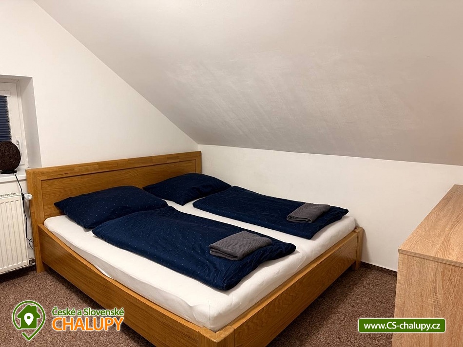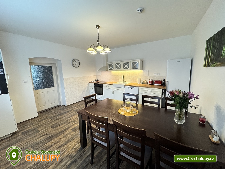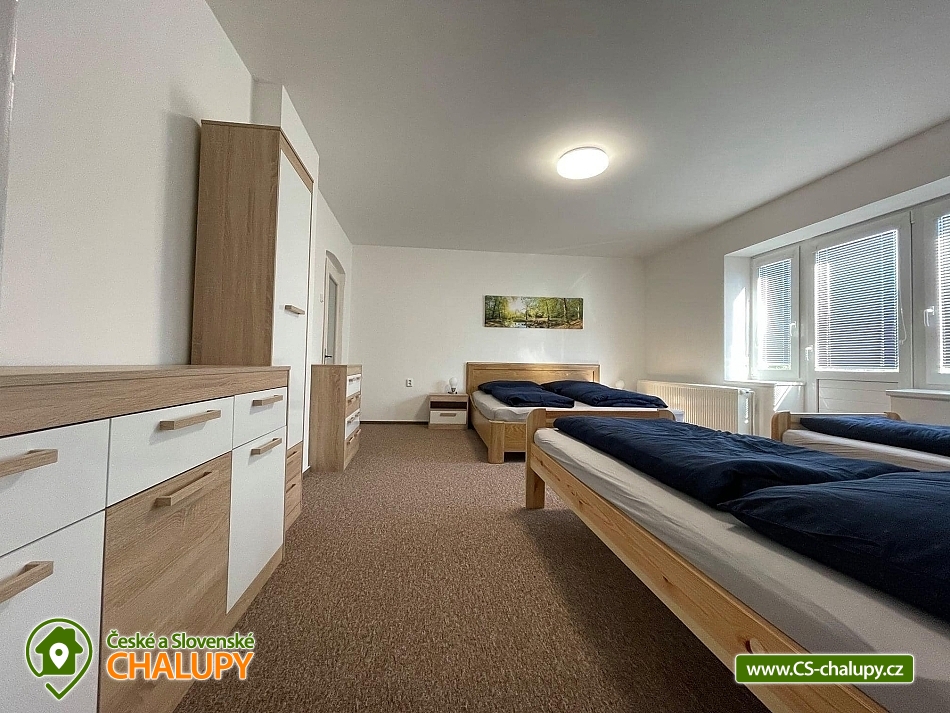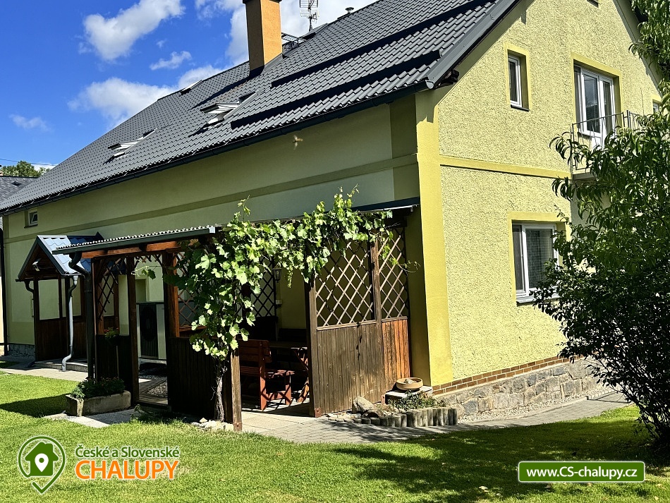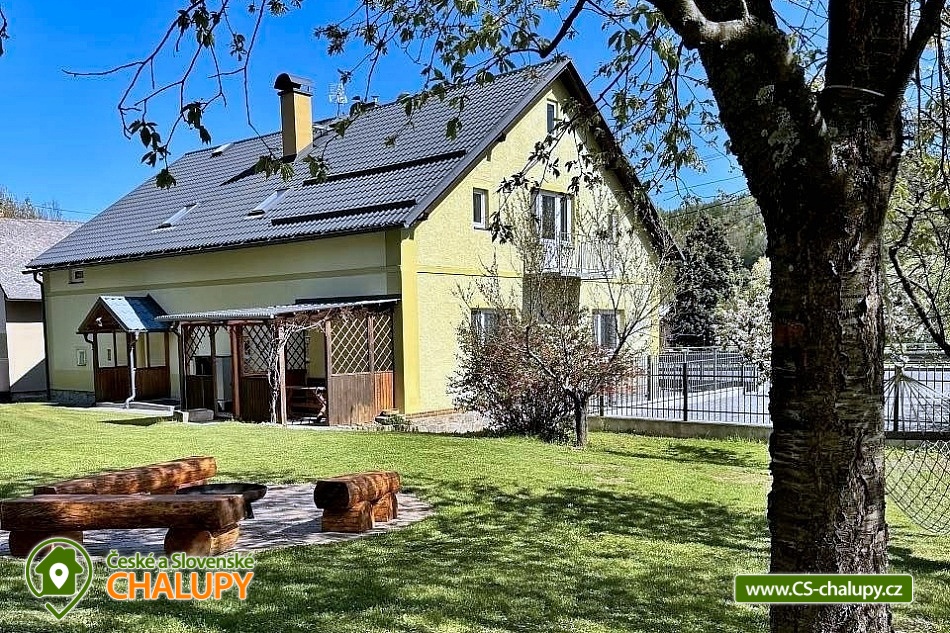 Rodinná chalupa Rychlebské hory s velkou zahradou je ideálním výchozím bodem jak pro výlety do Rychlebských hor, tak do Jeseníků. V obci a blízkém okolí je několik krásných zatopených lomů vhodných ke koupání. Z místa ubytování vede přes kopec lesní cesta k unikátním cyklistickým Rychlebským stezkám. Chalupa k pronájmu poskytuje ubytování pro až 16 osob v 6 ložnicích. Objekt je členěn do dvou pater, kdy v každém patře je kromě pokojů i prostorná plně vybavená kuchyň a koupelna. Objekt je svou velikostí vhodný pro 3 rodiny s dětmi. K domu náleží velká udržovaná oplocená zahrada s venkovními hračkami. V domě je dispozici dětský hrací koutek a je možnost využití dvou dětských jídelních židliček. Ložnice: 4x Dvoulůžkový pokoj a 2x Čtyřlůžkový pokoj. Společné prostory: 3x Kuchyň (kávovar, elektrický sporák, elektrická trouba, mikrovlnná trouba, lednička, topinkovač, jídelní sezení, myčka nádobí, mraznička), 2x Obývací místnost (televize, gauč), 2x Koupelna s toaletou (umyvadlo, sprcha, toaleta), Koupelna bez toalety (sprcha, umyvadlo) a 2x Samostatná toaleta. Další vybavení chalupy: Lyžárna / kolárna / pískoviště / houpačky / skluzavka. Venkovní zastřešené posezení s krbem a udírnou. Výčepní zařízení k dispozici. Prostorná a výškově členitá ovocná zahrada nabízí možnosti her jako badminton, míčové hry apod. nebo v zimě možno sáňkovat, bobovat, menší děti mohou zkoušet první lyžařské krůčky nebo jízdu na kole. Objekt je oplocen. Parkování u objektu je opatřeno elektrickou bránou. Parkování pro 4x osobní automobil nebo 3x MPV/SUV, případně další potřeby je možnost parkování i na travnaté ploše za objektem. V okolí je možno navštívit Jeskyně na Pomezí a na Špičáku, Tančírnu v Račím údolí, Zámek Jánský Vrch, Venušiny misky v Černé Vodě, Boží horu v Žulové a další. Druhým směrem od Vápenné se nachází turistické zajímavosti Lesní bar a Faunapark v Lipové lázních, Priessnitzovy léčebné lázně, Zlatý Chlum v Jeseníku, horské vrcholy Paprsek, Šerák a další. Těšíme se na Vás u nás.