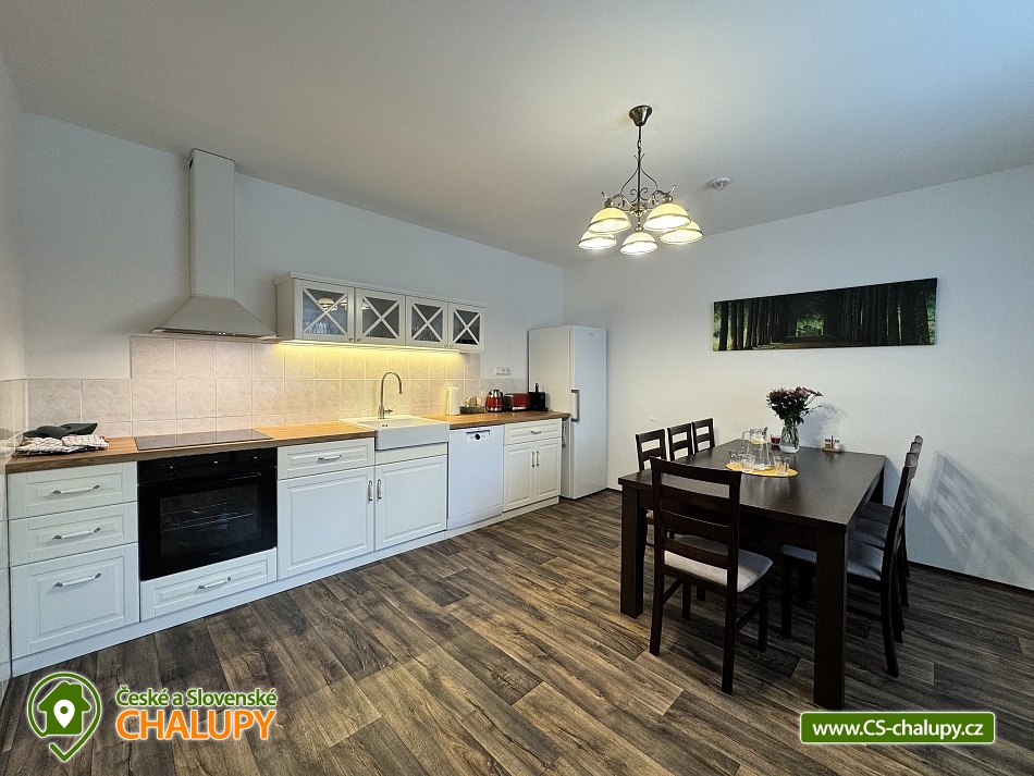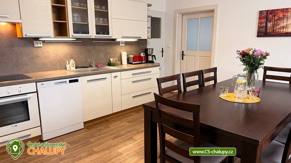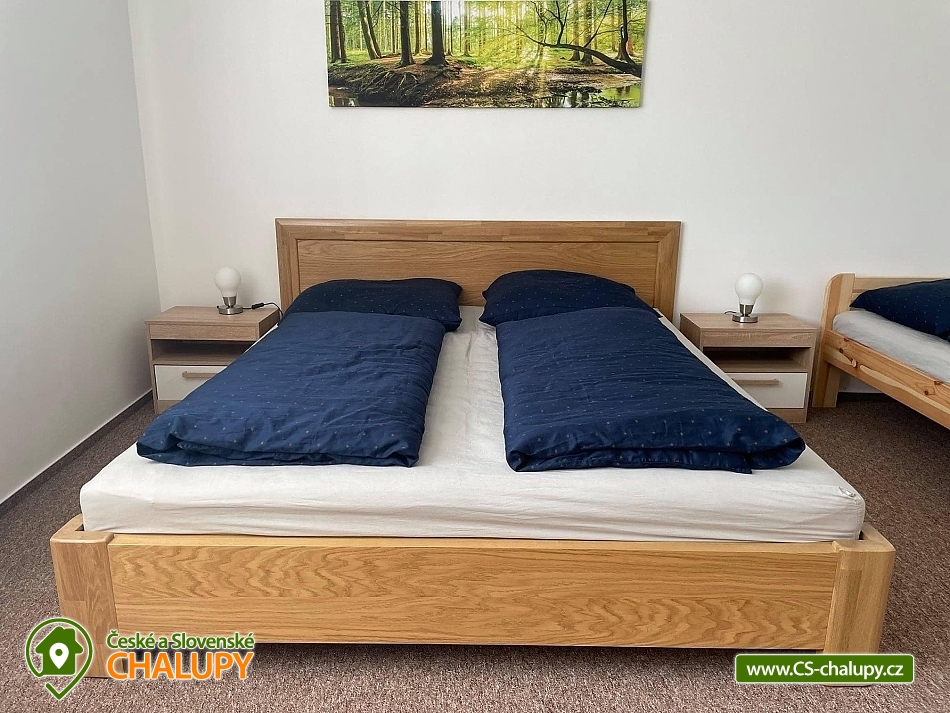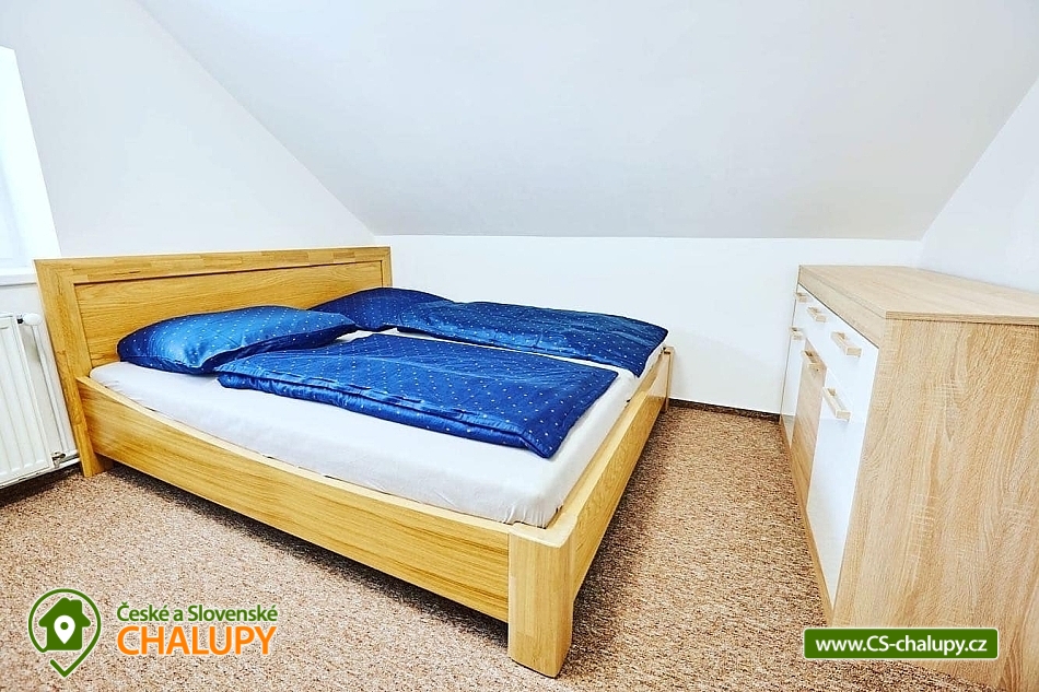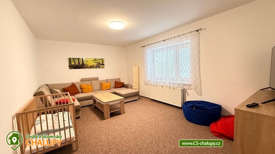 Rodinná chalupa Rychlebské hory s velkou zahradou je ideálním výchozím bodem jak pro výlety do Rychlebských hor, tak do Jeseníků. V obci a blízkém okolí je několik krásných zatopených lomů vhodných ke koupání. Z místa ubytování vede přes kopec lesní cesta k unikátním cyklistickým Rychlebským stezkám. Chalupa k pronájmu poskytuje ubytování pro až 16 osob v 6 ložnicích. Objekt je členěn do dvou pater, kdy v každém patře je kromě pokojů i prostorná plně vybavená kuchyň a koupelna. Objekt je svou velikostí vhodný pro 3 rodiny s dětmi. K domu náleží velká udržovaná oplocená zahrada s venkovními hračkami. V domě je dispozici dětský hrací koutek a je možnost využití dvou dětských jídelních židliček. Ložnice: 4x Dvoulůžkový pokoj a 2x Čtyřlůžkový pokoj. Společné prostory: 3x Kuchyň (kávovar, elektrický sporák, elektrická trouba, mikrovlnná trouba, lednička, topinkovač, jídelní sezení, myčka nádobí, mraznička), 2x Obývací místnost (televize, gauč), 2x Koupelna s toaletou (umyvadlo, sprcha, toaleta), Koupelna bez toalety (sprcha, umyvadlo) a 2x Samostatná toaleta. Další vybavení chalupy: Lyžárna / kolárna / pískoviště / houpačky / skluzavka. Venkovní zastřešené posezení s krbem a udírnou. Výčepní zařízení k dispozici. Prostorná a výškově členitá ovocná zahrada nabízí možnosti her jako badminton, míčové hry apod. nebo v zimě možno sáňkovat, bobovat, menší děti mohou zkoušet první lyžařské krůčky nebo jízdu na kole. Objekt je oplocen. Parkování u objektu je opatřeno elektrickou bránou. Parkování pro 4x osobní automobil nebo 3x MPV/SUV, případně další potřeby je možnost parkování i na travnaté ploše za objektem. V okolí je možno navštívit Jeskyně na Pomezí a na Špičáku, Tančírnu v Račím údolí, Zámek Jánský Vrch, Venušiny misky v Černé Vodě, Boží horu v Žulové a další. Druhým směrem od Vápenné se nachází turistické zajímavosti Lesní bar a Faunapark v Lipové lázních, Priessnitzovy léčebné lázně, Zlatý Chlum v Jeseníku, horské vrcholy Paprsek, Šerák a další. Těšíme se na Vás u nás.