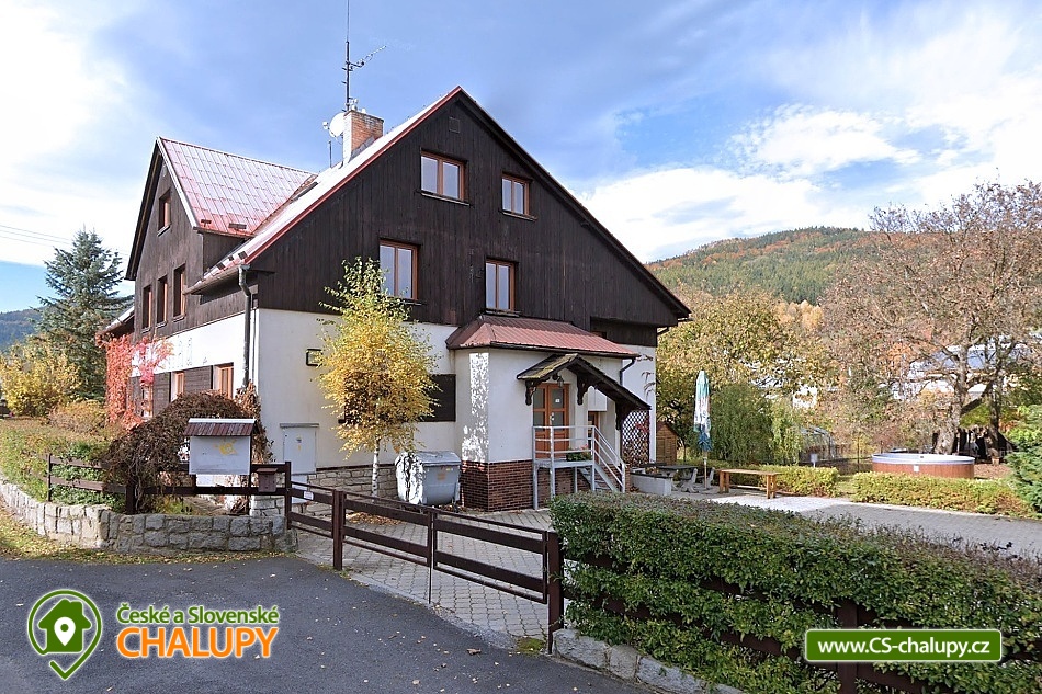 Rodinná chalupa s letním bazénem a zahradou nedaleko Fauna parku v Jeseníkách. Chalupa se pronajímá v celku jedné skupině osob v soukromí a nabízí ubytování v rodinné atmosféře ve 2 až 5 lůžkových pokojích s vlastním sociálním zařízením. Pro nejmenší klienty máme k zapůjčení dětské postýlky a židličky. V chalupě je kompletně vybavená kuchyně se čtyřmi varnými plotýnkami, překapávačem kávy, jednou velkou lednicí, jednou ledničkou s mrazákem, varnou konvicí a mikrovlnnou troubou. Dále velká společenská místnost s TV, stolním fotbálkem, kulečníkem, dětským koutkem. K dispozici je vybavený bar s výčepním zařízením a s možností přivezení vlastních sudů. Parkování je možné přímo u objektu, boční příjezdová cesta k objektu je dobře udržovaná po celý rok. K chalupě patří oplocená zahrada s parkovištěm, ohništěm s pergolou a venkovním bazénem. Klienti mohou za poplatek využít volnočasových aktivit hotelu ležícího hned vedle (relaxační centrum s masážemi a finskou saunou, wellness zóna s bylinkovou saunou, whirlpool, odpočinkovou zónou, společenská místnost s ping pongem, víceúčelové hřiště s umělým povrchem a osvětlením, minigolfové hřiště, dětské hřiště a pískoviště). Dále mohou využít za poplatek služeb hotelu vzdáleném 1200 m, který nabízí možnost využití rozsáhlého wellness centra. Možnost pořádání firemních akcí a rodinných oslav. Okolí je protkané cyklostezkami, turistickými a běžeckými trasami. Přímo v Lipové lázních se nacházejí dva lyžařské areály, další se nacházejí v obci Ramzová, Petříkov, Ostružná. Faunapark je co by kamenem dohodil a turisticky velmi vyhledávaný Lesní bar se nachází v Horní Lipové. Nejbližší venkovní koupaliště je v Jeseníku, tam je také kino, divadlo a nákupní centra. Adrenalin Park v České Vsi určitě stojí za návštěvu. Těšíme se na Vás u nás.