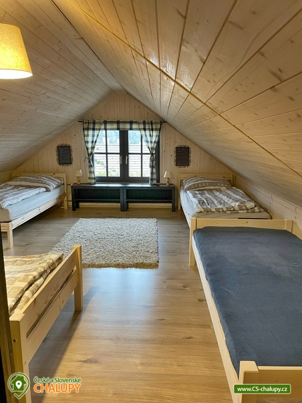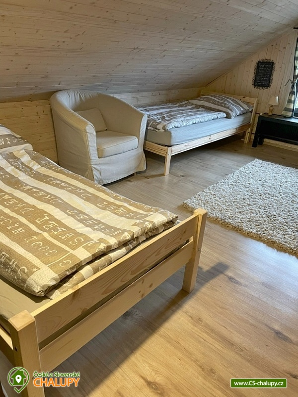 Rodinná chalupa s wellness (finská sauna a koupací sud) u Lipenské přehrady - jižní Čechy. Chalupa je součástí bývalého statku, v jehož druhé části přes dvorek sousedí s domem majitelky. Jsme tedy pro hosty vždy k dispozici, pokud s něčím potřebují pomoc, rádi připravíme saunu, horký sud, poskytneme dříví ke grilu nebo jinak podpoříme dovolenkovou pohodu hostů, případně poradíme, kam na výlet. Pokud hledáte ubytování na Lipně, ale také máte rádi klid, je pro Vás pobyt v chaloupce ideální variantou v zimě i v létě. Lipno, které je nadosah, totiž nabízí celou řadu aktivit pro rodiny s dětmi, pro turisty i jiné sportovce ve všech ročních obdobích. Ale současně taky skýtá úžasný klid polosamoty a nádhernou přírodu. Stylová chalupa poskytuje ubytování pro až 7 osob, celkem je k dispozici 6 pevných lůžek ve dvou ložnicích a 1 přistýlka. Ložnice jsou umístěné v podkroví. K dispozici je jedna dvoulůžková ložnice s 1x manželskou postelí a jedna čtyřlůžková ložnice s 4x jednolůžky. Povlečení a ručníky jsou připravené k zapůjčení. V přízemí lze společné chvíle trávit v obývacím pokoji s rozkládací sedací soupravou, TV, jídelním stolem a plně vybavenou kuchyňkou (lednička, indukční vařič dvouplotýnkový, mikrovlnná trouba, topinkovač, varná konvice a nádobí). Sociální zařízení zahrnuje jednu přízemní koupelnu s vanou a WC. V celém objektu je k dispozici WIFI připojení na internet. Na útulné zahradě je připraveno posezení pro 6 osob se zahradním grilem. Odpočívat lze v horkém sudu s jacuzzi nebo ve finské sauně s odpočívárnou. Pro volné chvíle je k dispozici stolní tenis a badminton. Malí návštěvníci se mohou těšit na skluzavku, houpačku a pískoviště. K dispozici je také zahradní domek pro úschovu kol a lyží. Parkovat lze přímo u objektu. V okolí chalupy možnost turistiky, cykloturistiky, koupání, rybaření, houbaření, in -line bruslení, windsurfing, kiteboarding, lyžování a běžkování. U Lipenské přehrady jsou krásné písčité i oblázkové pláže s možností zapůjčení šlapadel, paddleboardů či motorových člunů a také půjčovna kol, elektrokol, dětských kol i koloběžek. Volně přístupné je i hřiště s posilovacími stroji pro dospělé, pingpongové stoly či beach volejbalové hřiště a dětská hřiště. Mezi další možnosti koupání patří např.: aquapark Lipno, aquapark Frymburk, koupaliště Větřní , atd. V zimním období blízká lyžařská střediska: Lipno - Kramolín, Frymburk a Sternstein. K výletům v okolí Lipna láká Marína - přístaviště plachetnic a jachet, Hopsarium, Motýlí dům a botanická zahrada, Stezka korunami stromů s výhledem na celé Lipno, Království lesa, Adventure parky a Lanový park Lipno. Za návštěvu stojí také turisticky oblíbené město Český Krumlov. Těšíme se na Vás u nás.