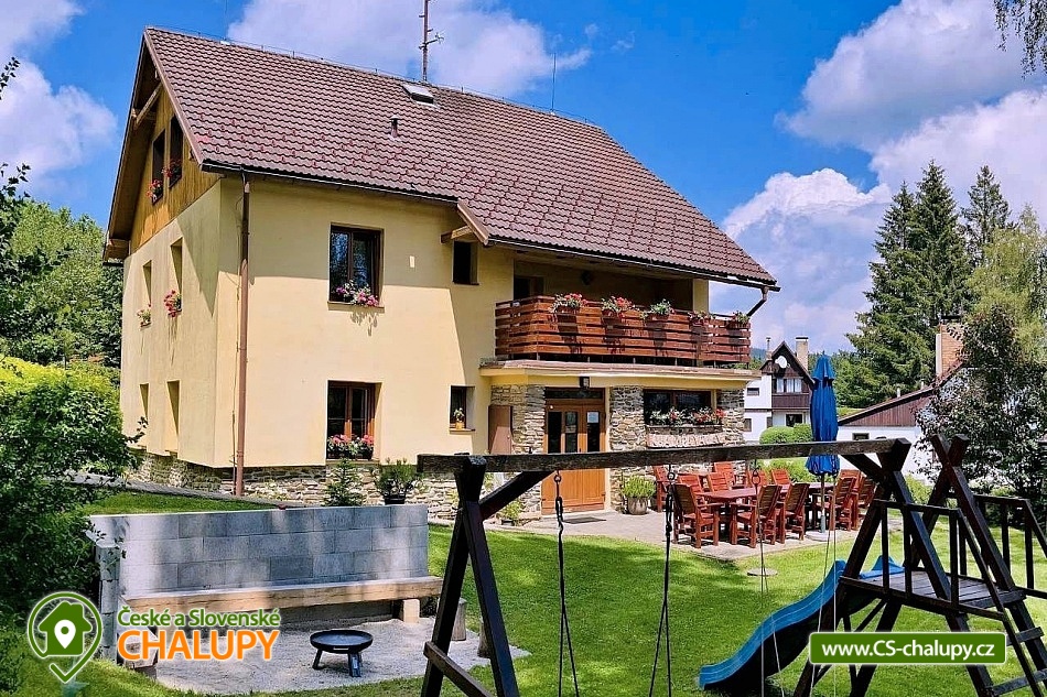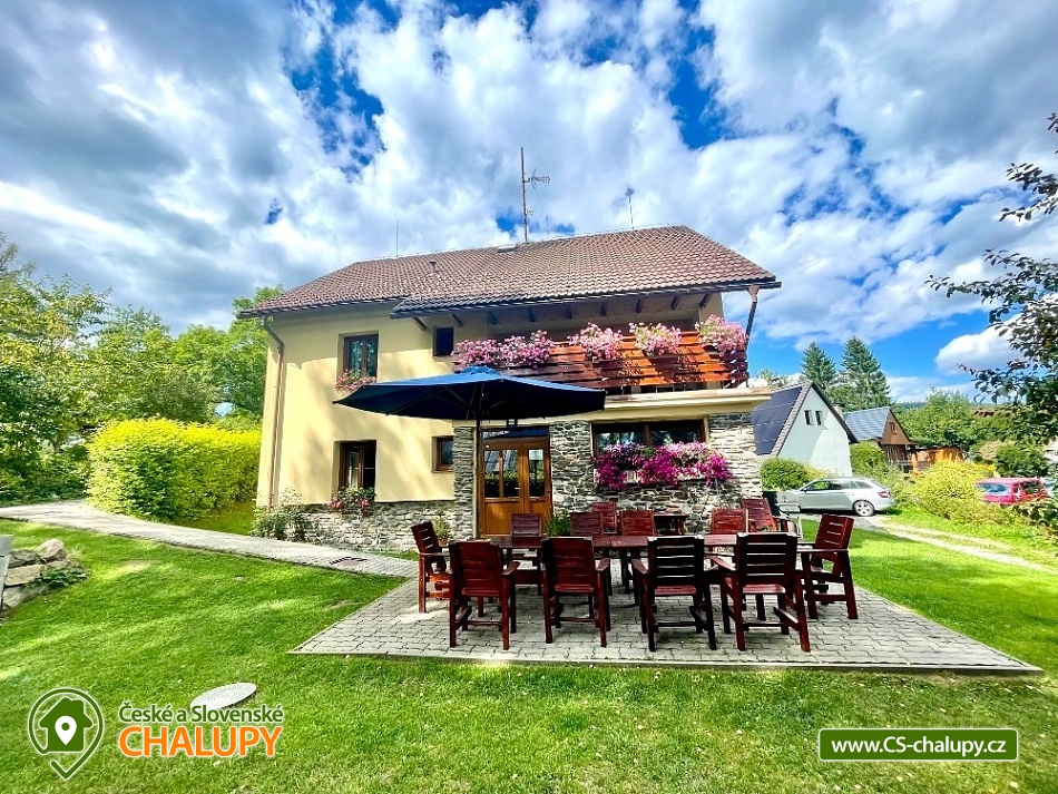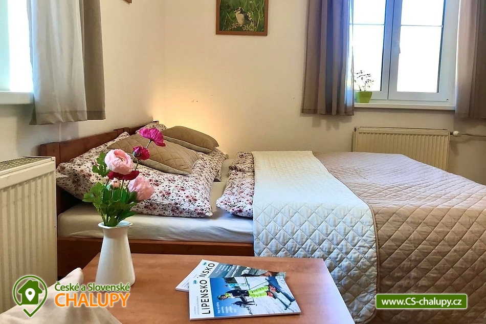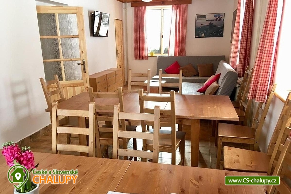 Rodinná chalupa u Lipenské přehrady nedaleko areálu Kramolín, jižní Čechy. Objekt je blízko všech atraktivních a turisty vyhledávaných míst na Lipně jako je areál Lipno, Stezka korunami stromů, Království lesa, bobová dráha, Marina Lipno, lanové centrum a další. Chalupa se nachází 500 m od pláží Lipenské přehrady. Mimo ubytování nabízíme lekce veslování pro začátečníky i pokročilé na kvalitní a stabilní lodi, máme také k dispozici mořské kajaky a pramičku. K dispozici u chalupy je zahrada, terasa, gril, ohniště a prolézačka pro dětičky. Chalupa k pronájmu poskytuje ubytování pro až 19 osob v 5 ložnicích. K dispozici celkem 5 samostatných pokojů: 4x pokoj se 4 lůžky, 1x pokoj se 2 lůžky a 1x přistýlka. V přízemí domu je k dispozici společenská místnost, společná kuchyně, jídelna a kolárna/lyžárna pro úschovu sportovních potřeb. Některé pokoje mají vlastní snídaňovou kuchyňku. V patře se nachází velká terasa s posezením a s výhledem na vodní nádrž Lipno. Kuchyně je kromě nádobí vybavena základními spotřebiči - el. sporák, velká lednice, myčka nádobí, kávovar na espresso, mikrovlnka, rychlovarné konvice, toustovač. Sociální zařízení: Každý pokoj má vlastní soc. zařízení, sprchový kout a předsíň. Další soc. zařízení je u společenské místnosti. V objektu je připojení Wi - Fi zdarma. Vytápění centrální, v topné sezóně hosté mají možnost si teplotu na pokojích regulovat individuálně. Parkovací stání pro 5 aut přímo u chalupy. Lipensko nabízí širokou škálu vyžití v letní i zimní sezóně. Lyžařský areál Kramolín je od chalupy vzdálen pouze 1,5 km. Cyklostezka je vzdálena pouze 5 min. chůze, vodní nádrž Lipno 7 min. chůze. V případě zájmu zajistíme půjčení sportovního materiálu především pro vodní sporty, např. paddleboard, veslařskou sportovní loď včetně instruktora, kajaky, pramici. Objevte krásy šumavské přírody a Lipenska. Rádi poradíme s naplánováním výletů a cyklistických tras po okolí. U nás se určitě nudit nebudete! Těšíme se na vás na Lipně!