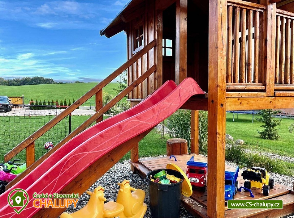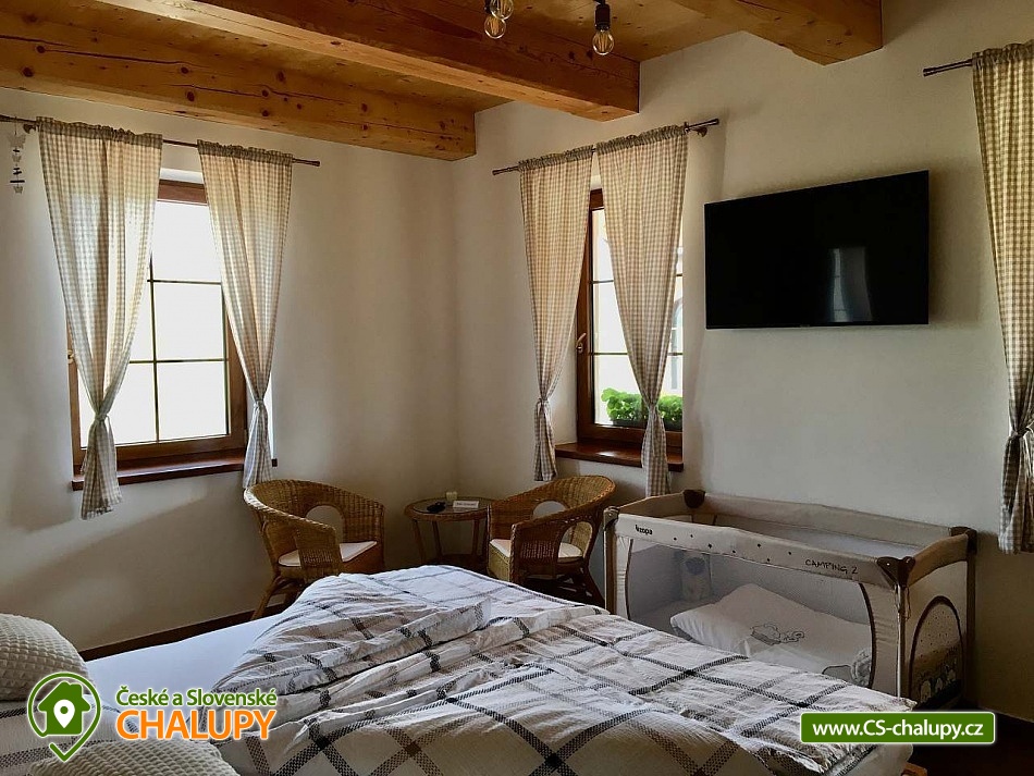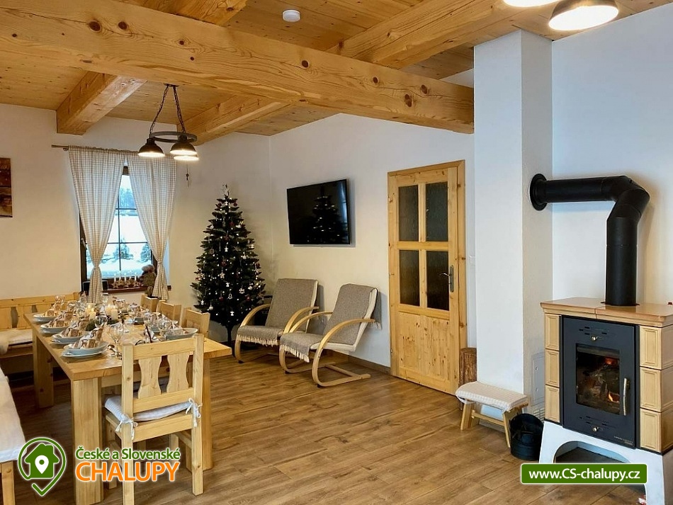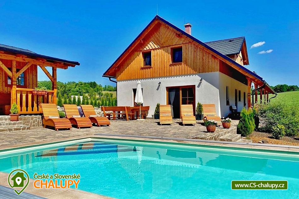 Rodinná chalupa se saunou a vyhřívaným bazénem u Dolní Moravy, obec Králíky. Chalupa se nachází v klidné části s hezkými výhledy na okolí a přitom jen 1 km od centra. Svým vybavením je vhodná zejména pro rodiny s dětmi, ale i partu přátel. V objektu se nachází 3 apartmány, tedy 6 ložnic s 12 lůžky. Každý apartmán má své sociální zařízení. V přízemí objektu se nachází společenská místnost s kuchyňskou linkou, infrasauna se sprchovým koutem, komora na uschování potravin a apartmán se dvěma ložnicemi a vlastním sociálním zařízením. V patře jsou dva apartmány, každý apartmán má dvě samostatné ložnice a vlastní sociální zařízení, dětský koutek. Ve společenské místnosti se nachází lavice k posezení pro 12 osob, dětská stolička, televizor, reproduktor (Partybox), krbová kamna a součástí je plně vybavená kuchyň. V každém apartmá se nachází televizor a ratanové sezení. Dětský koutek se stolním fotbálkem. Terasa s venkovním posezením. Infrasauna se sprchovým koutem. Komora pro uschování potravin. Vysoušeče obuvi pro 12 párů bot a lyžáků. V každé koupelně je vysoušeč vlasů. K dispozici přenosná postýlka. V ceně jsou zahrnuty ručníky + ložní prádlo. Objekt je vytápěn elektrokotlem a krbovými kamny (dříví do kamen je zahrnuto v ceně ubytování). V přízemí objektu je podlahové vytápění. Ve všech koupelnách je umístěn žebřinový radiátor. V každém apartmánu je koupelna s WC, sprchovým koutem, umyvadlem, zrcadlem, ručníky a topným žebříkem. U objektu je parkoviště pro 5 vozidel po udržované silnici. Pobyty jsou vhodné pro turistiku, cykloturistiku, sjezdové a běžecké lyžovaní. Zimní sporty: Ski areál Dolní Morava, Ski areál Buková Hora, Šanov, Čenkovice. Pohraniční opevnění: tvrz Hůrka, vojenské muzem Králíky. Památky: Poutní areál Hora Matky Boží v Dolní Hedeči. Koupání: Pastvinská přehrada, koupaliště Králíky, termální koupaliště Velké Losiny.