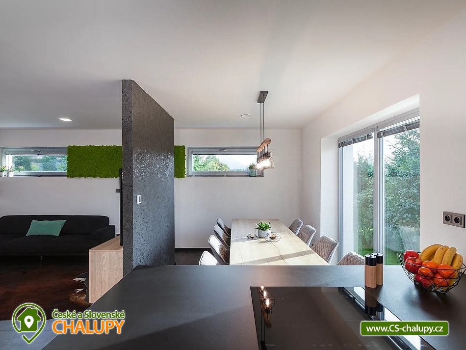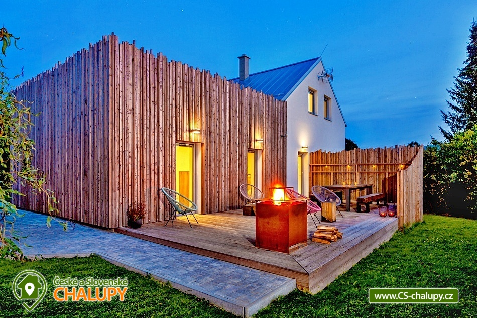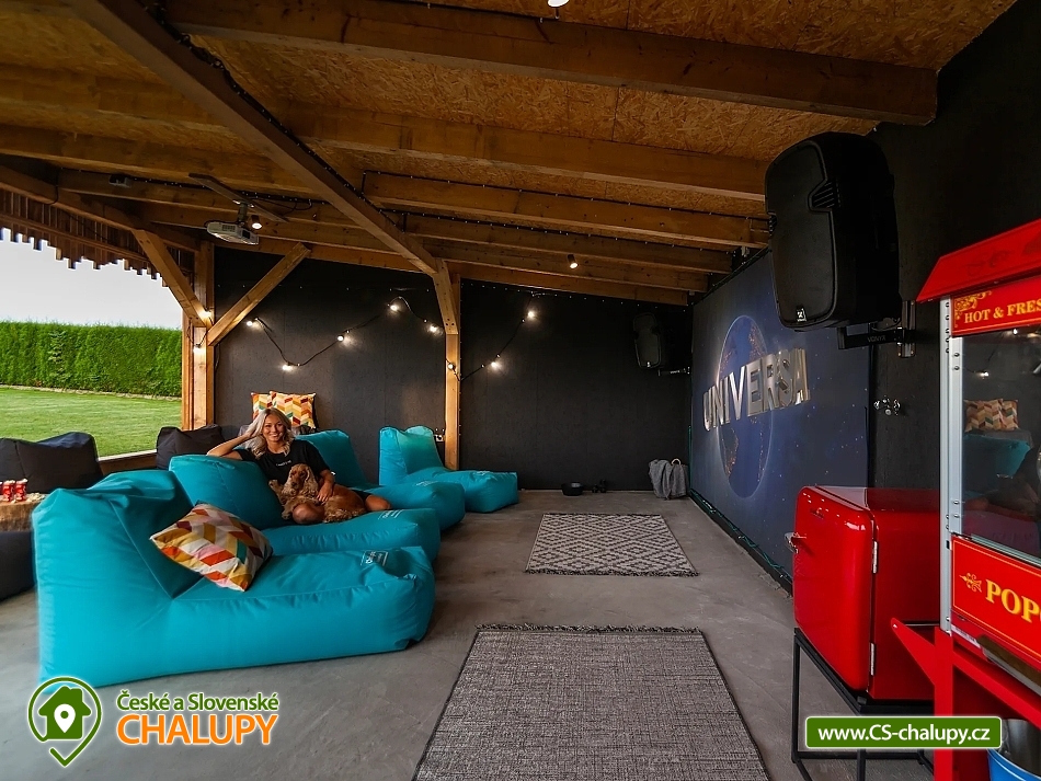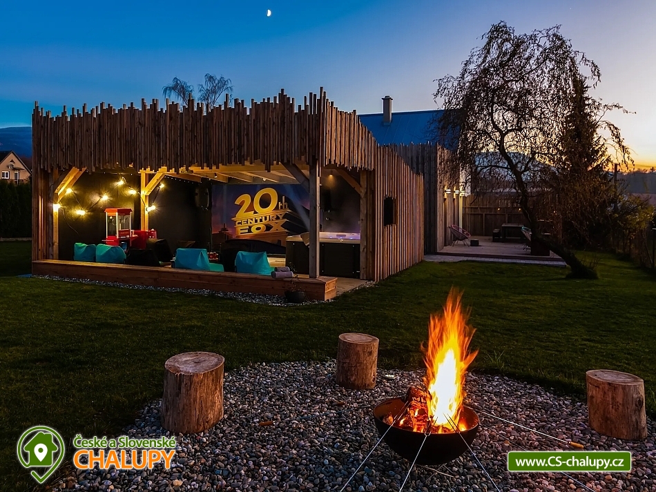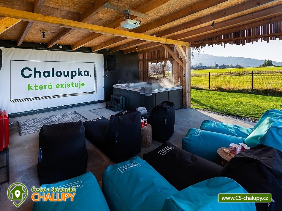 Rodinná chata v Beskydech pod Lysou Horou - domácí kino a vířivka - Přijměte naše pozvání do Zážitkové chaty, kde si odpočinete ve vířivce s výhledem na kvalitní venkovní kino, které vám zajistí nezapomenutelný filmový zážitek. Nedaleko vrcholku Lysé hory, nejvyšší hory Beskyd, najdete naší chatu k pronajmutí - Neočekávejte však klasickou horskou chatu, ale svěží moderní design, s prostornou venkovní terasou a zastřešeným venkovním kinem s posezením. Chata je ideální pro menší skupinky do 10 osob. Vezměte tedy partu kamarádů, nebo celou rodinu a užijte si nezapomenutelný pobyt. Po příjezdu budete mít celou chatu pro sebe, stejně jako velkou jídelnu s výhledem do přírody a kuchyň s terasou, na které si můžete pochutnat na svých kulinářských výtvorech. Pokud byste si chtěli užít dovolenou bez starostí, můžete se dohodnout s majiteli na nákupu surovin, abyste měli po příjezdu plnou lednici. Pro gurmány nebo skupiny si můžete objednat catering, využít vinotéku výběrových moravských vín, nebo si užít vodní dýmku. Po celou dobu je k dispozici zastřešené venkovní kino s posezením, které si můžete užívat i za deštivých dnů. Chata má k dispozici čtyři ložnice včetně dětské postýlky a dvě koupelny. Pohodlně se tak ubytuje skupina 8-10 lidí. Celá chalta je vybavena podlahovým vytápěním, které jistě oceníte především v chladnějších dnech. Navíc pro své potřeby můžete využít pračku a sušičku, a to se někdy hodí. Středobodem chaty je obývací prostor s krbem a velkou televizí. O domácí pohodu je tedy postaráno. Chata má skvělou polohu, v Beskydech pod Lysou Horou. Můžete tak strávit relaxační pobyt na chatě, vydat za turistikou, nebo na výlet na kolech. Pokud byste měli zájem o opravdu nevšední zážitek, majitelé vám mohou objednat vyhlídkový let nad Beskydy. V zimě se můžete vydat jak na sjezdovky, tak na běžky a prozkoumat místní lyžařské tratě. A co je nejlepší, můžete si vychutnat relax v nové vířivce až pro 5 osob. Těšíme se na Vás u nás.