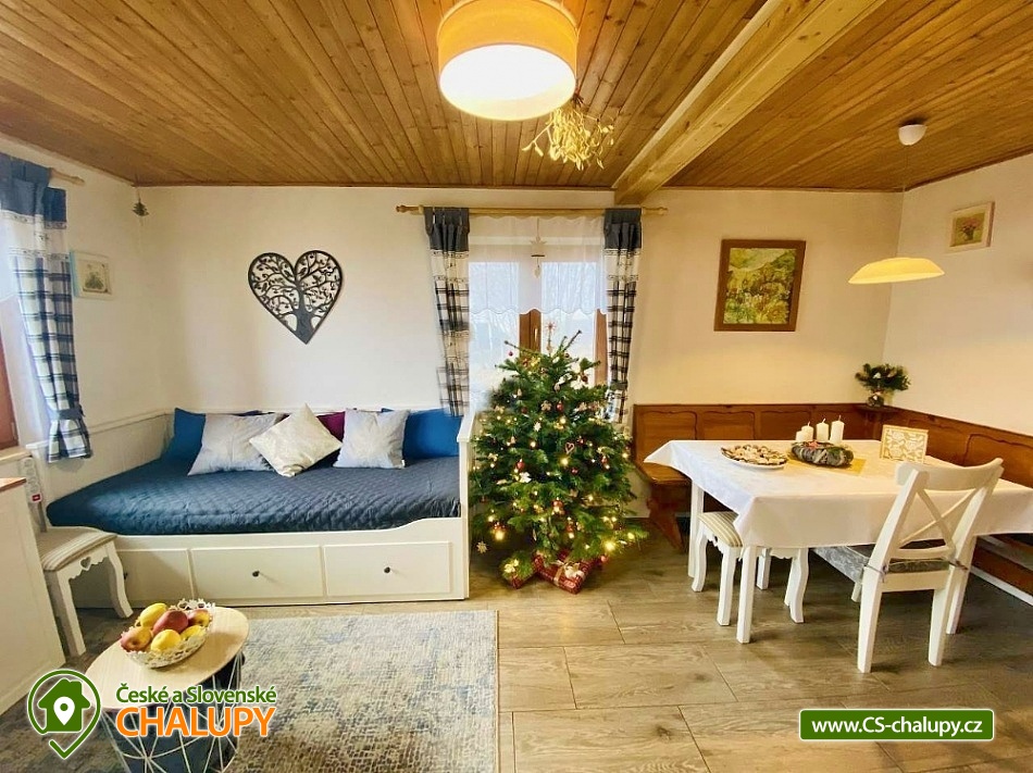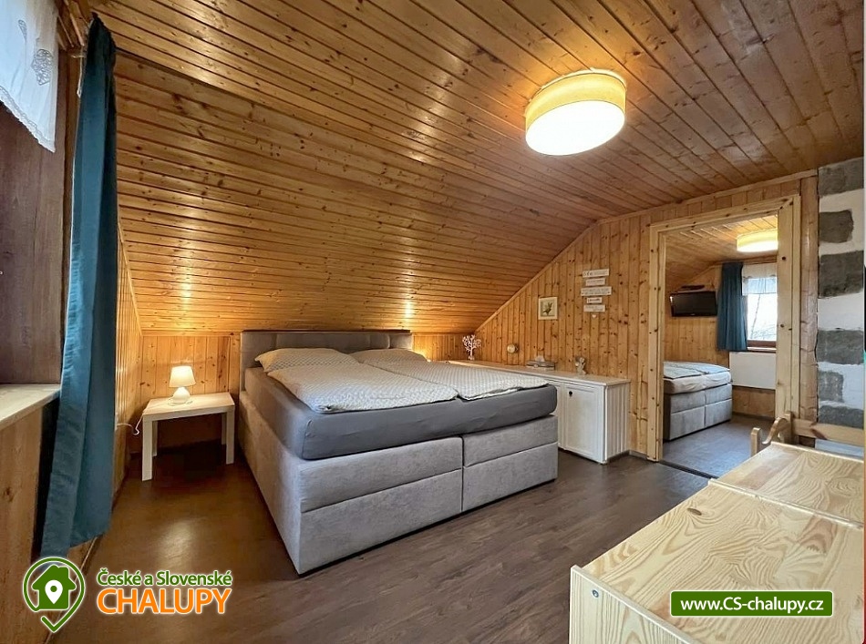 Rodinná chata s venkovní saunou se nachází na polosamotě u lesa v srdci krásné přírody Krušných hor, poloha nedaleko obce Boží Dar a areálu Klínovec. Pokud hledáte klid, pohodu a ideální výchozí bod pro výlety, jste na správném místě. V sousedství chaty stojí pouze 1 dům s celoročním obýváním a ohradou s koňmi – děti i dospělí tak mají příjemné zpestření hned za plotem. Chata nabízí pohodlné ubytování pro až 7 osob: 2 třílůžkové ložnice v patře (v každé manželská postel 180×200 cm a menší jednolůžko 180 cm). Rozkládací pohovka (160×200 cm) ve společenské místnosti – vhodná jako přistýlka pro 1–2 osoby po dohodě. TV ve společenské místnosti i v jedné z ložnic. Wi-Fi připojení zdarma v celém objektu. Do chaty vstupujete přes prosklenou zimní zahradu s pohodlným posezením a výhledem do hor – ideální na ranní kávu nebo večerní odpočinek. V přízemí se nachází: Společenská místnost s krbem, jídelním koutem a TV. Plně vybavená kuchyň: sklokeramická varná deska, horkovzdušná i mikrovlnná trouba, myčka nádobí, varná konvice, toustovač, tyčový mixér, 2 lednice s mrazákem, kávovar, vinotéka a veškeré nádobí. Koupelna se sprchovým koutem a toaletou. Vytápění je zajištěno krbem na dřevo a elektrickými infrapanely. Zázemí pro aktivní i pohodový pobyt - V suterénu chaty je prostorná garáž pro úschovu kol, lyží a sportovního vybavení. K dispozici je elektrický vysoušeč obuvi, kompresor a základní nářadí. Venku na vás čeká zastřešený altánek s grilem a ohništěm, sudová venkovní sauna, pískoviště pro děti a dostatek místa k odpočinku. Parkování je možné přímo u chaty. Zima v horách - Nejbližší lyžařský areál Náprava je vzdálen pouhých 400 m. Do areálů Klínovec a Plešivec dojedete za 15 minut. Přímo nad chatou začínají značené běžecké tratě, které se napojují na Krušnohorskou magistrálu a okruhy okolo Božího Daru. Na Božím Daru (10 minut autem) najdete půjčovny sportovního vybavení a další zimní aktivity. Po sportu si můžete dopřát relax ve wellness centru Agricola v Jáchymově (5 minut autem) nebo navštívit větší aquaparky v Karlových Varech (30 minut) či Chomutově (45 minut). Letní sezóna a volný čas V létě okolí nabízí: Skvělé podmínky pro turistiku, cyklistiku, houbaření i rybaření. Vyhlášený trailpark na Klínovci s tratěmi pro horská kola všech úrovní. Přírodní koupání: Děpoltovický rybník, lom Podlesí, lom Jimlíkov, vodní nádrž Lesík, koupaliště Horní Blatná a další. Výlety za historií: Muzeum Královská mincovna Jáchymov, štoly Jáchymov, Šlikovský hrad, Zámek Velichov, Hrad Loket, Karlovy Vary. Těšíme se na vaši návštěvu a věříme, že u nás načerpáte klid, energii i zážitky, na které budete rádi vzpomínat.