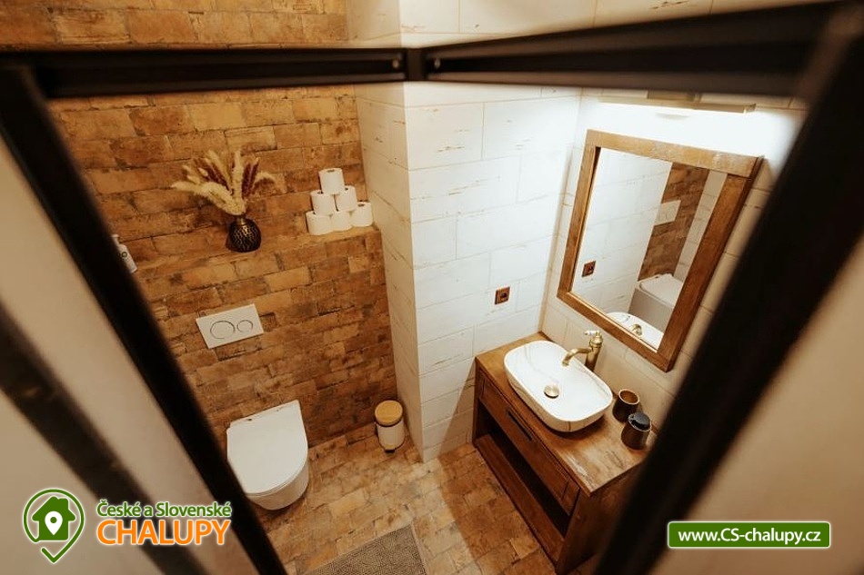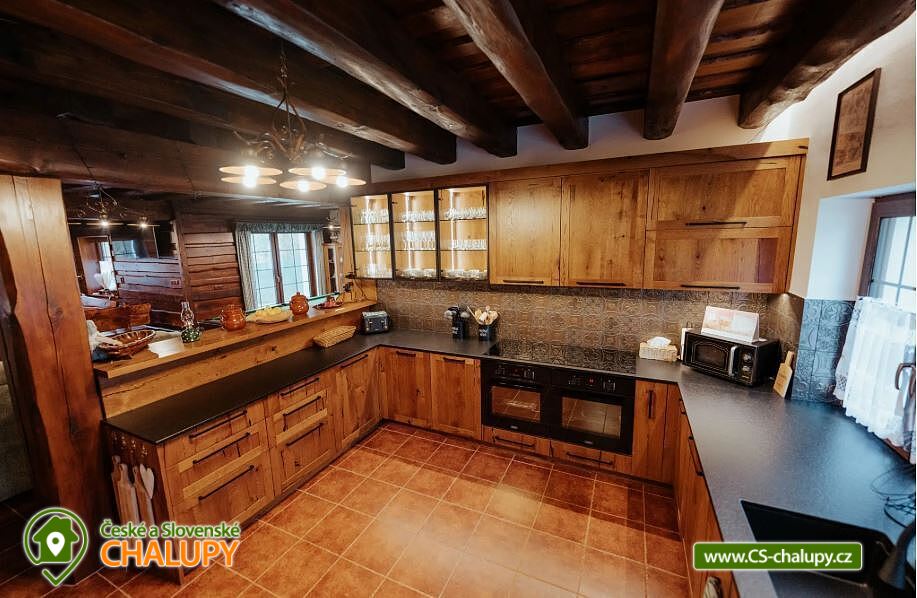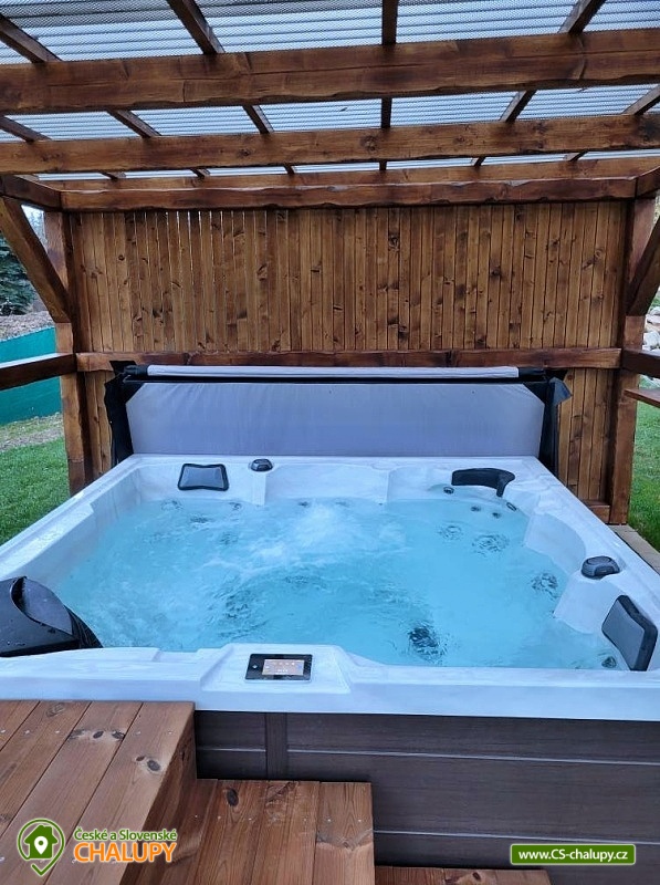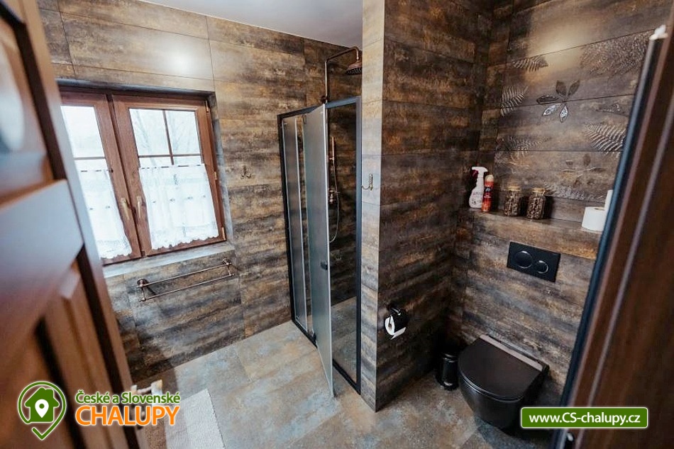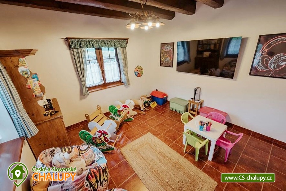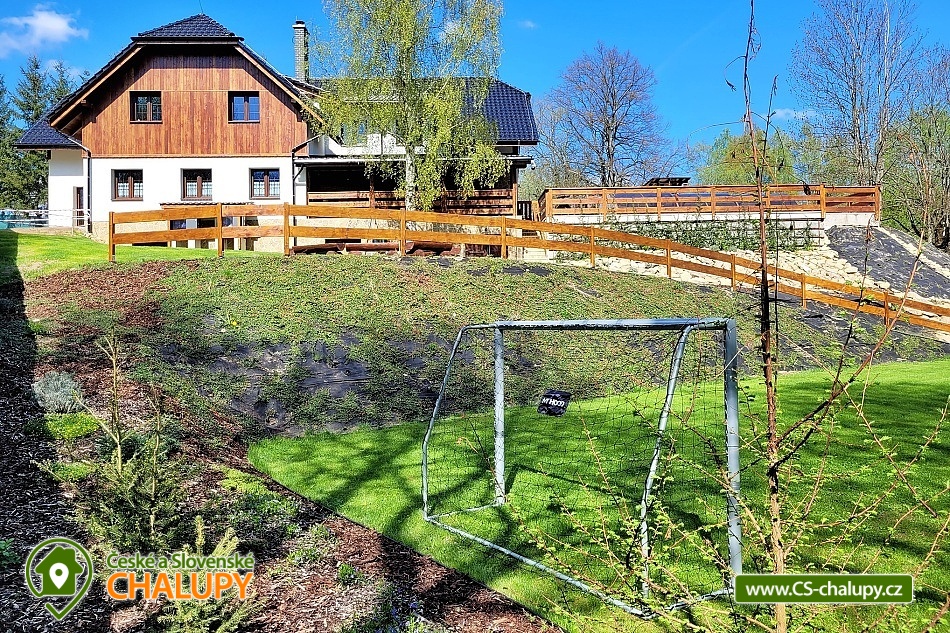 Rodinná wellness chalupa s bazénem se nachází v obci Červený Potok u města Králíky, nedaleko střediska Dolní Morava s adrenalinovými atrakcemi jako je bobová dráha, Dětský park Amálka, Mamutí horská dráha a Stezka v oblacích. V blízkém okolí potěší spousta turistických tras vedoucích krásnou přírodou Orlických hor a okolím majestátního Králického Sněžníku. Stylově zařízená chalupa nabízí ubytování pro 27 osob v devíti ložnicích. Pobyt je ideální také pro teambuildingy a oslavy. Celkem jsou k dispozici čtyři dvoulůžkové ložnice (2x manželská postel a 2x dvě jednolůžka), tři třílůžkové ložnice (3x manželská postel a jednolůžko), dvě čtyřlůžkové ložnice (2x manželská postel a dvě jednolůžka) a dvě přistýlky řešené rozkládací postelí. K zapůjčení jsou dvě dětské postýlky. Všechny ložnice jsou útulné, prakticky vybavené a poskytují dostatek úložného prostoru pro pohodlí hostů. Příjemné chvíle lze trávit ve společenské místnosti s krbovými kamny, sedací soupravou, jídelnou s masivními lavicemi a TV. Pro chvíle zábavy slouží billiard a PartyBox JBL. K dispozici je také výčepní zařízení. Na obývací část navazuje plně vybavená kuchyň (dvě velké lednice, prostorný mrazák, dvě horkovzdušné trouby a indukční varné desky, myčka nádobí, kávovar, rychlovarná konvice, kontaktní gril, výrobník ledu a kompletní sada nádobí). Děti ocení prostorný dětský koutek s televizí, pestrou paletou hraček, stavebnic, sedacích vaků a herní konzolí PlayStation 5. Sociální zařízení zahrnuje celkem čtyři koupelny, jednu v přízemí a tři v patře. Všechny jsou vybaveny sprchovým koutem, WC, umyvadly a fénem. Nechybí jedinečné designové prvky, koupelnová kosmetika, ručníky a osušky. K dispozici je také pračka, žehlička, žehlící prkno a sušák na prádlo. Vytápění je řešeno krbovými kamny, podlahovým topením, elektrickým topením a tepelným čerpadlem. Ke chvílím odpočinku slouží wellness zóna s prostornou vnitřní saunou až pro 12 osob (dřevěný design, tlumené osvětlení), doplněná o aromaterapii a ozvučení pro vlastní hudbu. Po saunování lze relaxovat v komfortní odpočívárně s lehátky. Celoročně je také součástí relaxační zóny venkovní zastřešená vířivka pro 5 osob s hydromasážními tryskami a LED osvětlením, umístěná v zahradě s výhledem. Při zakoupení wellness lze využívat další sprchu a samostatnou toaletu. Zdarma jsou k dispozici prostěradla k saunování. Pro větší bezpečnost a komfort je wellness vybaveno speciálním nerozbitným nádobím s elegantním designem. V celém objektu je k dispozici WIFI připojení na internet. Součástí chalupy je také úschovna pro kola, lyže a snowboardy. Kolem chalupy se rozléhá prostorný oplocený pozemek (3 000 m²) nabízející spoustu možností zábavy pro hosty všech věkových kategorií. Posedět lze na zastřešené terase s venkovním krbem. K dispozici je gril a ohniště. Od jara do podzimu je možné si užívat venkovní vyhřívaný bazén se zastřešením. U bazénu jsou připravená pohodlná lehátka. Děti potěší moderní hřiště s houpačkami, pískovištěm a skluzavkou. Na prostorné travnaté ploše si lze zahrát také fotbal nebo volejbal. U objektu je k dispozici 10 parkovacích míst. Pro ochranu hostů a jejich majetku je celá chalupa zajištěna kamerovým a bezpečnostním systémem. V okolí objektu možnost turistiky, cykloturistiky, koupání, houbaření, lyžování a běžkování. V blízkosti jsou také tenisové kurty a bowling. Mezi možnosti koupání patří např.: Koupaliště Králíky, Hynčice pod Sušinou - rybník Úžas, Koupaliště Mezilesí, Koupaliště Ruda nad Moravou, Štíty - Acrobat Park, Přehrada Pastviny atd. K dispozici jsou blízká lyžařská střediska: Dolní Morava - Větrný vrch, Malá Morava - Vysoká, Šanov, Hynčice - Kraličák a další. K výletům v okolí láká Muzeum celnictví a Vojenské muzeum v obci Králíky, blízké poutní místo Hora Matky Boží Králíky, nejdelší vysutý most pro pěší na světě SKY BRIDGE, Velké Losiny - Termály, zámek a Ruční papírna nebo Pivovarské muzeum Hanušovice. Těšíme se na Vás u nás.