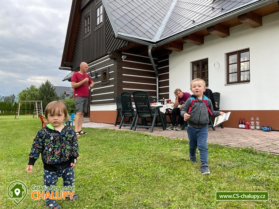 Roubená chalupa Krkonoše pro až 10 osob se nachází v klidné části Podhůří - Vrchlabí s výhledem na panoramata Krkonoš, pole a lesy. Má velkou zahradu (cca 1.600 m2) s terasou a zahradním nábytkem. K dispozici je Vám i gril. Jedná se o typické Krkonošské ubytování, které Vám poskytne absolutní soukromí. V přízemí se nachází obývací pokoj s Tv a krbem, plnohodnotně vybavená kuchyň s jídelnou. Ložnice s koupelnou s vanou, sprchou, WC a pračkou. Kuchyně je vybavena myčkou, troubou, mikrovlnnou troubou, lednicí / mrazničkou, kávovarem, rychlovarnou konvicí. V prvním patře jsou dvě dvoulůžkové, jedna jednolůžková a třílůžková ložnice. Koupelna s vanou a sprchou , samostatné WC. V ceně ubytování je zahrnuto ložní prádlo. Malebné horské město Vrchlabí je právem nazýváno „Bránou Krkonoš“. Nachází se v nadmořské výšce 477 metrů a je ideálním východiskem do nejvyšších českých hor. V zimě je tu pro Vás nachystané množství upravených sjezdových a běžeckých tratí, v létě cyklotras a turistických cest. Do nejatraktivnějších míst Krkonoš vás snadno dopraví Krkonošské cyklobusy. Za krásami Vrchlabí se vydejte nenáročnou naučnou stezkou. Po 2 km dlouhé stezce projdete srdcem města kolem nejstaršího Vrchlabského domu se sedmi štíty, řeky Labe, Kulturního domu Střelnice známého díky filmu „Hoří, má panenko“, kostela sv. Vavřince, kláštera, klášterní zahradou k zámku a zámeckým parkem zpět k radnici. Pokud ze stezky odbočíte, můžete navštívit nejstarší kamennou rozhlednu v Krkonoších - Žalý, zastavit se u staré kovárny či na dětském hřišti. Vydejte se na prohlídku Vrchlabských památek. Během letních prázdnin je veřejnosti otevřen klášterní kostel sv. Augustina. Jste-li dobrodružnější povahy, pak doporučujeme vyzkoušet zorbing, umělou horolezeckou stěnu, sjezd na terénních koloběžkách ze Žalého, zažít vyhlídkový let nad městem, nebo se malebnou přírodou projet v koňském sedle. Využijte Krkonošské cyklobusy, jejichž hlavním přestupním místem je právě Vrchlabí. Nejezděte do kopce na kole! Vyjeďte si nahoru lanovkou či cyklobusem a užívejte si dlouhé sjezdy až do Vrchlabí. V blízkém Vrchlabí se nalézá koupaliště („Vejsplachy“) či letiště, odkud můžete vystoupat na nádherný letecký výlet nad hřebeny Krkonoš.