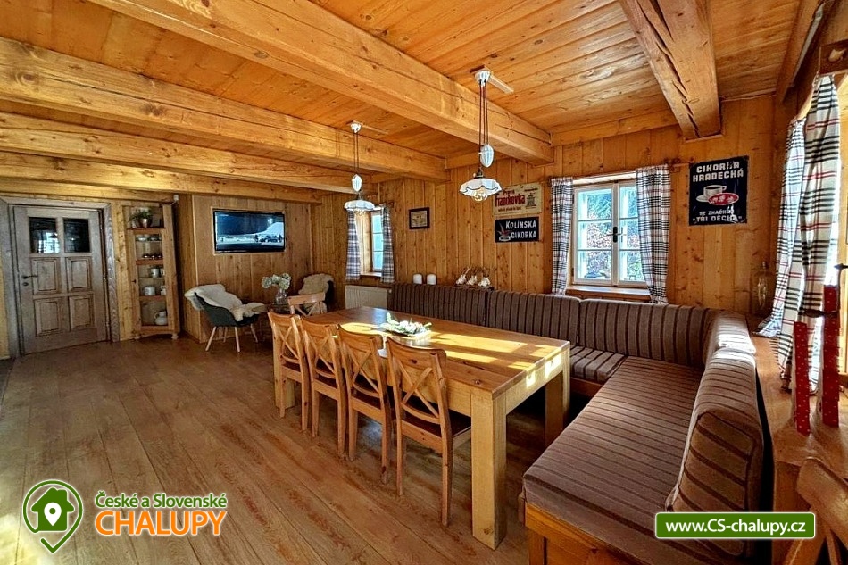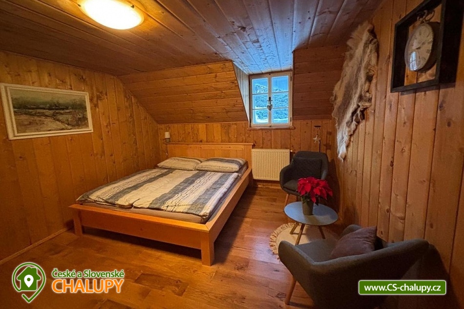 Roubená chalupa v nadmořské výšce 980 m v Luisině údolí nedaleko Deštného v Orlických horách. Chalupa je výjimečná nejen svým umístěním, ale také možnostmi, které nabízí. Ať už hledáte klidný pobyt pro odpočinek nebo aktivní dovolenou plnou zážitků. Chalupa nabízí ubytování pro až 13 osob v 5 ložnicích (11 lůžek a 2 přistýlky spaní na peci). POPIS: Přízemí chalupy: velká společenská místnost s plně vybavenou kuchyní a kachlovými kamny - spaní na peci, spižírna, lyžárna/komora, WC, koupelna. 1. patro: 5 pokojů (4 x 2-lůžkový, 1 x 3-lůžkový), koupelna, 2 x WC. Vybavená kuchyně: kávovar na zrnkovou kávu, varná deska, trouba, mikrovlnná trouba, velká lednice + mrazák. Dále velký jídelní stůl, kávový koutek s křesílky, pohodné křeslo na čtení, ležení na peci pro odpolední odpočinek. TV - O2 TV, WI - FI. Sociální zařízení: 2x koupelna se sprchovým koutem, 3x WC (2x samostatné, 1x součást pokoje). Vytápění chalupy: ústřední topení v celém objektu - Kachlová kamna s krbovou vložkou - dřevo v ceně pronájmu. Nekuřácká chalupa, pobyty bez domácích zvířat. U chalupy: skládací lehátka na terasu, venkovní sezení, venkovní krb. Parkování pro až 6 aut přímo u chalupy. Uvnitř chalupy najdete vše, co potřebujete pro pohodný pobyt – útulné pokoje, plně vybavenou kuchyň, krb pro romantické večery a venkovní posezení s výhledem na přírodu. Vychutnejte si letní výšlapy, vyražte na cyklovýlety po okolí, nebo se jen posaďte na terasu a užívejte si ticho. Chalupa leží v dosahu ski centra Deštné – ideální pro sjezdaře, běžkaře i milovníky zimních procházek. Jen pár minut od vašeho prahu vás čeká upravovaná běžecká tratˇ. Velká Deštná, nejvyšší hora Orlických hor, je téměř na dosah. Každou zimu je Luisino údolí součástí nejtěžšího mezinárodního závodu psích spřežení "Šediváčkův long". Deštné v Orlických horách: muzeum Orlických hor, lanový park, tenis, minigolf, hřiště, půjčovna čtyřkolek, kol, lyžařské vleky, horská Masarykova chata na Šerlichu, rozhledna Velká Deštná, Jiráskova stezka - hřebenová turistická cesta. Těšíme se na Vás u nás.