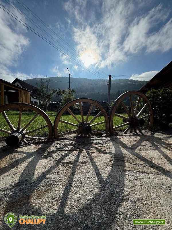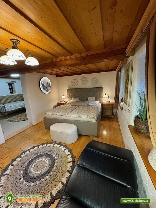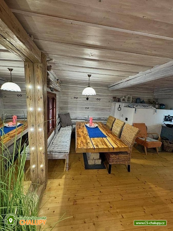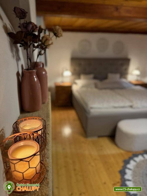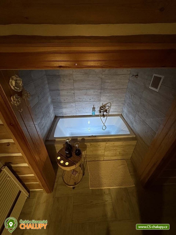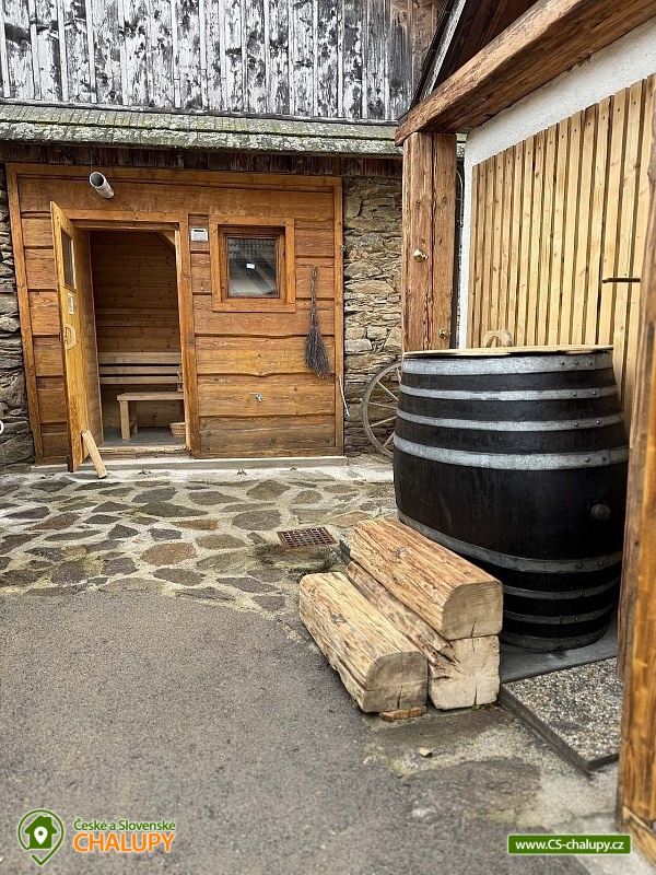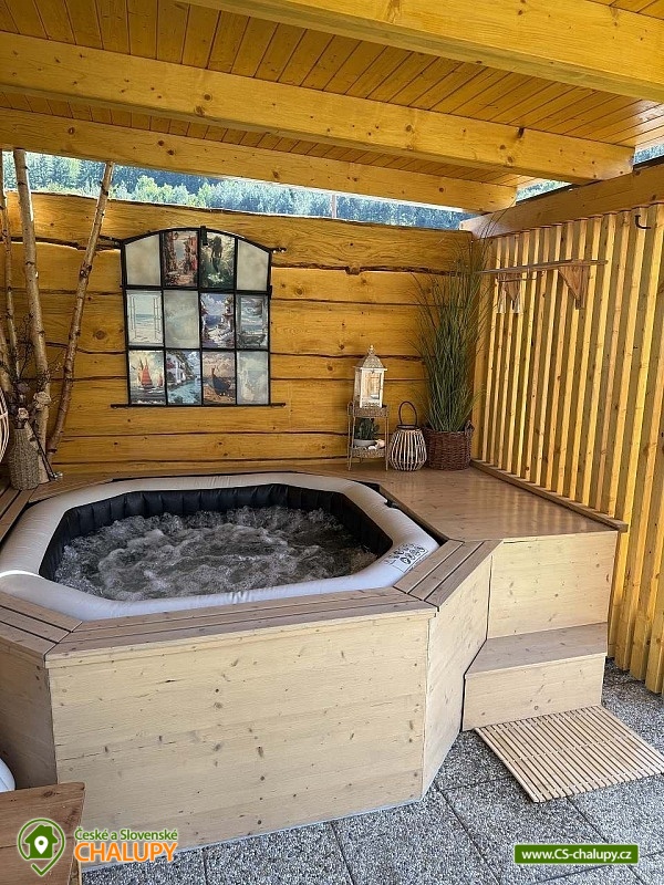 Útulná roubená chalupa s wellness u Vírské přehrady se nachází v malebném údolí řeky Svratky, kousek od Brna. Toto místo Vám nabídne absolutní soukromí a klid a vytvoří dokonalou oázu pro odpočinek a načerpání nové energie. Těšit se můžete na finskou saunu s venkovní sprchou nebo na vířivku se slanou vodou pro relaxaci pod širým nebem. Chalupa poskytuje ubytování pro 9 osob ve třech ložnicích. V přízemí najdete 3-lůžkovou ložnici (1x manželská postel, 1x samostatné jednolůžko) s krbovými kamny, v podkroví 2-lůžkovou ložnici (1x manželská postel) s krbovými kamny a 4-lůžkovou ložnici (1x extra velká postel pro 4 osoby). K dispozici je i (za menší poplatek) dětská postýlka. V přízemí se dále nachází hlavní obývací místnost s velkým jídelním stolem propojená s plně vybavenou kuchyní (lednice s mrazákem, mikrovlnka, toustovač, kávovar, rychlovarná konvice, termomix s knihou receptů, myčka nádobí, varná deska a nádobí). Stylová kachlová pec se sporákem zde vytváří nezaměnitelné kouzlo roubenky. K dispozici je TV a hifi vybavení s bezdrátovým hudebním bluetooth přijímačem. Sociální zařízení zahrnuje velkou koupelnu v přízemí s toaletou a vířivou vanou se světelnou terapií s pohledem na el. krb. V patře je dále oddělená toaleta a samostatná koupelna s vanou. Vytápění je řešeno plynovým kotlem s komfortním podlahovým topením. K dotvoření atmosféry možnost přitápět v kachlové peci. V chalupě jsou i dva el. krby (koupelna, ložnice). V přízemí v ložnici dále najdete i klasický krb na tuhá paliva. V celém objektu možnost zdarma Wi-Fi připojení na internet. Možnost úschovy kol/lyží. Parkování je bezplatné a je přímo u objektu (max. 4 auta). Chalupa se nachází na oploceném pozemku se zatravněnou zahradou. Na zahradě najdete pergolu s posezením a grilem. Využít můžete i ohniště. Pro posezení v zimních měsících je zde i venkovní terasový ohřívač. Dále je k dispozici vinný sklípek, který dotváří atmosféru pohody a relaxace. Milovníci wellness ocení finskou saunu, která je doplněna venkovní sprchou. V zimních měsících slouží k ochlazení velký netradiční oválný sud. Využít můžete i venkovní vířivku se slanou vodou pod pergolou, která je provozována sezónně od března do října. Ti nejmenší jistě ocení dětskou skluzavku. V okolí objektu možnost turistiky, cykloturistiky, koupání, houbaření, běžkování a lyžování. Pro dobrodružnější povahy jsou zde ferraty. Řeka Svratka je hojně navštěvována rybáři, kteří hledají kvalitní pstruhové vody. Mezi možnosti koupání patří např.: Koupaliště Olešnice, Koupaliště Bystřice nad Pernštejnem nebo Městské lázně Nové Město na Moravě. V zimě výhodou blízká lyžařská střediska např.: Nové Město na Moravě - Ski snowpark Harusův kopec nebo Skiareál Olešnice na Moravě. K výletům v okolí láká: vodní nádrž Vír, zříceniny hradů Pyšolec, Zubštejn, Aušperk nebo biatlonový areál v Novém Městě na Moravě. Možnost domluvit projížďku v kočáře s koňským spřežením (nutná rezervace předem). Pro děti je připravena zábava v podobě hledání ztraceného pokladu se sladkou odměnou, zatímco dospělí se mohou těšit na láhev šumivého vína nebo prosecca na uvítanou. Těšíme se na Vás u nás.
