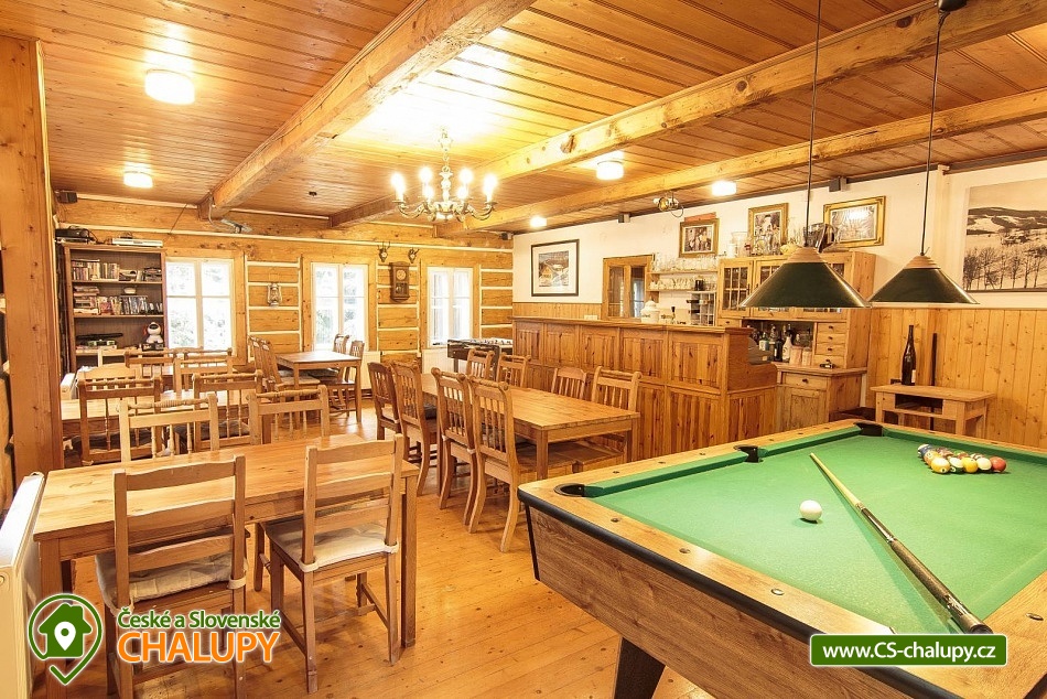 Veselá bouda se saunou a bazénem se nachází v romantické části Krkonoš v bývalé obci Horní Herlíkovice patřící k obci Strážné nedaleko měst Vrchlabí a Špindlerův Mlýn. Jedná se o roubenou stavbu z 19. století ležící na staré lesní stezce do Špindlerova mlýna. V jejím okolí si lze užívat nádhernou atmosféru původního osidlování této horské oblasti, lesy a nádherné výhledy na Zlaté návrší. V zimním období výhodou blízkost lyžařského areálu (cca 200 m), který je vhodný pro děti a méně náročné lyžaře a lze k němu sjíždět na lyžích. Velmi útulně vybavená chata Veselá bouda poskytuje ubytování pro 19 - 31 osob, celkem je k dispozici sedm čtyřlůžkové pokoje a jeden třílůžkový pokoj. Tři pokoje jsou umístěné v přízemí vedle sebe a další se nachází v prvním patře. Všechny pokoje mají vlastní koupelnu se sprchovým koutem a WC. V ložnicích jsou k dispozici TV. Dětská postýlka je k dispozici. Pro společné chvíle slouží společenská místnost s jídelními stoly, barem s pivním chlazením, kávovarem Nespresso a ozvučením s bluetooth připojením. Dále jsou zde pro volný čas k dispozici stolní hry, šipky, stolní tenis, kulečníkový stůl s možností hrát pull a biliard. Příjemné volné chvíle lze také trávit v útulné místnosti s krbovými kamny a posezením, která je umístěná na druhé straně a navazuje na venkovní terasu orientovanou na jihozápad. Součástí domu je plně vybavená kuchyň (lednička, varná konvice, myčka na nádobí, mikrovlnná i pečící trouba, toustovač, topinkovač a nádobí). V celém objektu je k dispozici WIFI připojení na internet. V suterénu domu lze relaxovat v sauně s odpočívárnou s výhledem do lesa a vstupem ke krytému bazénu (v zimě slouží jako ochlazovací bazén k sauně). Součástí odpočívárny jsou lehátka a TV. K sauně náleží sprchový kout a WC. Vytápění je v celém objektu řešeno centrálním vytápěním a přitopit si lze v krbových kamnech. Venku lze posedět na prostorné klidné venkovní terase s krbem a několika jídelními stoly. Část terasy je zastřešená. Užívat si lze venkovní krytý bazén. K dispozici je také víceúčelový kurt, který lze využít na nohejbal, volejbal, přehazovanou a nadšenci si na něm zahrají i tenis. Pro děti je také připravená trampolína. Parkovat lze přímo u objektu. V okolí Veselé boudy možnost turistiky, cykloturistiky, koupání, houbaření, lyžování a běžkování. V blízkosti jsou také tenisové kurty a bowling. Mezi možnosti koupání patří např.: aquapark Špindlerův Mlýn, přehrada Labská, Aquacentrum Vrchlabí, koupaliště Valteřice, rybník Vejsplachy, koupaliště Čistá, koupaliště Poniklá - Homole v Dolích, bazén Jilemnice, koupaliště Jilemnice, rybník U Mlejna, koupaliště Mříčná, atd. V zimním období jsou k dispozici blízká lyžařská střediska: Herlíkovice - Bubákov, Strážné, Dolní Dvůr - Luisino údolí, Vrchlabí - Kněžický vrch, Benecko, Ski Family - Dolní Dvůr, Majasport Labská, Labská, Janova Hora a další. K okolním výletům láká Vrchlabí, Špindlerův mlýn, Pec pod Sněžkou, hřebeny Krkonoš, Sněžka, lanovka na Černou Horu, Stezka korunami stromů v Janských Lázních, ZOO Dvůr Králové nad Labem a další. Těšíme se na Vás u nás.