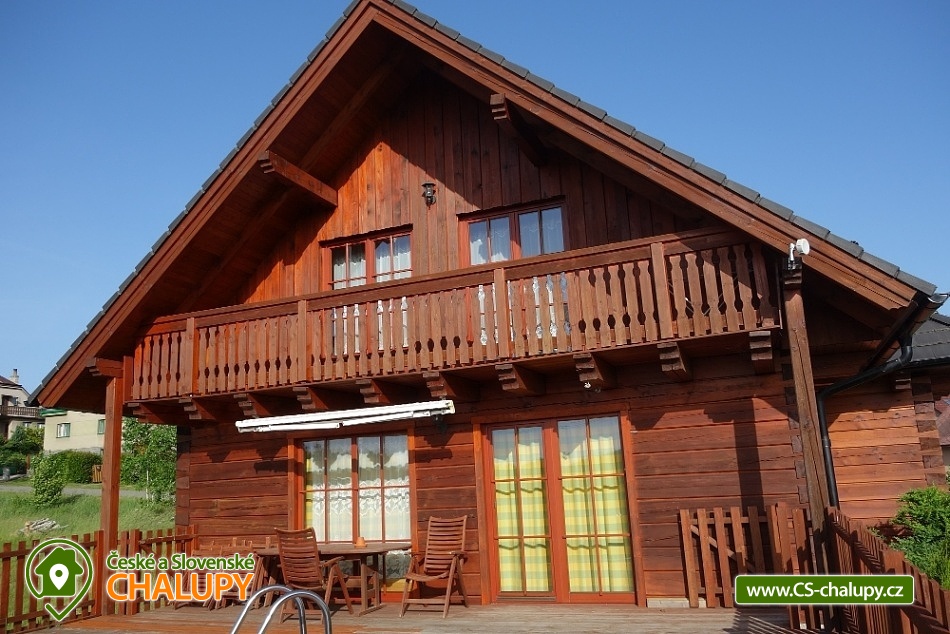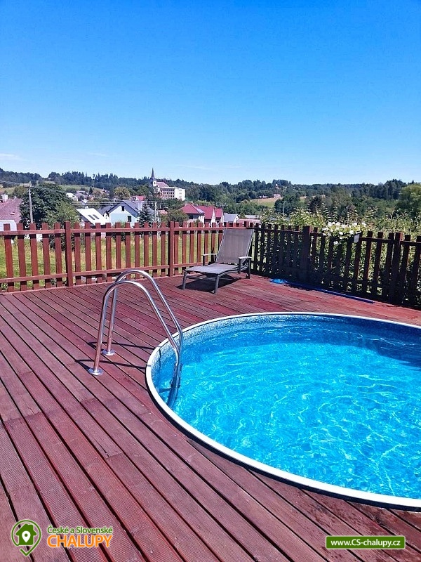 Roubená chalupa s bazénem a saunou Železné hory - Vysočina. Chalupa leží v chráněné krajinné oblasti Železné hory na okraji obce Trhová Kamenice. Chalupa poskytuje ubytování pro až 9 osob ve 3 ložnicích. 1x ložnice v přízemí se třemi lůžky (u této ložnice je šatna a koupena s hydromasážní vanou), 2x ložnice v patře - každá pro 3 osoby. Postýlka, nebo přistýlka je možná do každé ložnice dle dohody. Vlastní kuchyň - plně vybavena jak nádobím tak i elektrickými spotřebiči (sklokeramická deska, trouba, myčka, mikrovlnná trouba, rychlovarná konvice, kávovar). Velká obytná jídelna nabízí příjemné posezení u krbu či TV. Z této místnosti je vstup na prostornou slunnou terasu s posezením a krásným výhledem do okolní krajiny. V patře je druhá obytná místnost s kulečníkem. Okolní pozemek je s travním porostem částečně oplocen. Pro nejmenší lze využít pískoviště či houpačku. Koupelna v přízemí je průchozí z ložnice (sprchový kout, hydromasážní vana, umyvadlo, WC, bidet, podlahové topení), na chodbě 2. WC s umyvadlem. V patře je 2.koupelna (sprchový kout, umyvadlo, WC, podlahové topení). Elektrické vytápění přímotopy, podlahové topení - přízemí, koupelny. Krb - vytopí celou chalupu. K chalupě se dostanete po celoročně udržované silnici směr Hluboká. Parkování přímo u chalupy pro 5 aut. Příjezdová cesta je v zimě udržována. Chalupa je ideálním místem pro ty, kteří chtějí strávit aktivní dovolenou s veškerým pohodlím. Okolí nabízí mnoho využití volného času. Jako je turistika (houbaření v nedalekém lese, skanzen Veselý kopec), cykloturistika (mnoho cyklistických stezek i pro méně pokročilé), golf (Golf& Country Club Svobodné Hamry 2 km, Golf club Svratka 21 km), lyže (Trhová Kamenice 200 m, Hluboká 2 km, Hlinsko 6 km) nebo koupání (přírodní zatopené lomy 2 km, Horní Bradlo - koupaliště 4 km, Hlinsko - plavecký areál 6 km).
