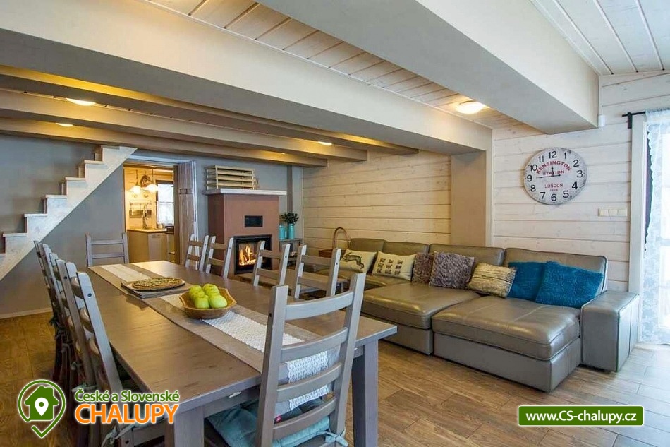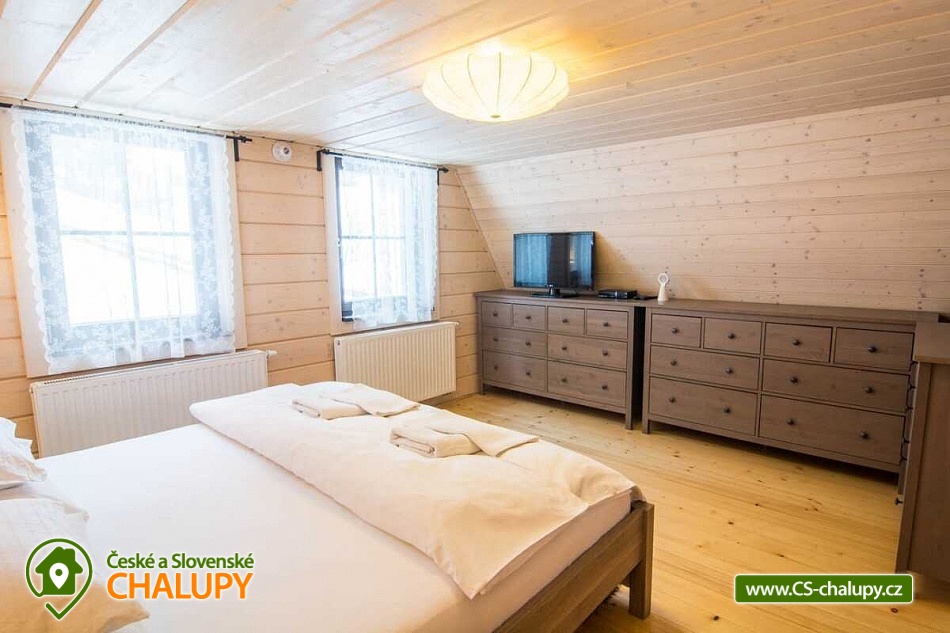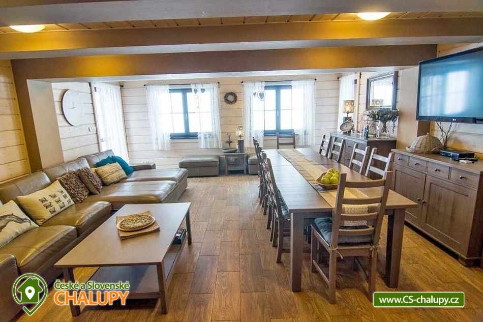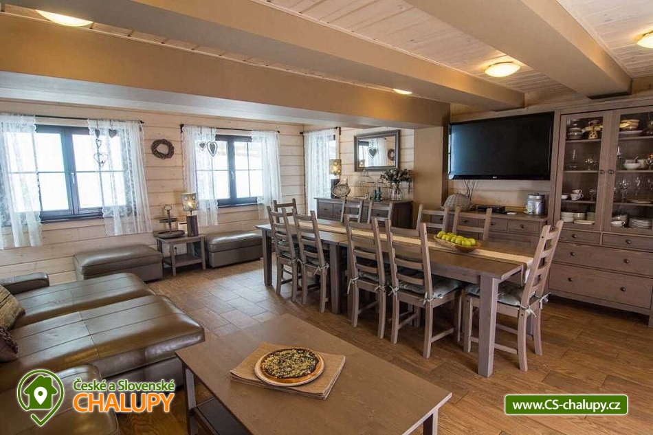 Roubená chata s finskou saunu se nachází v Beskydech u přírodní rezervace Razula, téměř na samém konci tichého údolí a je obklopena lesy. Okolí je vyhledávané pro svou krásnou horskou krajinou a spousty možností pro lyžování, turistiku, cykloturistiku a koupání. Těšit se můžete na klidné prostředí, oblohu plnou hvězd a na relax v sauně nebo při grilování v grilovací kotě. Můžete se podívat také na naše dvě další chalupy v okolí (3M-206 a 3M-208). Útulná a komfortně vybavená chata nabízí ubytování pro až 8 osob ve třech ložnicích. První dvě ložnice jsou umístěné v patře chaty a mají k dispozici velkou pohodlnou manželskou postel. Součástí jedné ložnice jsou mlýnské schody vedoucí do třetí podkrovní ložnice se 4 futunovými lůžky, oblíbené u dětí. V obou ložnicích jsou k dispozici úložné prostory a TV. V přízemí pro společné chvíle slouží prostorná obývací místnost s koženou sedací soupravou, TV, malou vinotékou, velkým jídelním stolem, krbovými kamny, vchodem na zastřešenou terasu a vchodem do dřevníku. Z obývacího pokoje vedou dřevěné schody do patra a na pokoj navazuje plně vybavený kuchyňský kout se spotřebiči (lednice s mrazákem, elektrická trouba, varná deska, mikrovlnná trouba, varná konvice, kávovar Nespresso, topinkovač, ruční mixér, mixér, atd.). Dále je k dispozici podsklepená místnost s prádelnou (pračka, sušička, náhradní lednice s mrazákem) a prostorem pro uchovávání kol, kočárků, lyží a jiných potřebných věcí. Tato místnost je také vytápěna a po domluvě může sloužit jako spací prostor pro větší psi. Sociální zařízení zahrnuje jednu koupelnu v přízemí s vanou a WC a jedno samostatné WC umístěné v patře mezi ložnicemi. Vytápění je elektrické, kombinované s kachlovými kamny na dřevo. V přízemí podlahové topení a v patrech radiátory. V celém objektu je k dispozici WIFI připojení na internet. Ve všech oknech jsou sítě proti hmyzu v ložnicích a obývacím pokoji kouřové hlásiče. K chatě přiléhá zastřešená terasa s dřevěným posezením, kontaktním grilem a finskou saunou s elektrickými kamny za poplatek. Kolem chaty se rozléhá travnatá oplocená zahrada, na které se nachází grilovací domek Kota s krásným posezením a bohatou výbavou ke grilování v jakémkoli počasí s nezapomenutelnou atmosférou. Pro děti jsou k dispozici houpačky a skluzavka. Parkovat lze přímo u objektu. V okolí chaty možnost turistiky, cykloturistiky, koupání, houbaření, běžkování, in -line bruslení a lyžování. V blízkosti jsou také tenisové kurty a golfové hřiště. Mezi možnosti koupání patří např.: koupaliště Velké Karlovice, Vodní svět Velké Karlovice, bazén Velké Karlovice, přehrada Horní Bečva, koupaliště Balaton, koupaliště biotop Bečva, koupaliště Hutisko-Solanec, koupaliště Vigantice, koupaliště Rožnov pod Radhoštěm, bazén Rožnov pod Radhoštěm, atd. V zimním období jsou k dispozici blízká lyžařská střediska: Velké Karlovice - Machůzky, Razula, Velké Karlovice - Bambucha, Synot - Kyčerka, LS zona snow Makov - Kasárne, Soláň - Bzové, Třeštík – Celnica, Karolínka a další. K výletům v okolí láká Valašské muzeum v přírodě - Rožnov pod Radhoštěm, Pustevny s vycházkou na Radhošť, Kopřivnice - muzeum Tatrovky, Čeladná - bobová dráha, ZOO Lešná nebo Valašské Meziříčí. Těšíme se na Vás u nás.