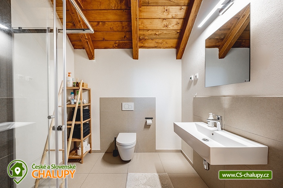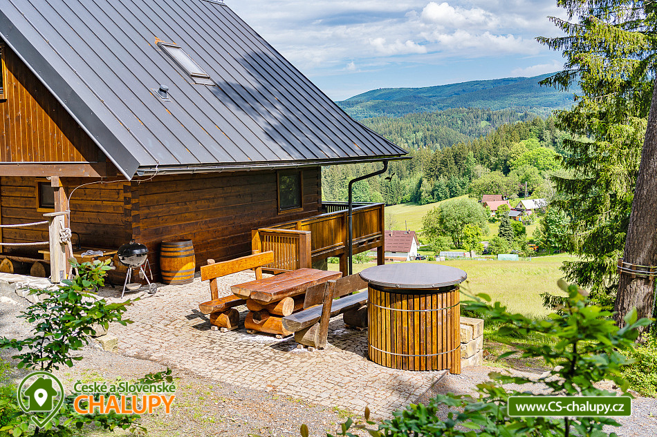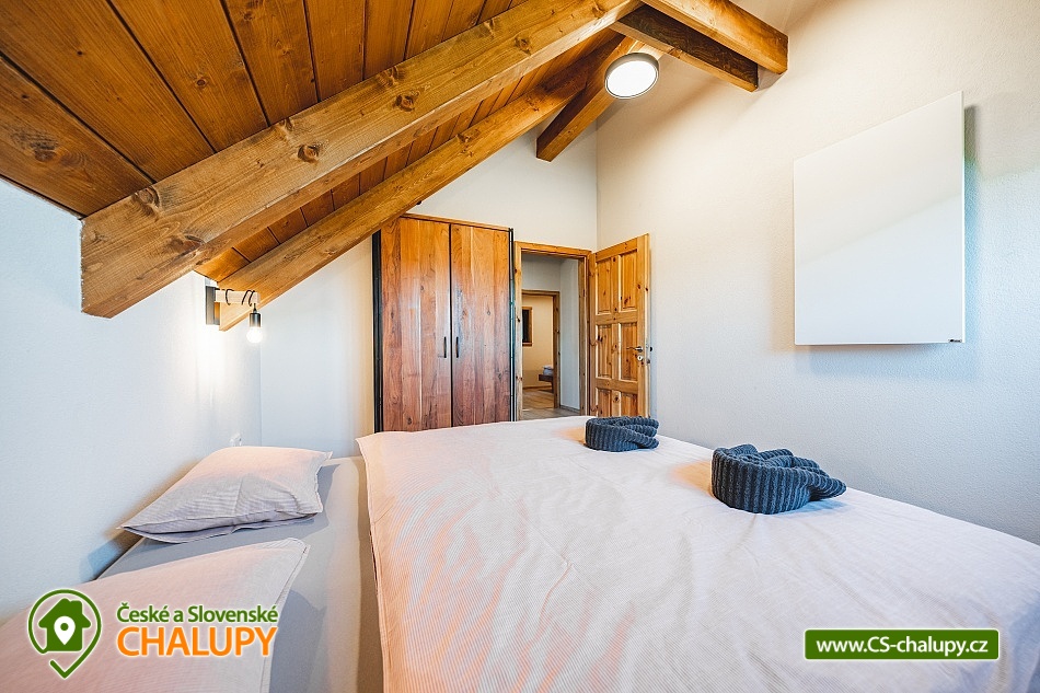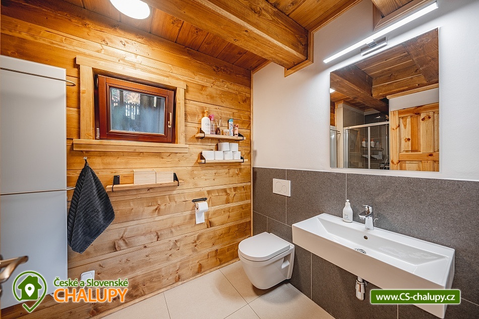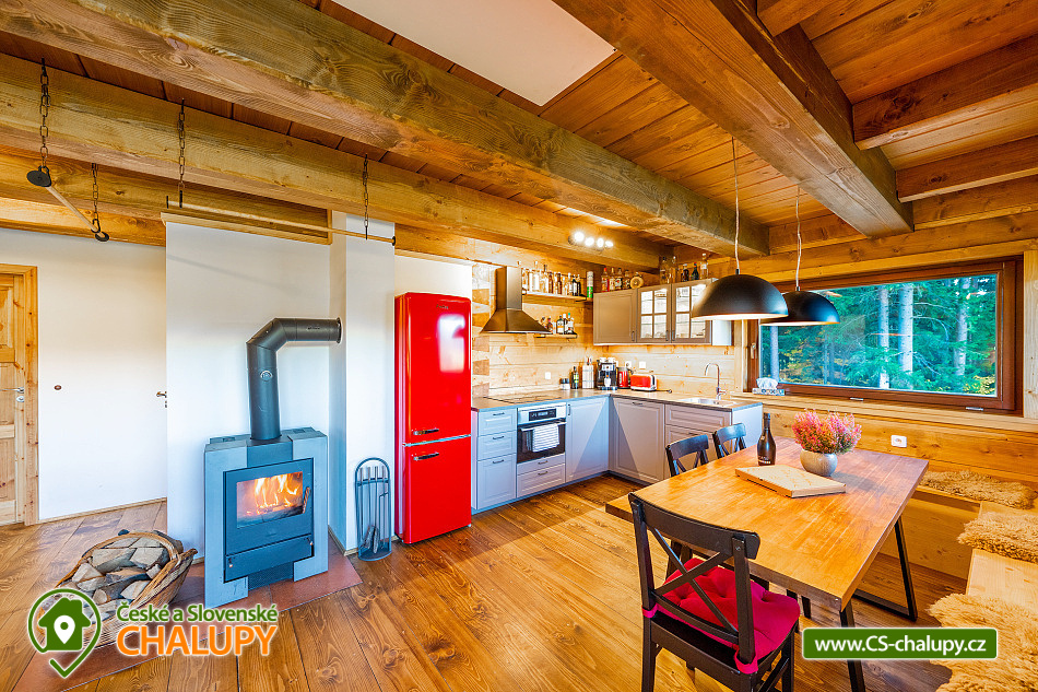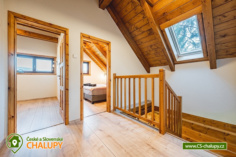 Stylová Roubená chata se nachází na samotě u lesa v obci Horní Bečva v krásné přírodě Beskyd. Těšit se můžete na dostatek soukromí, horské ticho a jedinečné výhledy na masiv Radhoště a údolí Bečvy s krásným kostelem na Prostřední Bečvě. V noci potěší úplná tma a hvězdná obloha. Tato komfortně zařízená roubenka nabízí ubytování pro až 10 osob. K dispozici jsou čtyři dvoulůžkové ložnice s pohodlnou manželskou postelí a po domluvě lze zajistit dvě přistýlky. Ložnice jsou umístěné v patře. Ložní prádlo a ručníky jsou samozřejmostí. Ke společným chvílím slouží otevřený obývací pokoj s krbovými kamny a plně vybavenou kuchyní (myčka, indukční varná deska, multifunkční trouba, lednička, varná konvice a automatické espresso DeLonghi). Součástí místnosti je pohodlná sedací souprava s výhledem do přírody, smart TV s O2 TV včetně Ligy mistrů a Premier League, Netflix, soundbar a jídelní stůl pro 8 lidí. Z obývacího pokoje lze vstoupit na prostorný balkón s posezením a závěsnou houpačkou a užívat si zde krásná horská panoramata. V celém objektu je k dispozici WIFI připojení na internet. Sociální zařízení zahrnuje dvě koupelny umístěné v přízemí a v patře. Obě koupelny jsou vybavené sprchovým koutem, WC, umyvadlem a fénem. Vytápění je řešeno elektrickým vytápěním a krbovými kamny. K dispozici je dřevo do kamen. Ve sklepě lze uskladnit sportovní vybavení (lyže, kola apod.). Venku roubenku obklopuje travnatá zahrada a stromy. Posedět lze na terase nebo u ohniště. K dispozici je Gril Weber na dřevěné uhlí. Odpočívat můžete pod korunami stromů v závěsné dřevěné houpačce s pohodlnou nepromokavou matrací. Parkovat lze přímo u objektu. V zimním období je vhodná výbava sněhovými řetězy. V okolí roubenky možnost turistiky, cykloturistiky, koupání, rybaření, houbaření, běžkování a lyžování. V blízkosti jsou také tenisové kurty, golfové hřiště a pumptrack. Přímo z roubenky se lze projít do lesa a nasbírat si borůvky či jiné lesní plody. Mezi možnosti koupání patří např.: přehrada Horní Bečva, koupaliště biotop Bečva, koupaliště Hutisko-Solanec, koupaliště Vigantice, koupaliště Velké Karlovice, koupaliště Rožnov pod Radhoštěm, aquapark Vodní svět Velké Karlovice, koupaliště Balaton, atd. K dispozici jsou blízká lyžařská střediska: Pod Soláněm, Rališka, Solisko, Mečová, Soláň, Kubiška, Soláň - Bzové, U Sachovy studánky a další. K výletům v okolí láká Socha Radegasta a vrchol Radhošt, Pustevny, Horský lanový park Tarzanie v Trajanovicích, Jurkovičovy rozhledny v Rožnově pod Radhoštěm a Valašské muzeum v přírodě. Těšíme se na Vás u nás.