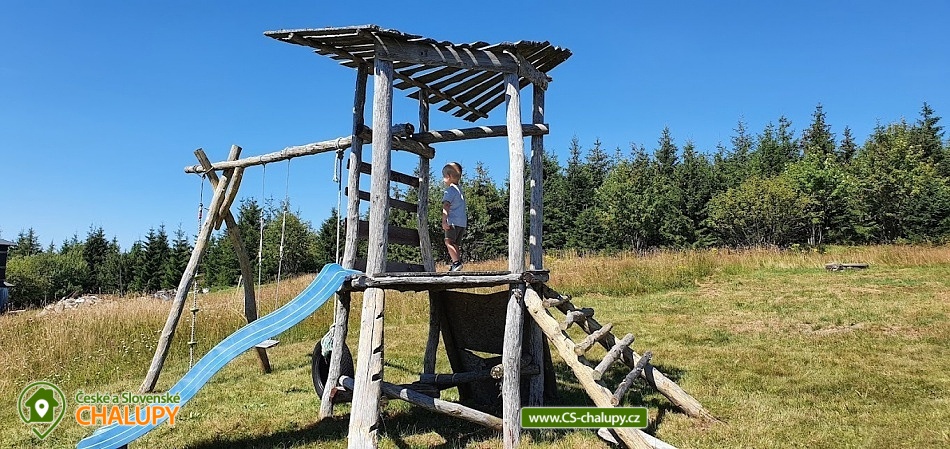Útulná roubená chata se saunou se nachází v chráněné oblasti KRNAP nedaleko obce Strážné. Svou polohou je tak ideálním místem pro zasloužený odpočinek, pěší turistiku, běžkování nebo lyžování. Chata poskytuje jedinečný výhled do širokého okolí (rozhled až 150 km). Ubytování je vhodné pro rodiny s dětmi, větší i menší skupiny lidí s možností uspořádat firemní akce, semináře nebo kurzy. Chata poskytuje ubytování pro 28 osob v 12 ložnicích: 1x čtyřlůžkový pokoj, 9x dvoulůžkový pokoj a 2x třílůžkový pokoj. Sociální zařízení zahrnuje 2x společnou koupelnu se sprchovým koutem a umyvadlem a 7x společnou toaletu, oddělené pro dámy a pány. V případě zájmu je zde možnost praní prádla. V objektu se nachází společenská místnost s jídelním posezením, krbovými kamny, TV se satelitem a dětským koutkem s hračkami. V rámci ubytování je k dispozici bufet, kde jsou zajištěny snídaně a večeře, na objednávku pro větší skupinu i obědy. Těšit se můžete na saunu pro 6 osob nebo masážní přístroj. K dispozici je úschovna pro kola nebo lyže. Vytápění chaty je řešeno krbem na tuhá paliva. V objektu možnost zdarma WI-FI připojení na internet. Chatu obklopuje travnatý pozemek s možností parkování přímo u objektu (max. 10 aut) v letních měsících. V zimě je třeba parkovat na placeném záchytném parkovišti Strážné - lom, odkud se k ubytování dostanete rolbou v předem dohodnutém čase. Na pozemku se nachází posezení, gril, stolní tenis a volejbal. Ti nejmenší jistě ocení trampolínu, prolézačku nebo houpačku. V okolí chaty možnost turistiky, cykloturistiky, koupání, lyžování, běžkování či houbaření. Mezi možnosti koupání patří např.: aquacentrum ve Vrchlabí, rybník Vejsplachy, Labská přehrada nebo aquapark ve Špindlerově Mlýně. V zimě jsou výhodou blízká lyžařská střediska např.: lyžařské centrum Strážné, lyžařské centrum Špindlerův Mlýn nebo lyžařské centrum Vrchlabí. K výletům v okolí láká: výstup na Sněžku, letní bobová dráha Špindlerův Mlýn, ZOO Dvůr Králové, Krkonošské muzeum ve Vrchlabí nebo Stezka korunami stromů v Janských Lázních. Těšíme se na Vás u nás.
