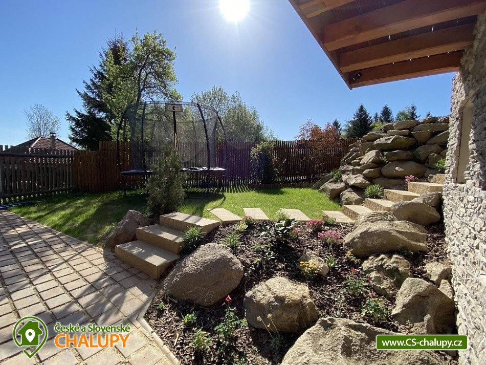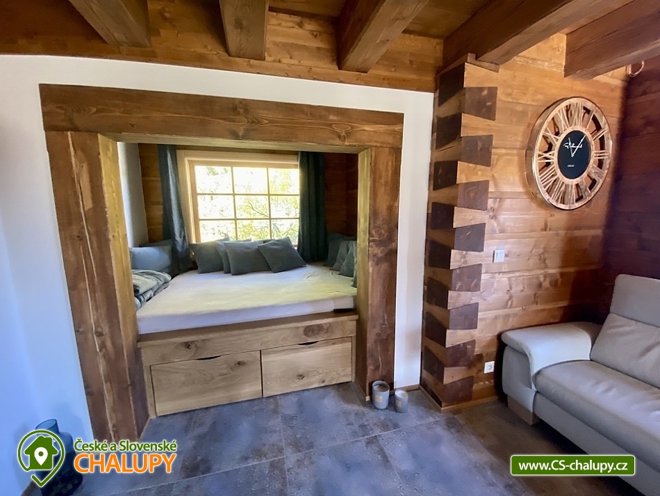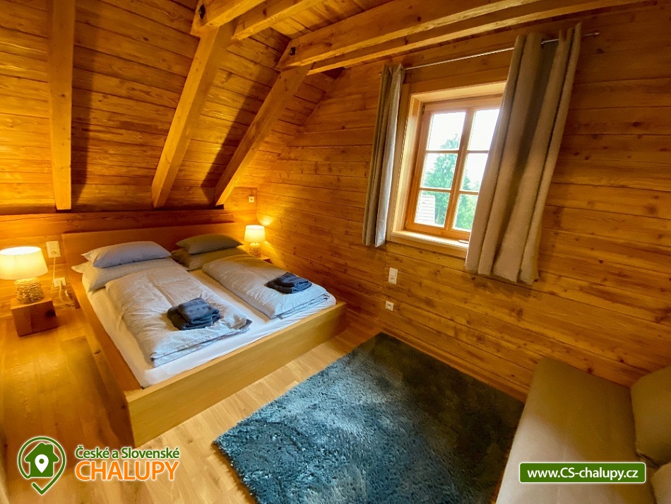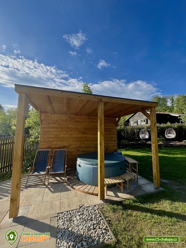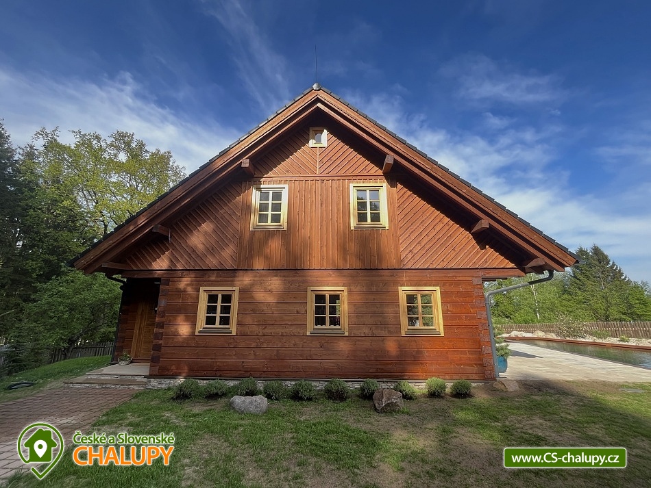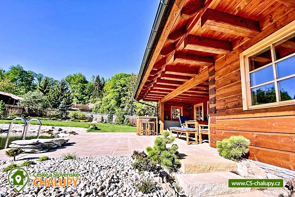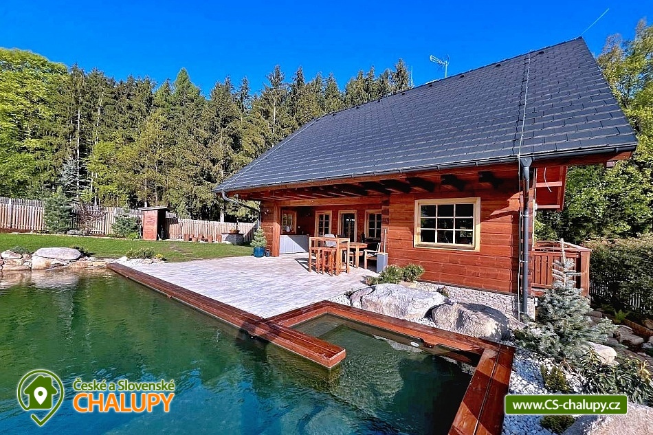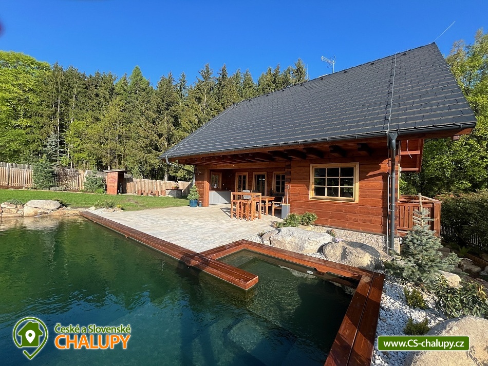 Roubenka s koupacím jezírkem a wellness se nachází u lesa na okraji malebné obce v jižních Čechách, poloha nedaleko areálu Monínec. Chalupa je ideální pro rodinnou dovolenou, a to jak v aktivním, tak relaxačním stylu. Zahradě dominuje koupací jezírko se slanou vodou, které je ideální pro celodenní dovádění, ale i otužování či noční koupání. Kapacita chalupy je 14 osob ve čtyřech ložnicích s využitím dvoulůžka ve výklenku obývacího pokoje - se všemi lůžkovinami a ručníky k dispozici. Maximální ubytovací kapacita je až 22 osob je při využití rozkládacího dvoulůžka (včetně lůžkovin a ručníků) ve 2 lůžkovém pokoji se samostatnou koupelnou a dalším využití třech dvoulůžkových matrací na půdě s množstvím polštářů a příjemných dek na přikrytí (bez standardních lůžkovin), ručníky jsou k dispozici. Tato varianta je možná pouze po předchozí domluvě. Pro vaše nejmenší jsou dále k dispozici 2 dětské rozkládací postýlky. Vnitřnímu prostoru dominují kachlová kamna s krbem a plotnou, která jistě přispějí k příjemné atmosféře společenského života uvnitř roubenky. V obývacím pokoji je dvoulůžko ve výklenku oddělené roletou, pohodlná kožená sedací souprava, velkoplošná televize. Na druhé straně se nachází jídelna. Kuchyň je plně vybavená s americkou lednicí s mrazákem a výrobníkem ledu, pečící troubou, indukční varná deskou, myčkou na nádobí, mikrovlnkou, kávovarem na mletou kávu, rychlovarná konvicí na vodu, topinkovačem, toustovačem, ručním mixerem a šlehačem a kompletním jídelním vybavením, nádobím a nástroji pro přípravu jídel. V patře se nachází 4 ložnice: 2x 4-lůžkový pokoj (každý se dvěma podkrovními postelemi pro 2 osoby), 1x 2-lůžkový pokoj s vlastní koupelnou (manželská postel a případně přistýlka - rozkládací pohovka pro 2 osoby), 1x 2-lůžkový pokoj s podkrovní postelí pro 2 osoby. Herna v suterénu je místem pro aktivity zejména v deštivém počasí, kde můžete hrát, stolní tenis, elektronické šipky, nebo se naopak přesunete s dětmi na půdu, kde je zázemí pro klidné sledování filmů, ale i jiné hry a lumpárny jako "polštářová válka" a podobně. Suterén zároveň slouží pro uložení kol a v zimě lyží či snowboardů, ale i saní a pekáčů a jiného náčiní a sportovního vybavení pro hry na zahradě jako jsou fotbalové branky, síť na míčové sporty, míče, rakety, slaměný terč s lukem a šípy, elektrické šipky. V roubence jsou celkem 4 koupelny. Jedna v přízemí se dvěma umyvadly a osvětlenou sprchou a WC, 2. je v patře s jedním umyvadlem, vanou a WC, 3. je součástí jedné z ložnic. 4. koupelna se nachází v herně v suterénu, kam je přístup pouze z venku. V každé koupelně je k dispozici vysoušeč vlasů. Roubenka má elektrické podlahové vytápění v přízemí i patře s ložnicemi. Přitápí se kachlovými kamny v krbu nebo pod plotnou. V suterénu naleznete elektrický sušák na boty. Z roubenky vstoupíte přímo na zastřešenou terasu s venkovní kuchyní a lednicí, pohodlným i barovým posezením, grilem. Z trasy se dostanete na travnatou plochu zahrady a nebo skočíte přímo do jezírka. To si můžete v noci rozsvítit a zaplavat si i při měsíčku. Nebo dále do finské sauny a vířivky. Ohniště s posezením tvoří další kout zahrady. Naleznete zde také trampolínu. Vydáte-li se do okolí pěšky nebo na kole, budete poznávat krásnou přírodu jižních Čech - lesy plné hub, rybníky i lesní jezírka. Borotín je malebnou vesnicí - na romantické zřícenině zámku Borotín se natáčela pohádka Honza málem králem. Najdete zde i kozí farmu. V zimě potom můžete navštívit blízký areál Monínec (9 km), který je ideální pro výuku začínajících lyžařů nebo vyrazit na běžky po okolí. Určitě se nebudete nudit a věříme, že přijedete znova, protože nemůžete stihnout vše za jeden pobyt. Hned na zahradě nasednete na kolo a za Roubenkou nastoupíte na cyklostezku 1059a, která je součástí borotínského mikroregionu „Čertovo břemeno“ a navazuje na mezinárodní dálkovou cyklotrasu č.11 Greenways Praha – Vídeň. Další výlety: Muzeum veteránů, Chotoviny (8 km), Adrenalinový park Monínec (9 km), ZOO Větrovy u Tábora (16 km), Kozí hrádek – národní památka a zřícenina, Sezimovo Ústí (18 km), Muzeum loutek, Mladá Vožice (18 km) a Chýnovská jeskyně, Chýnov (25 km). Těšíme se na vás u nás!