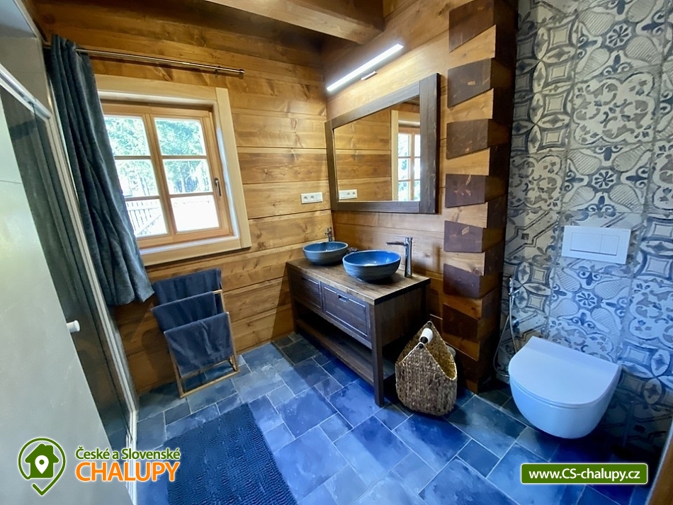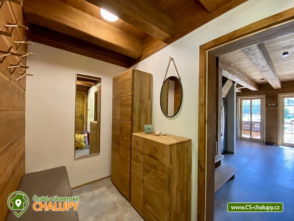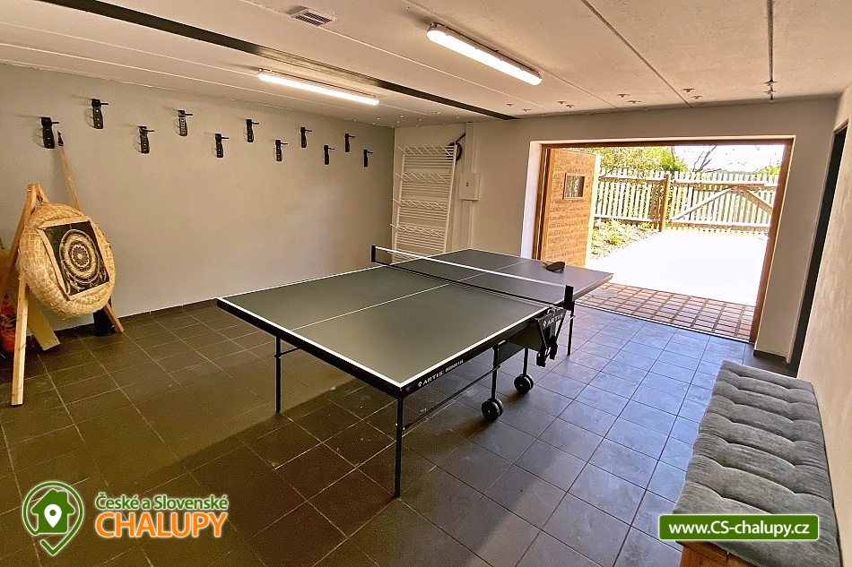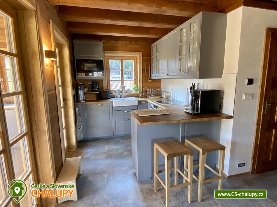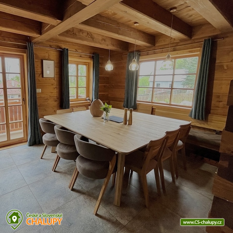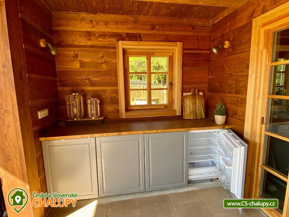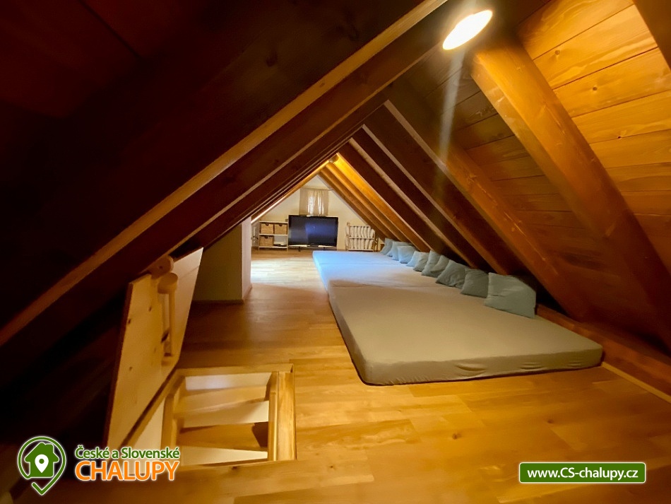 Roubenka s koupacím jezírkem a wellness se nachází u lesa na okraji malebné obce v jižních Čechách, poloha nedaleko areálu Monínec. Chalupa je ideální pro rodinnou dovolenou, a to jak v aktivním, tak relaxačním stylu. Zahradě dominuje koupací jezírko se slanou vodou, které je ideální pro celodenní dovádění, ale i otužování či noční koupání. Kapacita chalupy je 14 osob ve čtyřech ložnicích s využitím dvoulůžka ve výklenku obývacího pokoje - se všemi lůžkovinami a ručníky k dispozici. Maximální ubytovací kapacita je až 22 osob je při využití rozkládacího dvoulůžka (včetně lůžkovin a ručníků) ve 2 lůžkovém pokoji se samostatnou koupelnou a dalším využití třech dvoulůžkových matrací na půdě s množstvím polštářů a příjemných dek na přikrytí (bez standardních lůžkovin), ručníky jsou k dispozici. Tato varianta je možná pouze po předchozí domluvě. Pro vaše nejmenší jsou dále k dispozici 2 dětské rozkládací postýlky. Vnitřnímu prostoru dominují kachlová kamna s krbem a plotnou, která jistě přispějí k příjemné atmosféře společenského života uvnitř roubenky. V obývacím pokoji je dvoulůžko ve výklenku oddělené roletou, pohodlná kožená sedací souprava, velkoplošná televize. Na druhé straně se nachází jídelna. Kuchyň je plně vybavená s americkou lednicí s mrazákem a výrobníkem ledu, pečící troubou, indukční varná deskou, myčkou na nádobí, mikrovlnkou, kávovarem na mletou kávu, rychlovarná konvicí na vodu, topinkovačem, toustovačem, ručním mixerem a šlehačem a kompletním jídelním vybavením, nádobím a nástroji pro přípravu jídel. V patře se nachází 4 ložnice: 2x 4-lůžkový pokoj (každý se dvěma podkrovními postelemi pro 2 osoby), 1x 2-lůžkový pokoj s vlastní koupelnou (manželská postel a případně přistýlka - rozkládací pohovka pro 2 osoby), 1x 2-lůžkový pokoj s podkrovní postelí pro 2 osoby. Herna v suterénu je místem pro aktivity zejména v deštivém počasí, kde můžete hrát, stolní tenis, elektronické šipky, nebo se naopak přesunete s dětmi na půdu, kde je zázemí pro klidné sledování filmů, ale i jiné hry a lumpárny jako "polštářová válka" a podobně. Suterén zároveň slouží pro uložení kol a v zimě lyží či snowboardů, ale i saní a pekáčů a jiného náčiní a sportovního vybavení pro hry na zahradě jako jsou fotbalové branky, síť na míčové sporty, míče, rakety, slaměný terč s lukem a šípy, elektrické šipky. V roubence jsou celkem 4 koupelny. Jedna v přízemí se dvěma umyvadly a osvětlenou sprchou a WC, 2. je v patře s jedním umyvadlem, vanou a WC, 3. je součástí jedné z ložnic. 4. koupelna se nachází v herně v suterénu, kam je přístup pouze z venku. V každé koupelně je k dispozici vysoušeč vlasů. Roubenka má elektrické podlahové vytápění v přízemí i patře s ložnicemi. Přitápí se kachlovými kamny v krbu nebo pod plotnou. V suterénu naleznete elektrický sušák na boty. Z roubenky vstoupíte přímo na zastřešenou terasu s venkovní kuchyní a lednicí, pohodlným i barovým posezením, grilem. Z trasy se dostanete na travnatou plochu zahrady a nebo skočíte přímo do jezírka. To si můžete v noci rozsvítit a zaplavat si i při měsíčku. Nebo dále do finské sauny a vířivky. Ohniště s posezením tvoří další kout zahrady. Naleznete zde také trampolínu. Vydáte-li se do okolí pěšky nebo na kole, budete poznávat krásnou přírodu jižních Čech - lesy plné hub, rybníky i lesní jezírka. Borotín je malebnou vesnicí - na romantické zřícenině zámku Borotín se natáčela pohádka Honza málem králem. Najdete zde i kozí farmu. V zimě potom můžete navštívit blízký areál Monínec (9 km), který je ideální pro výuku začínajících lyžařů nebo vyrazit na běžky po okolí. Určitě se nebudete nudit a věříme, že přijedete znova, protože nemůžete stihnout vše za jeden pobyt. Hned na zahradě nasednete na kolo a za Roubenkou nastoupíte na cyklostezku 1059a, která je součástí borotínského mikroregionu „Čertovo břemeno“ a navazuje na mezinárodní dálkovou cyklotrasu č.11 Greenways Praha – Vídeň. Další výlety: Muzeum veteránů, Chotoviny (8 km), Adrenalinový park Monínec (9 km), ZOO Větrovy u Tábora (16 km), Kozí hrádek – národní památka a zřícenina, Sezimovo Ústí (18 km), Muzeum loutek, Mladá Vožice (18 km) a Chýnovská jeskyně, Chýnov (25 km). Těšíme se na vás u nás!