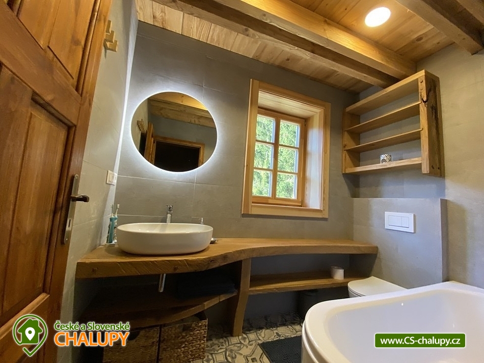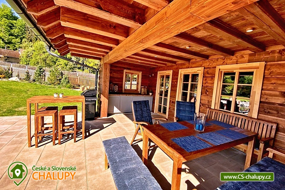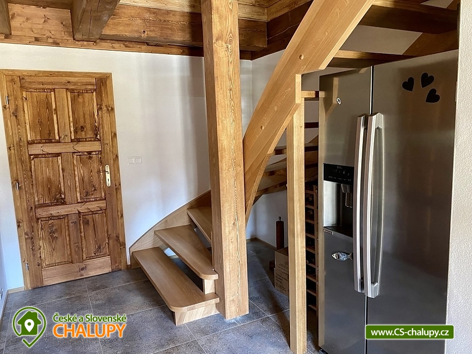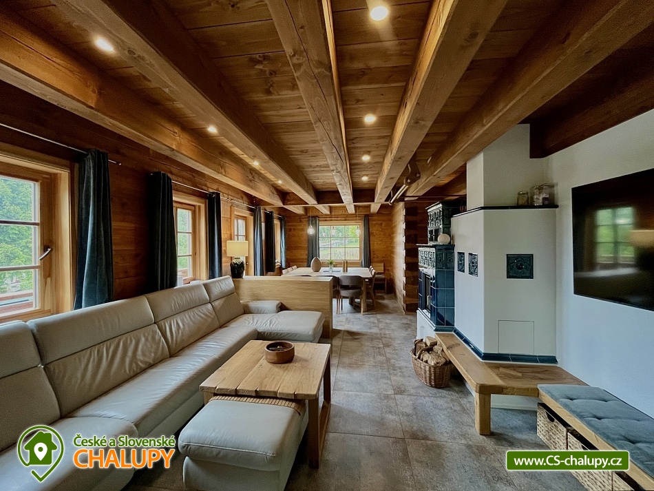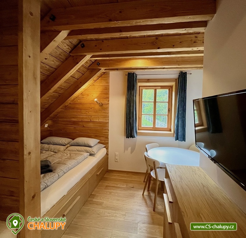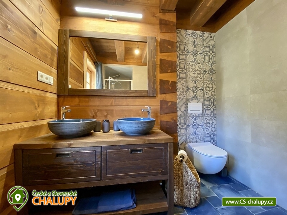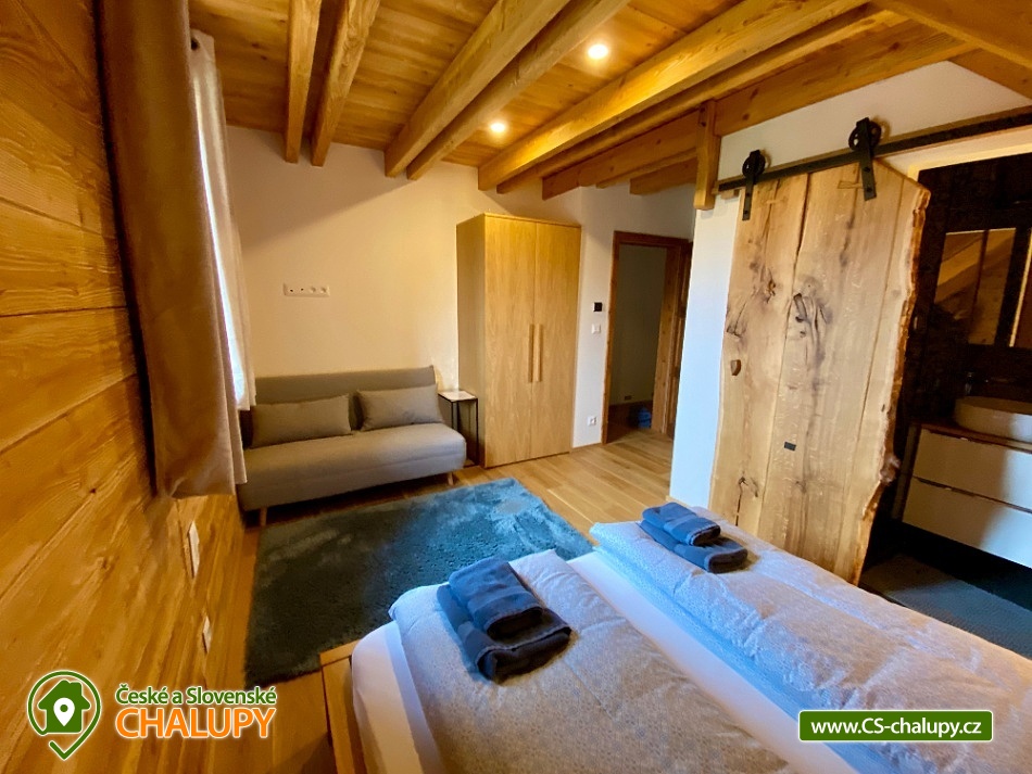 Roubenka s koupacím jezírkem a wellness se nachází u lesa na okraji malebné obce v jižních Čechách, poloha nedaleko areálu Monínec. Chalupa je ideální pro rodinnou dovolenou, a to jak v aktivním, tak relaxačním stylu. Zahradě dominuje koupací jezírko se slanou vodou, které je ideální pro celodenní dovádění, ale i otužování či noční koupání. Kapacita chalupy je 14 osob ve čtyřech ložnicích s využitím dvoulůžka ve výklenku obývacího pokoje - se všemi lůžkovinami a ručníky k dispozici. Maximální ubytovací kapacita je až 22 osob je při využití rozkládacího dvoulůžka (včetně lůžkovin a ručníků) ve 2 lůžkovém pokoji se samostatnou koupelnou a dalším využití třech dvoulůžkových matrací na půdě s množstvím polštářů a příjemných dek na přikrytí (bez standardních lůžkovin), ručníky jsou k dispozici. Tato varianta je možná pouze po předchozí domluvě. Pro vaše nejmenší jsou dále k dispozici 2 dětské rozkládací postýlky. Vnitřnímu prostoru dominují kachlová kamna s krbem a plotnou, která jistě přispějí k příjemné atmosféře společenského života uvnitř roubenky. V obývacím pokoji je dvoulůžko ve výklenku oddělené roletou, pohodlná kožená sedací souprava, velkoplošná televize. Na druhé straně se nachází jídelna. Kuchyň je plně vybavená s americkou lednicí s mrazákem a výrobníkem ledu, pečící troubou, indukční varná deskou, myčkou na nádobí, mikrovlnkou, kávovarem na mletou kávu, rychlovarná konvicí na vodu, topinkovačem, toustovačem, ručním mixerem a šlehačem a kompletním jídelním vybavením, nádobím a nástroji pro přípravu jídel. V patře se nachází 4 ložnice: 2x 4-lůžkový pokoj (každý se dvěma podkrovními postelemi pro 2 osoby), 1x 2-lůžkový pokoj s vlastní koupelnou (manželská postel a případně přistýlka - rozkládací pohovka pro 2 osoby), 1x 2-lůžkový pokoj s podkrovní postelí pro 2 osoby. Herna v suterénu je místem pro aktivity zejména v deštivém počasí, kde můžete hrát, stolní tenis, elektronické šipky, nebo se naopak přesunete s dětmi na půdu, kde je zázemí pro klidné sledování filmů, ale i jiné hry a lumpárny jako "polštářová válka" a podobně. Suterén zároveň slouží pro uložení kol a v zimě lyží či snowboardů, ale i saní a pekáčů a jiného náčiní a sportovního vybavení pro hry na zahradě jako jsou fotbalové branky, síť na míčové sporty, míče, rakety, slaměný terč s lukem a šípy, elektrické šipky. V roubence jsou celkem 4 koupelny. Jedna v přízemí se dvěma umyvadly a osvětlenou sprchou a WC, 2. je v patře s jedním umyvadlem, vanou a WC, 3. je součástí jedné z ložnic. 4. koupelna se nachází v herně v suterénu, kam je přístup pouze z venku. V každé koupelně je k dispozici vysoušeč vlasů. Roubenka má elektrické podlahové vytápění v přízemí i patře s ložnicemi. Přitápí se kachlovými kamny v krbu nebo pod plotnou. V suterénu naleznete elektrický sušák na boty. Z roubenky vstoupíte přímo na zastřešenou terasu s venkovní kuchyní a lednicí, pohodlným i barovým posezením, grilem. Z trasy se dostanete na travnatou plochu zahrady a nebo skočíte přímo do jezírka. To si můžete v noci rozsvítit a zaplavat si i při měsíčku. Nebo dále do finské sauny a vířivky. Ohniště s posezením tvoří další kout zahrady. Naleznete zde také trampolínu. Vydáte-li se do okolí pěšky nebo na kole, budete poznávat krásnou přírodu jižních Čech - lesy plné hub, rybníky i lesní jezírka. Borotín je malebnou vesnicí - na romantické zřícenině zámku Borotín se natáčela pohádka Honza málem králem. Najdete zde i kozí farmu. V zimě potom můžete navštívit blízký areál Monínec (9 km), který je ideální pro výuku začínajících lyžařů nebo vyrazit na běžky po okolí. Určitě se nebudete nudit a věříme, že přijedete znova, protože nemůžete stihnout vše za jeden pobyt. Hned na zahradě nasednete na kolo a za Roubenkou nastoupíte na cyklostezku 1059a, která je součástí borotínského mikroregionu „Čertovo břemeno“ a navazuje na mezinárodní dálkovou cyklotrasu č.11 Greenways Praha – Vídeň. Další výlety: Muzeum veteránů, Chotoviny (8 km), Adrenalinový park Monínec (9 km), ZOO Větrovy u Tábora (16 km), Kozí hrádek – národní památka a zřícenina, Sezimovo Ústí (18 km), Muzeum loutek, Mladá Vožice (18 km) a Chýnovská jeskyně, Chýnov (25 km). Těšíme se na vás u nás!