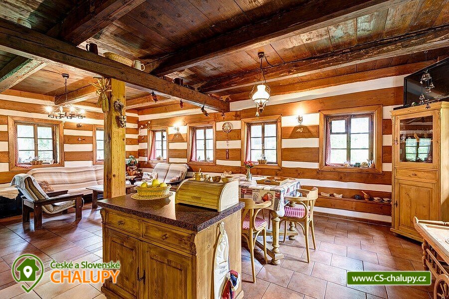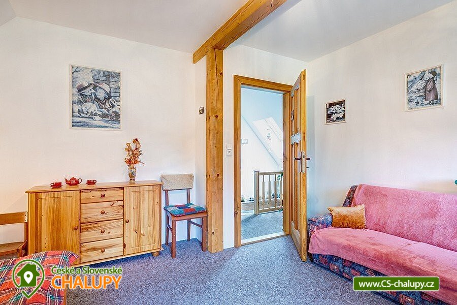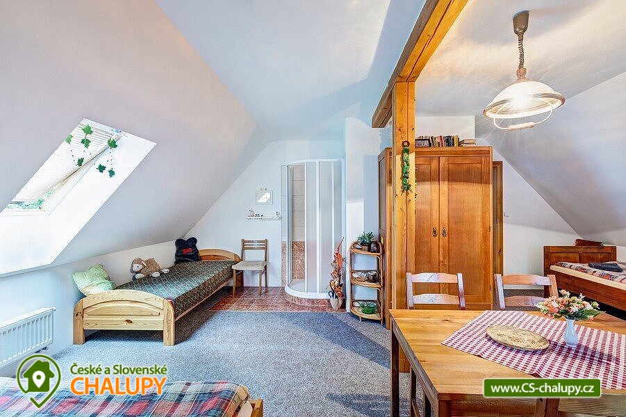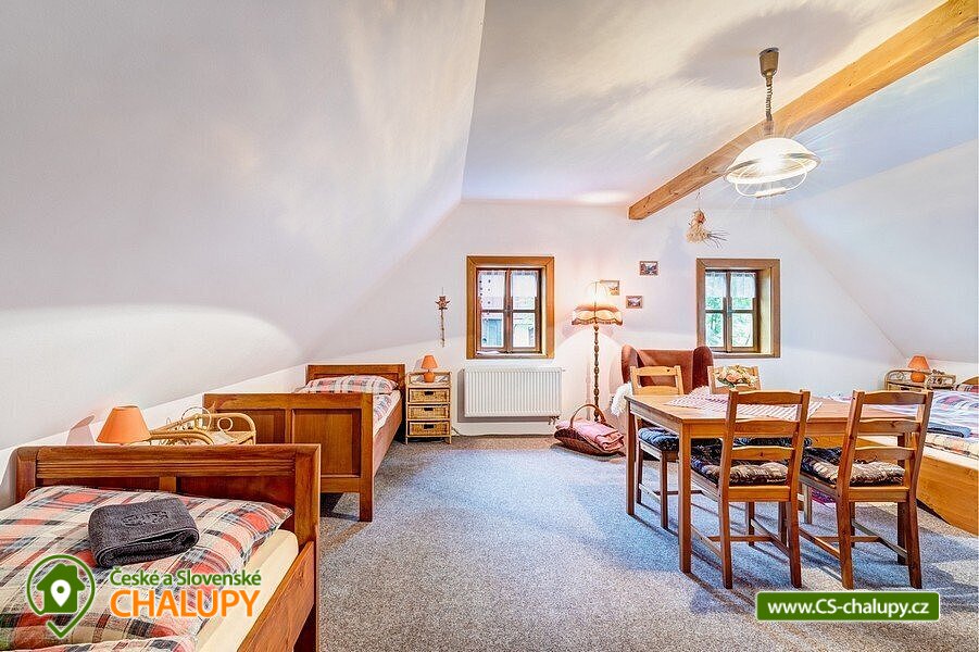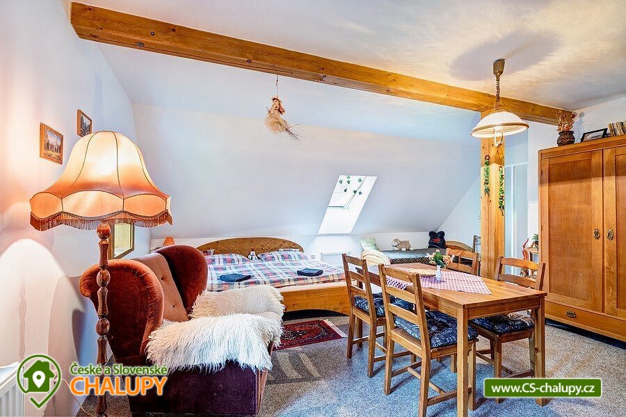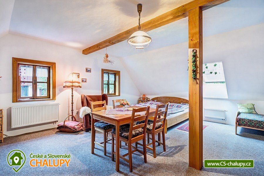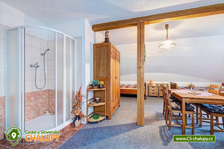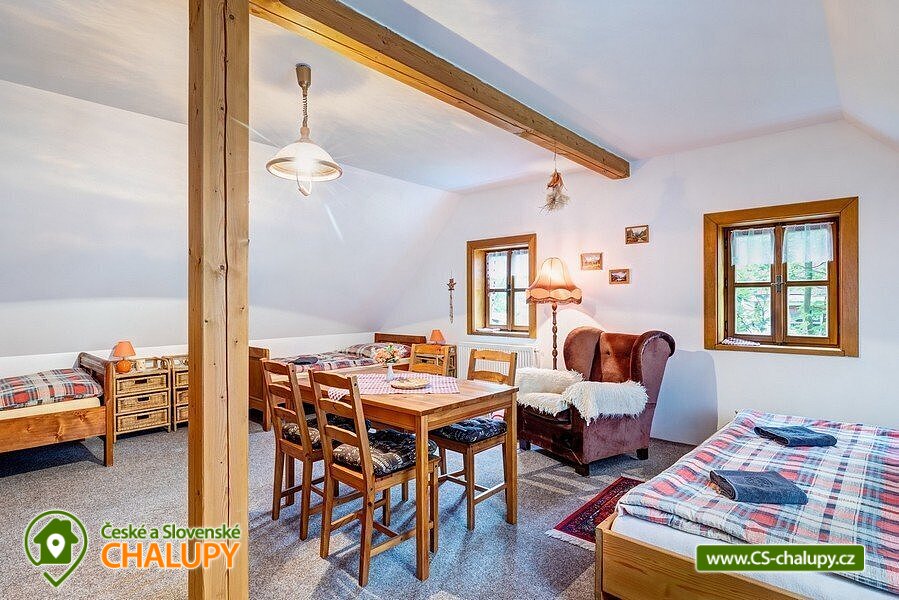Roubenka s vyhřívaným koupacím sudem u Adršpašsko-Teplických skal, turistický Region Broumovsko. Roubená chalupa poskytuje ubytování pro až 9 osob. V přízemí chalupy se nachází chodba, sociální zařízení a společenská místnost s kuchyní. Z chodby dále ústí schody na chodbu v podkroví, ve kterém je ložnice A (1x 2l., 1x 2l. přistýlka – rozkl. gauč) a ložnice B s vlastní koupelnou (3x 1l., 1x 2l. ). V objektu vlastní vybavená kuchyně - kuch. linka (dřez, T+S), sklokeramická deska + trouba, mikrovlnná trouba, rychlovarná konvice a lednice. Sociální zařízení: koupelna A - sprchový kout, umyvadlo, zrcadlo, toaleta; koupelna B v rámci ložnice - sprchový kout. V chalupě ústřední topení - tuhá paliva, krbová kamna a elektrické přímotopy. Adršpašsko - teplické skály jsou jednou z nejatraktivnější oblastí v České republice a právě zde se chalupa Javor nachází. Chalupa stojí na začátku stejnojmenné vesnice, která je ideálním východiskem za poznání Teplického a Adršpašského skalního města, ale především celého Broumovska, které nabízí unikátní přírodní krásy. Stylová roubenka stojí na vlastním a z části oploceném pozemku. Na pozemku je klientům k dispozici venkovní posezení (zahradní nábytek) se slunečníkem, lavičku a přenosný gril. V těsné blízkosti chalupy vede turistická a cykloturistická stezka, po které lze navštívit krásy regionu. Možné výlety: Adršpašské a Teplické skály, Bischofstein - barokní zámeček, Kočičí hrad - zřícenina hradu, Ostaš - stolová hora a Kočičí skály, Broumov - klášter (denní i noční prohlídky), Střmen - zřícenina hradu, Dvůr Králové nad Labem - ZOO, Ratibořice - zámek a Babiččino údolí, Náchod - zámek, Nové Město nad Metují - zámek, Broumovské stěny, Krkonoše. Polsko - Kudowa Zdroj (28km) - lázně a tržnice, Laczna (20km) - mini ZOO, Krzesów (česky Křešov - 30km) hlavní poutní místo Laskavé Matky Boží. Tento barokní skvost kandiduje na zapsání do seznamu UNESCO.