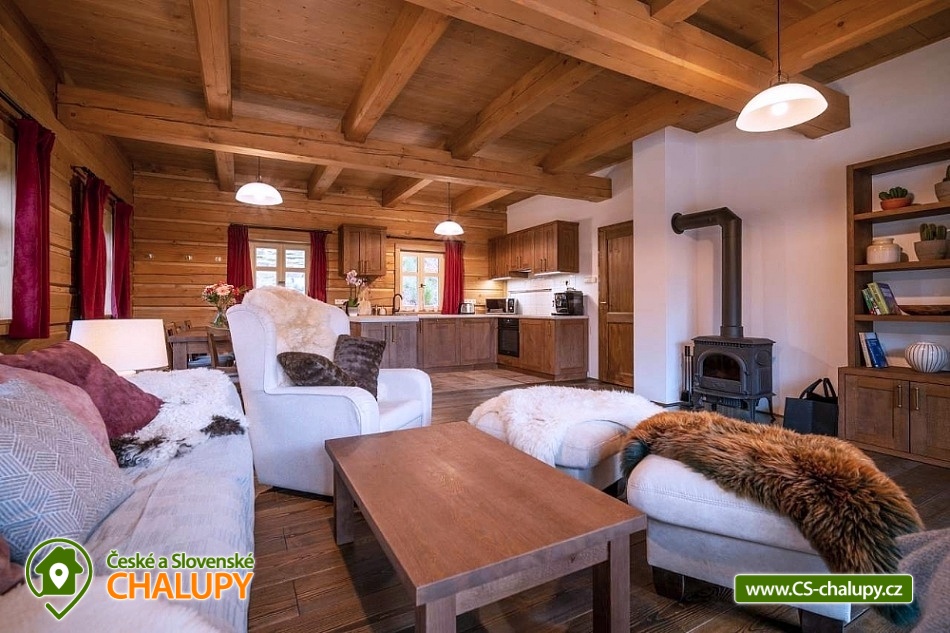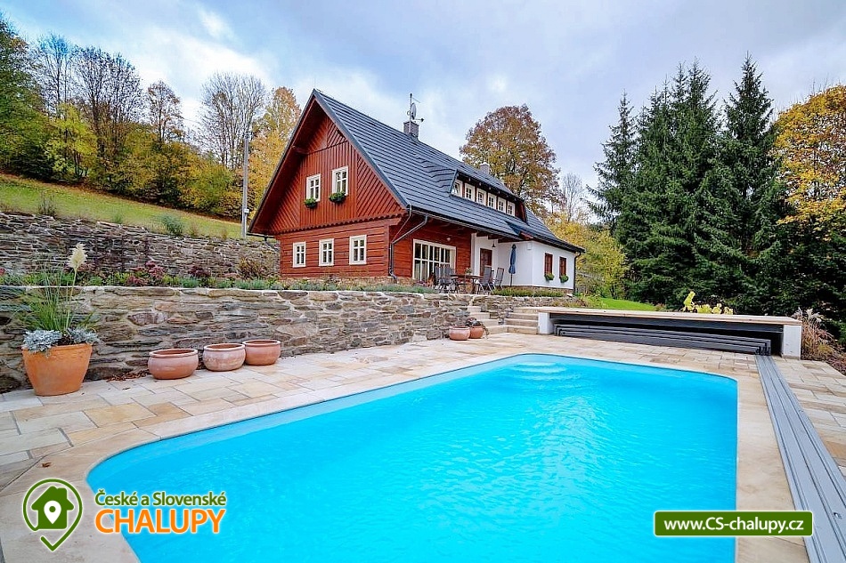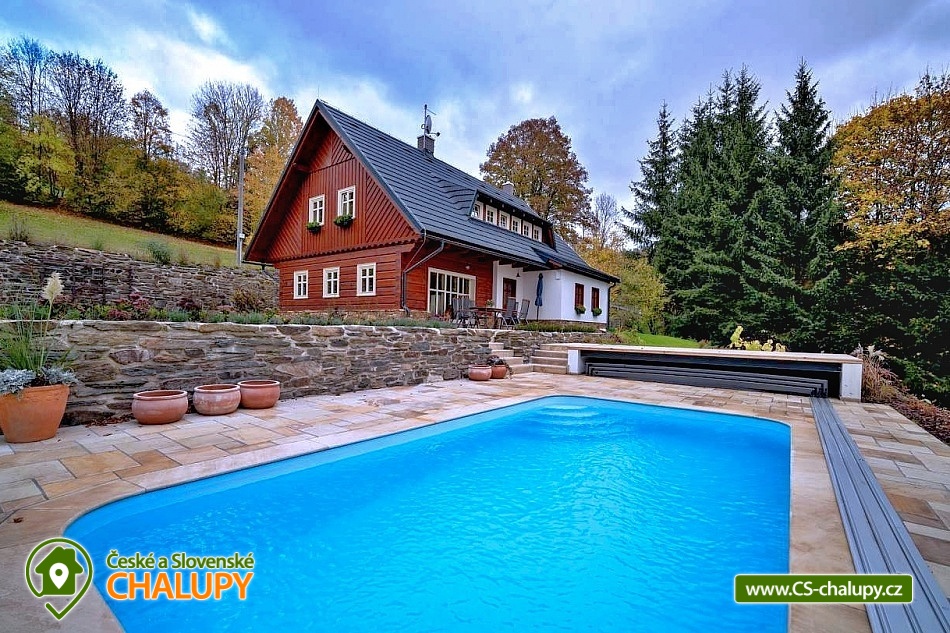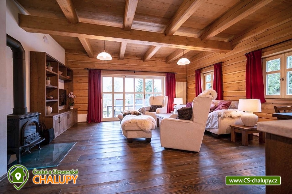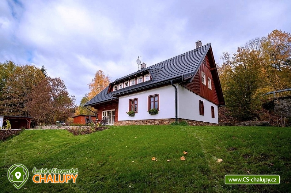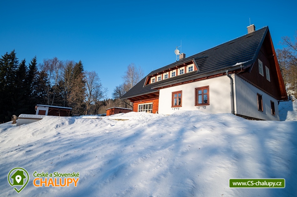 Komfortní roubenka se saunou a venkovním bazénem na rozhraní Krkonoš, Jizerských hor a Českého ráje v obci Helkovice u Vysoké nad Jizerou. Roubenka na kraji obce na pozemku o rozloze cca 4000 m2, kde je absolutní klid a soukromí. U roubenky je venkovní zapuštěný bazén a uvnitř finská sauna. Roubenka k pronájmu poskytuje ubytování pro až 10 osob ve 4 ložnicích. POPIS: V přízemí se nachází velká obytná místnost s kuchyňským koutem, jídelním stolem a posezením s TV. Dále finská sauna se sprchou, komora se sušákem na boty a pračkou, sušící skříň na oblečení a technická místnost s kotlem a prostorem pro uložení a přípravu lyží. Plně vybavená kuchyň: sporák, trouba, lednice, myčka, mikrovlnka, varná konvice, toaster, topinkovač, kávovar. V komoře je druhá velká lednice s mrazákem. V podkroví jsou 4 ložnice, WC a koupelna s vanou a sprchou. Dvě ložnice mají manželskou postel, vlastní WC a sprchu. Další ložnice je čtyřlůžková (dvakrát dvojpostel), bez vlastního WC. Poslední je malá ložnice s dvojpostelí opět bez vlastního WC. Ložnice mají klimatizace, takže se v létě není nutno obávat horka. Sociální zařízení: V objektu je v přízemí WC. V horním patře je ve dvou ložnicích vlastní WC a sprcha. Dále je pak nahoře velká koupelna, s vanou, sprchou a dvěma umyvadly a samostatné WC. Objekt je vytápěn kotlem na pelety, kterým se i celoročně ohřívá voda. V obytné místnosti jsou krbová kamna na dřevo. Parkování u chalupy. Před roubenkou je dlážděná terasa, zapuštěný bazén se slanou vodou a venkovní kryté posezení. Kola lze ukládat do samostatného zamykatelného objektu, kde je možnost nabíjení elektrokol. V roubence je wifi připojení. Léto: V okolí si každý najde svoje. Kousek od chalupy je rozhledna U borovice, ze které uvidíte polovinu Čech. Dále je možné podnikat túry po Krkonoších, po Jizerských horách, ale i po Českém ráji. Zima: Pro vyznavače sjezdového lyžování je v nedaleko několik areálů. Nejbližší je ve Vysokém nad Jizerou - 6 km, kde je i večerní lyžování. Dále je možno lyžovat v Rokytnici, popřípadě v Harrachově, kde jsou velké skiareály. Co se týče běžek, tak ve Vysokém nad Jizerou je lyžařský stadion, a nedaleko jsou polské Jakuszyce, kde je lyžování na běžkách úžasné. V neposlední řadě je u chalupy na zahradě svah, kde je možno pořádat mistrovství v jízdě na čemkoliv, což ocení zejména děti. Těšíme se na Vás u nás.