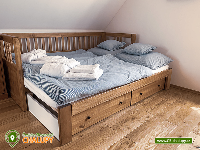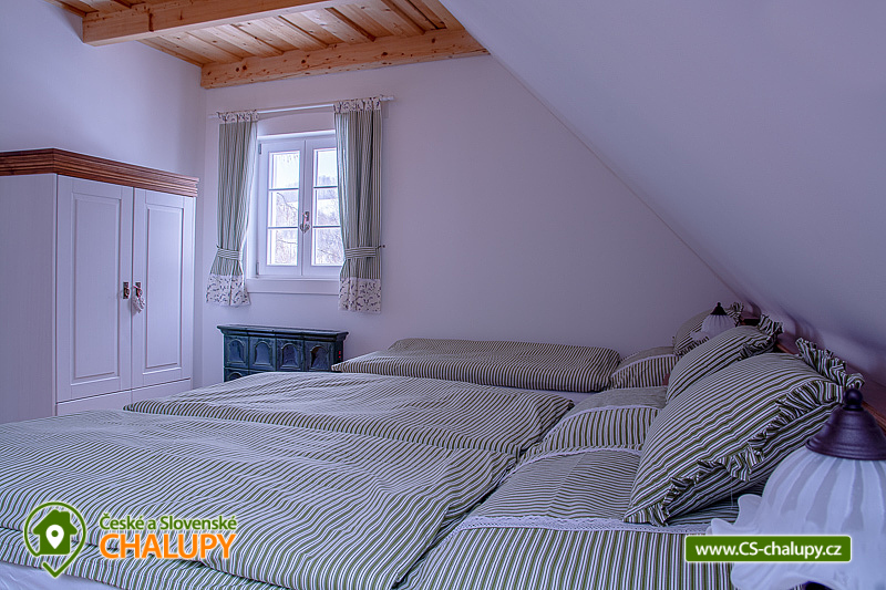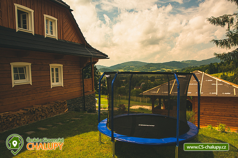 Wellness roubenka s bazénem u Sobotína v CHKO Jeseníky (wellness - finská sauna a vířivka). Dominantou chalupy jsou kachlová kamna s ležením a wellness místnost s vířivkou a finskou saunou. Chalupa k pronájmu poskytuje ubytování pro až 10 osob ve 3 ložnicích. POPIS: Světnice v přízemí s plně vybavenou kuchyní (lednice s mrazákem, myčka, elektrická trouba, kachlová kamna s ležením (na kterých si můžete uvařit jako za starých časů nebo si odpočnout). Dále prostorná sedačka s křeslem ušákem a TV se SAT. V patře se nachází 3 stylově zařízené ložnice (1x dvoulůžko a 2x třílůžková ložnice). Herní koutek pro děti se šipkami a spoustou her. Wellness místnost je vybavena vířivkou pro 5 osob a finskou saunou s hvězdným nebem. V přízemí je jedno WC a sprcha ve wellness místnosti. V patře je také jedno WC a vybavená koupelna s masážním sprchovým boxem a vanou. Chalupa se vytápí kachlovými kamny a podlahovým topením, které je po celém přízemí i v patře v koupelně. V každém pokoji jsou přímotopy ve stylu kachlových kamen. Zahrada je vybavená venkovním posezením, pergolou s plynovým grilem, bazén s tepelným čerpadlem, dětské hřiště s pískovištěm a kolárnou. V okolí doporučujeme: Turistika: rozhledna Praděd, rozhledna Bukovka, vodní elektrárna Dlouhé stráně, Petrovy kameny, Skřítek, Rešovské vodopády, Stezka v oblacích Dolní Morava, Lesní bar Lipová lázně. Cykloturistika: Na Dlouhé stráně, Lipovské stezky, Hřebenovka (Bike park Kouty), Čarodějnická cyklotrasa. Hrady a zámky: Zámek Velké Losiny, Kostel svatého Michaela Maršíkov, Zámek Kolštejn, Hrad Bouzov, Hrad Sovinec, Zámek Loučná nad Desnou, Zámek a lovecké muzeum Úsov, Zřícenina hradu Brníčko, Hrad a zámek Kolštejn. V zimě pak: Lyžařská střediska: Oaza Loučná nad Desnou ( 5km), Kareš Loučná nad Desnou ( 8km), Přemyslov ( 9km), Kouty nad Desnou ( 10Km), Červenohorské sedlo ( 19km), Klepáčov ( 12km), Dolní Morava ( 42km). Běžkařské trasy: Kouty nad Desnou, Ovčárna, Červenohorské sedlo, Praděd, Skřítek, Vrbno pod Pradědem, Přemyslov. Snowparky: snowpark Červenohorské sedlo, snowpark Kraličák, snowpark Paprsek, snowpark Kouty nad Desnou, Flowpark Dolní Morava. Těšíme se na Vás u nás.