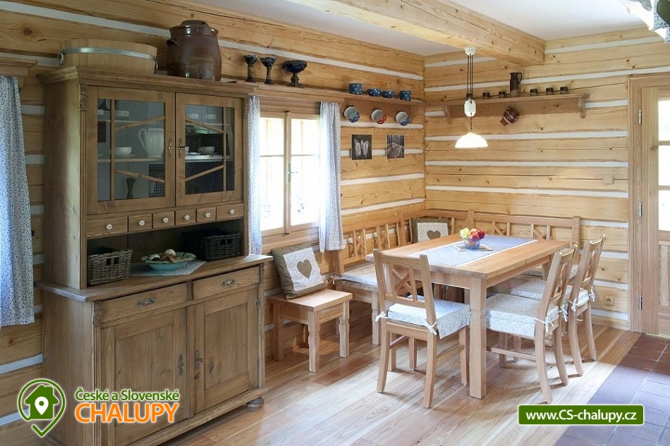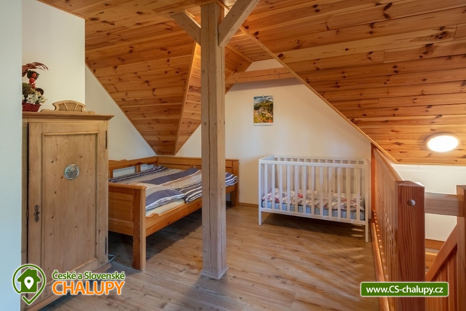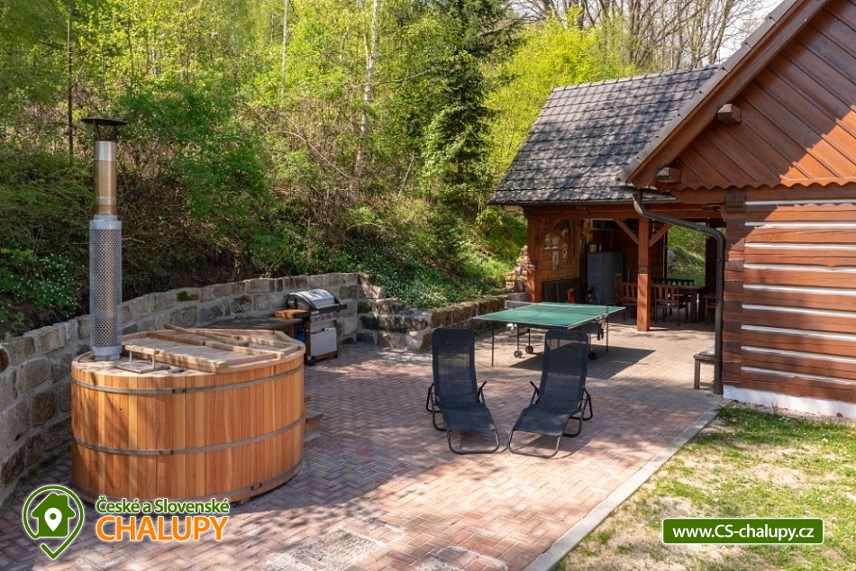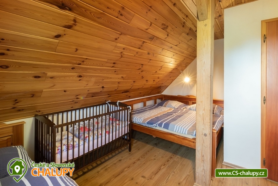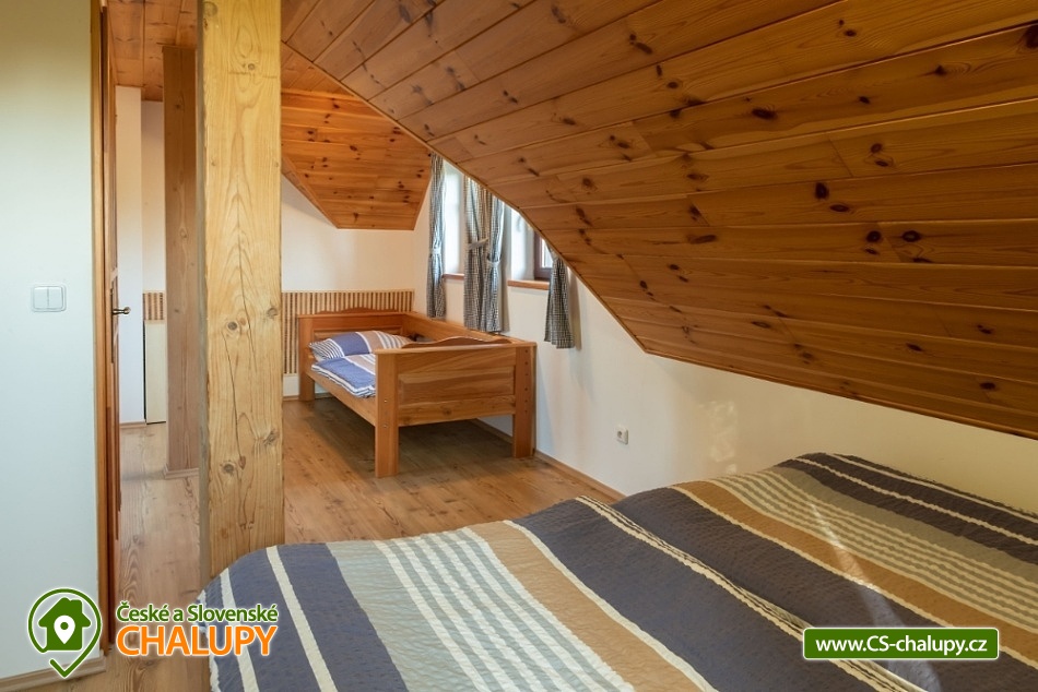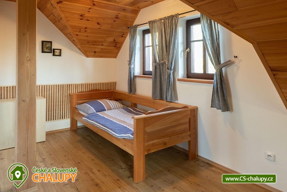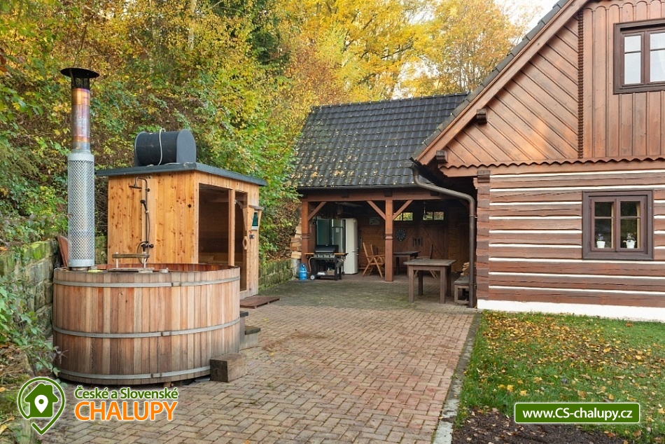 Roubenka na Rovince - Pelešany - Turnov - ubytování Český ráj. Roubená chalupa se dvěma samostatnými komfortně vybavenými apartmány na okraji Turnova v srdci Českého ráje. V letní sezóně se objekt pronajímá pouze jako celek 1 skupině klientů, mimo léto je možné pronájem obou apartmánu pro 5 a 6 osob samostatně. Chalupa se nachází v těsné blízkosti lesa, 2 km od Turnova pod hradem Valdštějn. Roubenka stojí na velkém (2000 m²) oploceném pozemku s parkováním. Apartmán č. 1: obývací kuchyň, koupelna a 2 ložnice o kapacitě 6 lůžek. Přízemí: Společná předsíň, ze které je vstup do obou apartmánů. Velká kuchyň spojená s obývacím pokojem, kde se nachází jídelní stůl s rohovou lavicí a židlemi. Kuchyň je vybavená nádobím, mikrovlnou troubou, varnou deskou se dvěma vařiči, varnou konvicí, remoskou a lednicí s mrazákem. Z kuchyně je vstup na zahradu, kde je možnost posezení, tento prostor je vybaven zahradním nábytkem a grilem. Vytápění je krbovými kamny. V přízemí se nachází koupelna se sprchovým koutem, umyvadlem a wc, zde je podlahové topení a koupelnový žebříček. 1.patro: 2 samostatné 3-lůžkové pokoje. 1.pokoj: 1x rozkládací gauč pro dvě osoby + 1x jednolůžko. 2.pokoj: 1x dvoulůžko + 1x jednolůžko. Apartmán č. 2: obývací kuchyň, koupelna a 1 ložnice o kapacitě 5 lůžek. Přízemí: Společná předsíň, ze které je vstup do obou apartmánů. Velká kuchyň spojená s obývacím pokojem, kde se nachází jídelní stůl s rohovou lavicí a židlemi, TV. Kuchyň je vybavená nádobím, mikrovlnou troubou, varnou deskou a lednicí s mrazákem, také dětskou jídelní židličkou. Z kuchyně je vstup na zahradu, kde je možnost posezení, tento prostor je vybaven zahradním nábytkem a grilem. Vytápění je krbovými kamny. Z kuchyně je vstup na zahradu. V přízemí se nachází koupelna se sprchovým koutem, umyvadlem a WC, zde je podlahové topení a koupelnový žebříček. 1.patro: 1 ložnice – 1x dvoulůžko (180 x 200 cm – pro děti lze využít jako trojlůžko), 1x dvoulůžko (160 x 200 cm), 1x přistýlka. U chalupy je k dispozici venkovní posezení, ohniště, klouzačka, houpačka, ping pong, síť na badminton a míčové hry. V okolí roubenky jsou cyklotrasy, možné houbaření, turistika, skalní město, hrady, zámky, přírodní koupaliště Sedmihorky a v Turnově koupaliště i krytý bazén. Objekt se nachází v srdci Českého ráje, nespočet možností jak turistických tak kulturních i sportovních. Necelý kilometr od hradu Valdštejn, Hruboskalské skalní město. Dominanta Českého ráje hrad Trosky. Blízká lyžařská střediska: Turnov - Struhy, Koberovy - Hamštejn, Kozákov nebo Líšný.