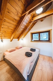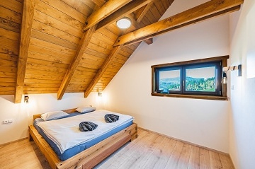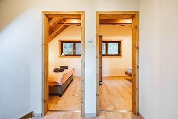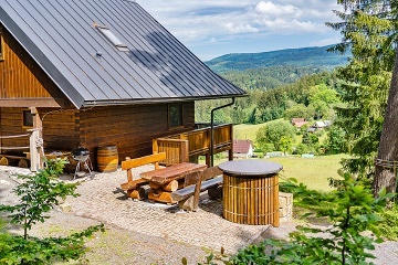 Stylová Roubená chata se nachází na samotě u lesa v obci Horní Bečva v krásné přírodě Beskyd. Těšit se můžete na dostatek soukromí, horské ticho a jedinečné výhledy na masiv Radhoště a údolí Bečvy s krásným kostelem na Prostřední Bečvě. V noci potěší úplná tma a hvězdná obloha. Tato komfortně zařízená roubenka nabízí ubytování pro až 10 osob. K dispozici jsou čtyři dvoulůžkové ložnice s pohodlnou manželskou postelí a po domluvě lze zajistit dvě přistýlky. Ložnice jsou umístěné v patře. Ložní prádlo a ručníky jsou samozřejmostí. Ke společným chvílím slouží otevřený obývací pokoj s krbovými kamny a plně vybavenou kuchyní (myčka, indukční varná deska, multifunkční trouba, lednička, varná konvice a automatické espresso DeLonghi). Součástí místnosti je pohodlná sedací souprava s výhledem do přírody, smart TV s O2 TV včetně Ligy mistrů a Premier League, Netflix, soundbar a jídelní stůl pro 8 lidí. Z obývacího pokoje lze vstoupit na prostorný balkón s posezením a závěsnou houpačkou a užívat si zde krásná horská panoramata. V celém objektu je k dispozici WIFI připojení na internet. Sociální zařízení zahrnuje dvě koupelny umístěné v přízemí a v patře. Obě koupelny jsou vybavené sprchovým koutem, WC, umyvadlem a fénem. Vytápění je řešeno elektrickým vytápěním a krbovými kamny. K dispozici je dřevo do kamen. Ve sklepě lze uskladnit sportovní vybavení (lyže, kola apod.). Venku roubenku obklopuje travnatá zahrada a stromy. Posedět lze na terase nebo u ohniště. K dispozici je Gril Weber na dřevěné uhlí. Odpočívat můžete pod korunami stromů v závěsné dřevěné houpačce s pohodlnou nepromokavou matrací. Parkovat lze přímo u objektu. V zimním období je vhodná výbava sněhovými řetězy. V okolí roubenky možnost turistiky, cykloturistiky, koupání, rybaření, houbaření, běžkování a lyžování. V blízkosti jsou také tenisové kurty, golfové hřiště a pumptrack. Přímo z roubenky se lze projít do lesa a nasbírat si borůvky či jiné lesní plody. Mezi možnosti koupání patří např.: přehrada Horní Bečva, koupaliště biotop Bečva, koupaliště Hutisko-Solanec, koupaliště Vigantice, koupaliště Velké Karlovice, koupaliště Rožnov pod Radhoštěm, aquapark Vodní svět Velké Karlovice, koupaliště Balaton, atd. K dispozici jsou blízká lyžařská střediska: Pod Soláněm, Rališka, Solisko, Mečová, Soláň, Kubiška, Soláň - Bzové, U Sachovy studánky a další. K výletům v okolí láká Socha Radegasta a vrchol Radhošt, Pustevny, Horský lanový park Tarzanie v Trajanovicích, Jurkovičovy rozhledny v Rožnově pod Radhoštěm a Valašské muzeum v přírodě. Těšíme se na Vás u nás.