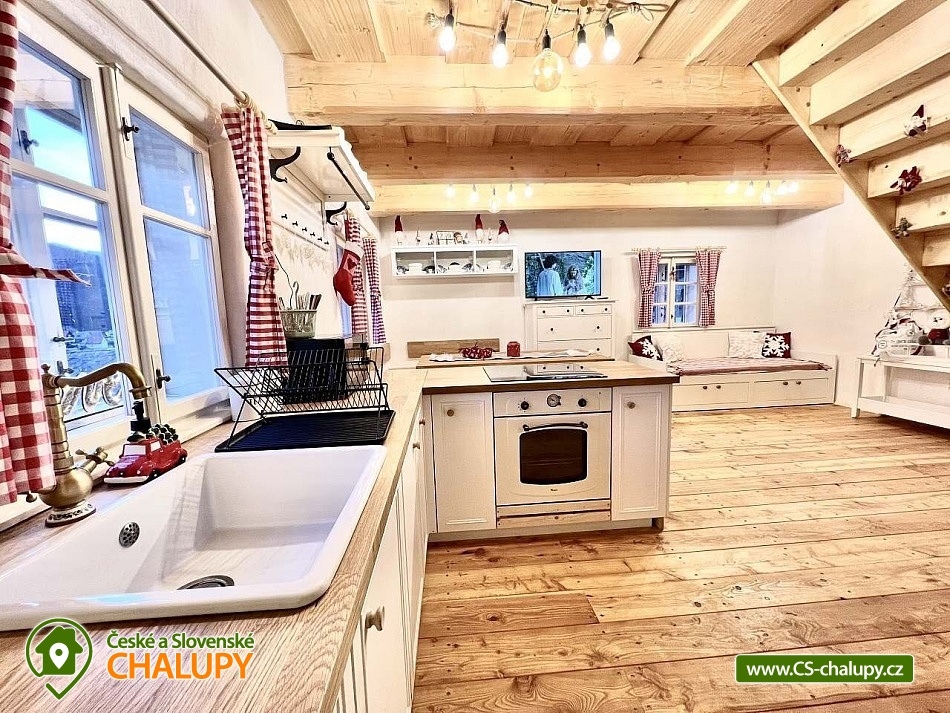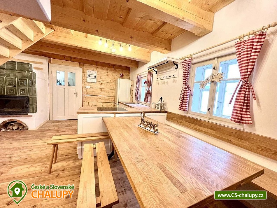 Roubenka Moravský Betlém se saunou - ubytování s atmosférou starých časů, ale veškerým potřebným komfortem. Díky strategické poloze pod Štramberskou Trúbou je roubenka ideální základnou pro ty, kteří hledají klidné a stylové zázemí v unikátní lokalitě Moravského Betléma. Kapacita roubenky je až 15 osob ve 4 ložnicích + obývací světnici. POPIS: V chalupě jsou 4 ložnice, světnice s kuchyní, společenským prostorem a kachlovou pecí s možností spaní na peci, dále 2x koupelna, sauna s vířivkou. Chalupu máte k dispozici vždy celou pouze pro sebe. Světnice má rozkládací dvojpostel Hemnes (počet lůžek ve světnici tak jsou celkem 3 = dvoulůžko + lůžko na peci). Ložnice: 1. ložnice má XXL manželskou postel a dětskou postýlku. 2. ložnice má 4 samostatné postele a je průchozí. 3. ložnice má manželskou postel a rozkládací pohovku Hemnes a samostatné WC s koupelnou. 4. ložnice má dvě samostatné postele a otevírá se při obsazenosti nad 8 osob v objektu nebo dle dohody. Sauna je k dispozici celoročně, avšak při nočních teplotách pod 5 stupňů Celsia je sauna mimo provoz. Sociální zařízení - V přízemí koupelna s WC a sprchovým koutem a v podkroví druhá koupelna s wc a sprchovým koutem. Vytápění: Ústřední vytápění + krbová kachlová kamna ve světnici, které krásně vyhřejí celý objekt. K parkování Vám poskytneme parkovací karty se kterými můžete parkovat 20m od objektu. Okolí: Objevte a zamilujte si malebný Štramberk a jeho okolí plné atraktivních turistických cílů: Štramberská Trůba, Arboretum, náměstí a romantické uličky. Jeskyně Šipka, Bílá hora s magickým výhledem do starobylého lomu se vzkazy z kamenů. Pivní lázně, muzeum Novojičínska, Zdeňka Buriana a samozřejmě TATRA v Kopřivnici vzdálené 3km. V okolí také zříceniny Starý Jičín, Hukvaldy s exotickou mini Zoo a spousta dalších nádherných míst. Vánoční chalupa s výstavou Betlémů. Těšíme se na Vás u nás.